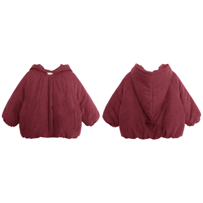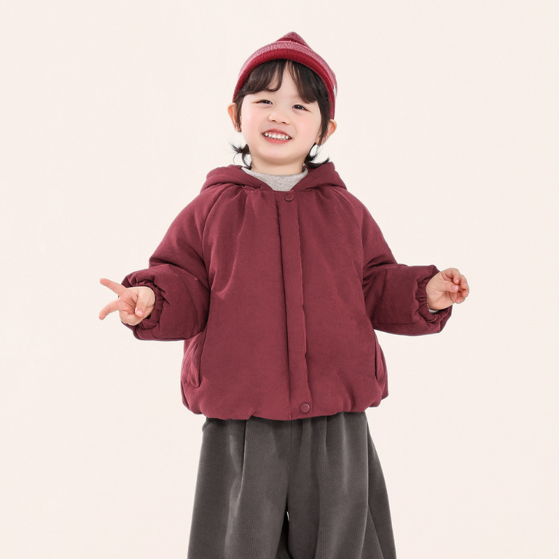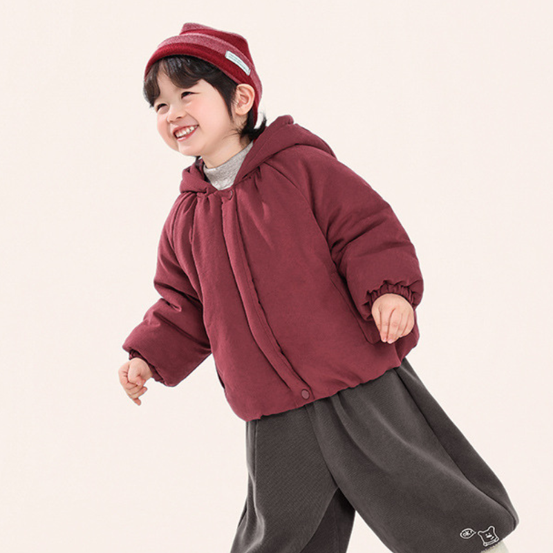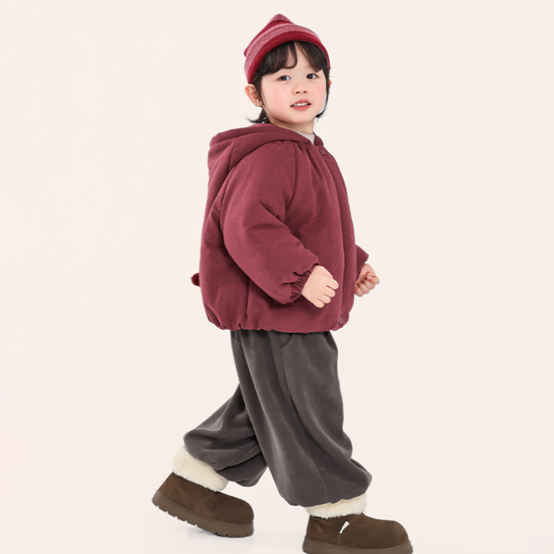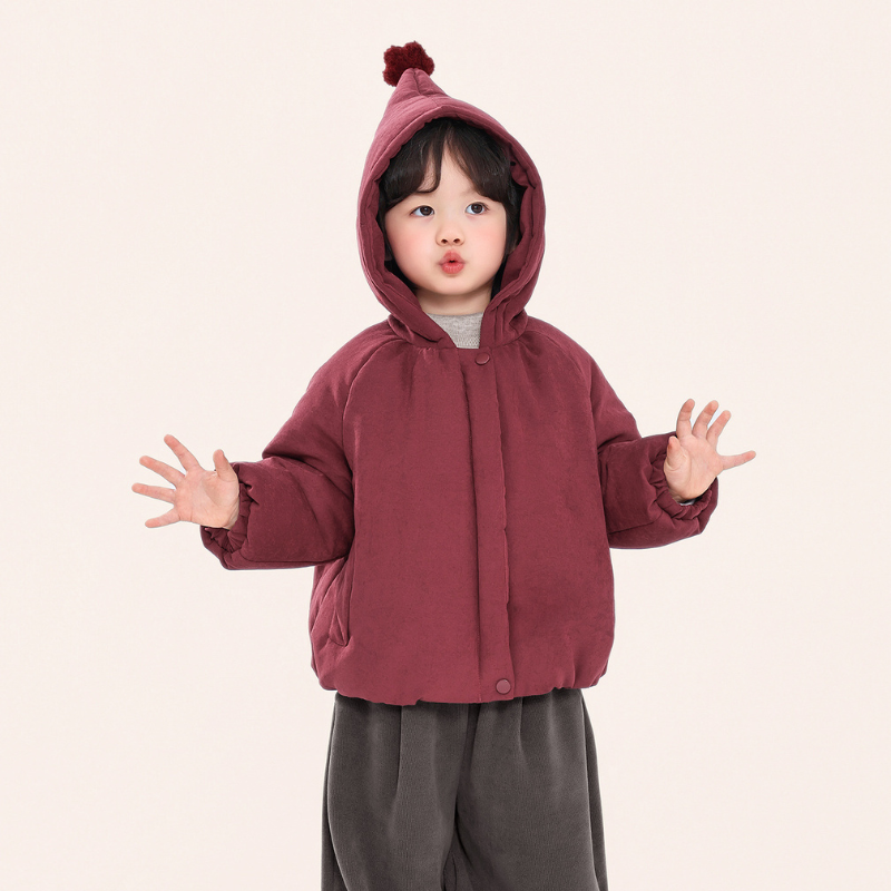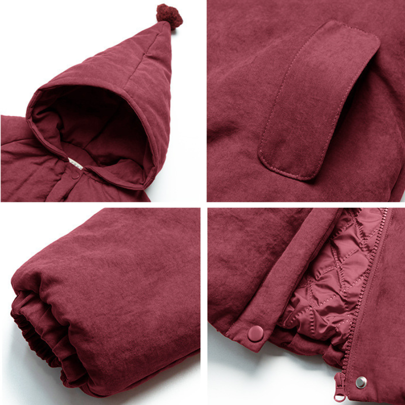 エルフの帽子を思わせる、とんがり感のあるキュートなフードが特徴な中綿コートです。