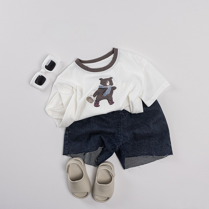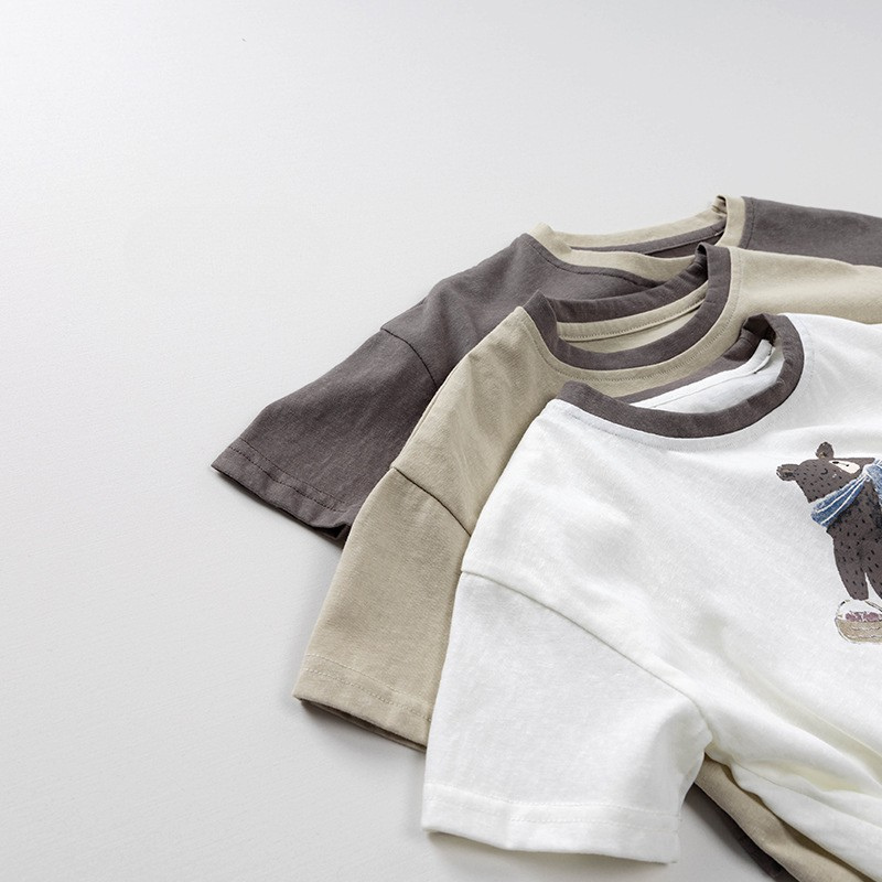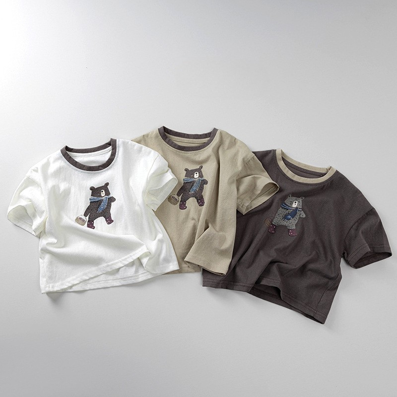 ほっこりクマさんプリントがとびきり可愛い、子供らしさ溢れるTシャツ。