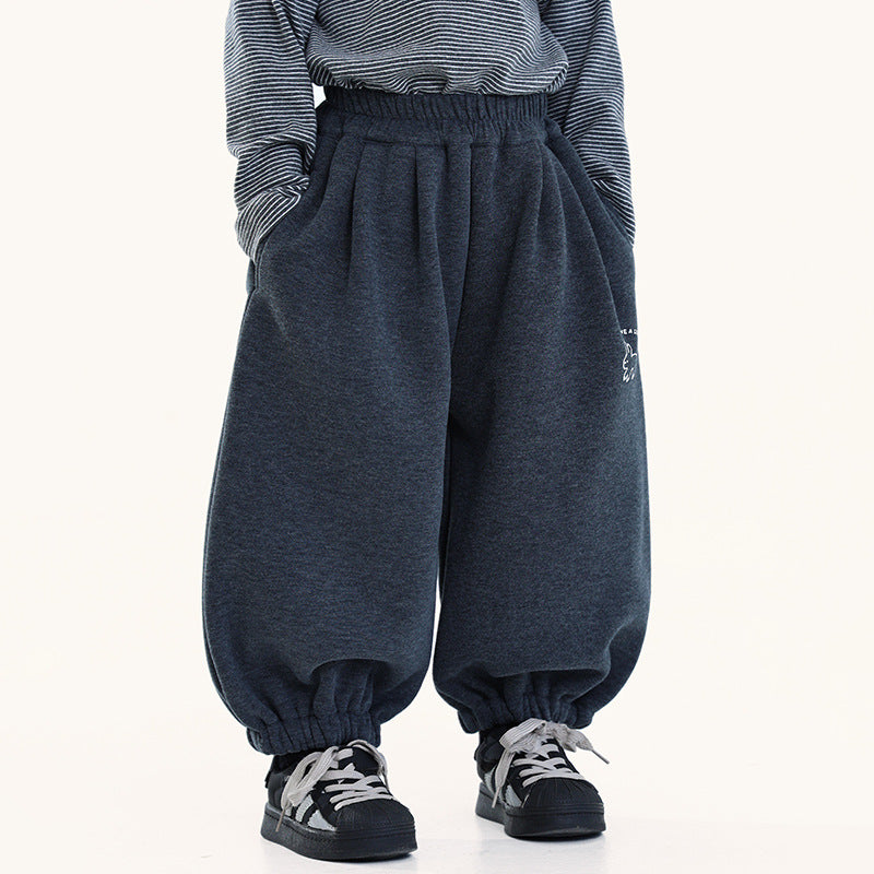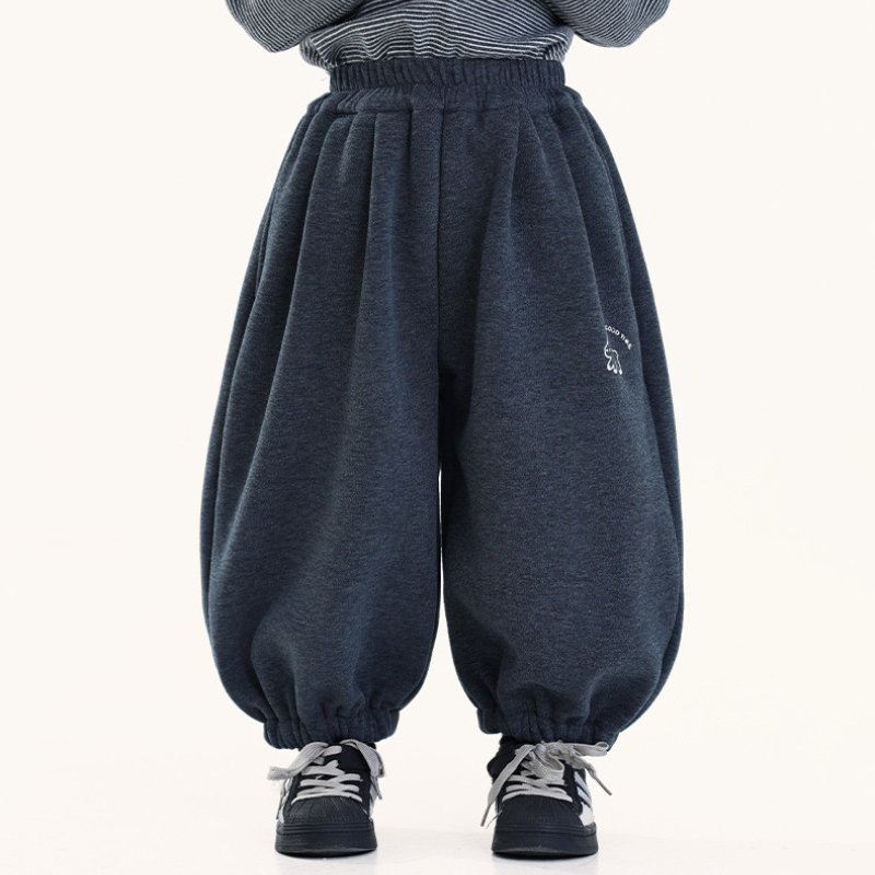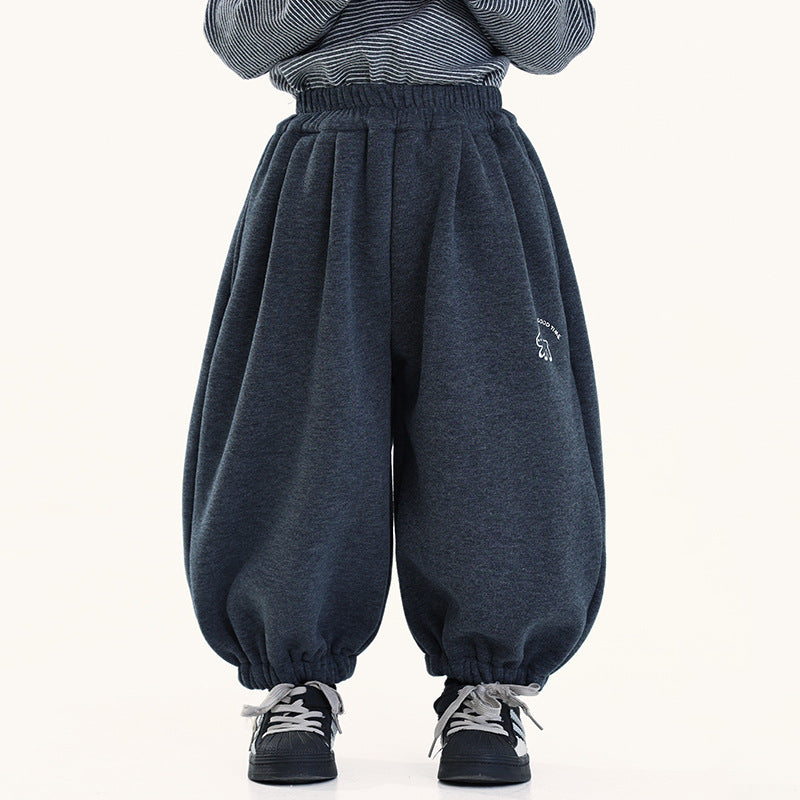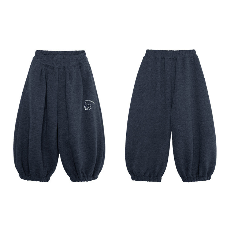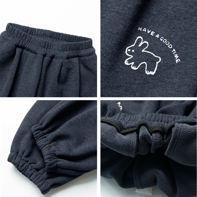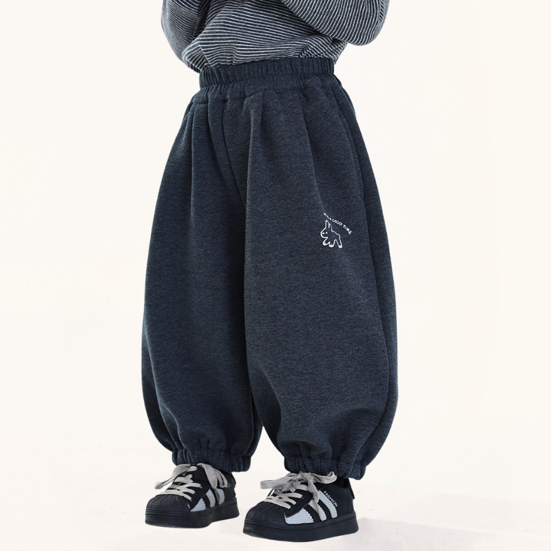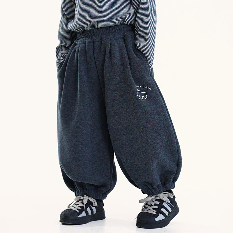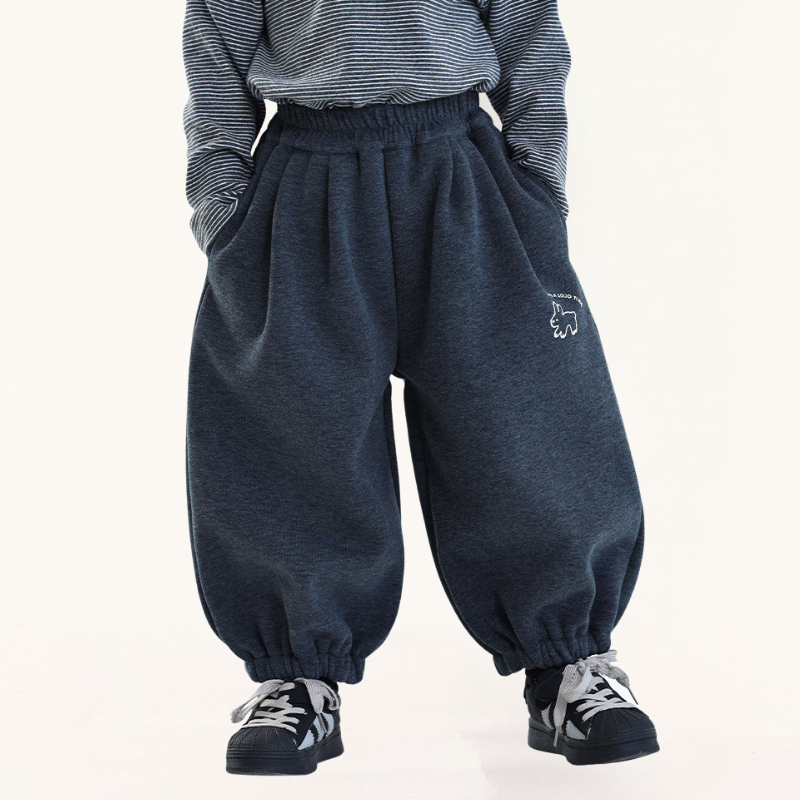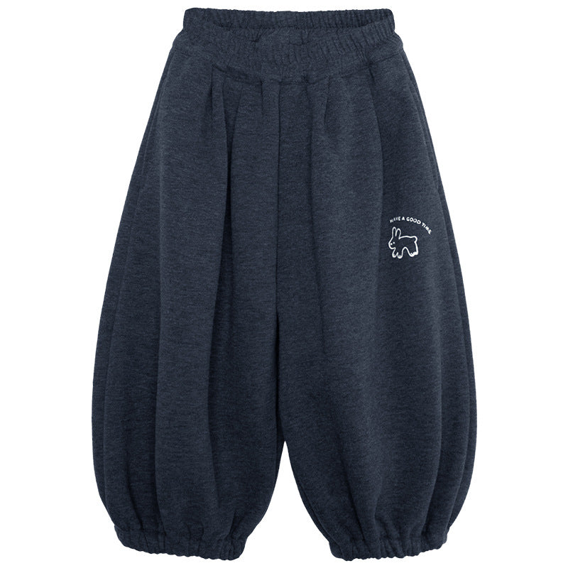 さりげない可愛さ。うさぎとレターのワンポイントが映えるグレーパンツ。