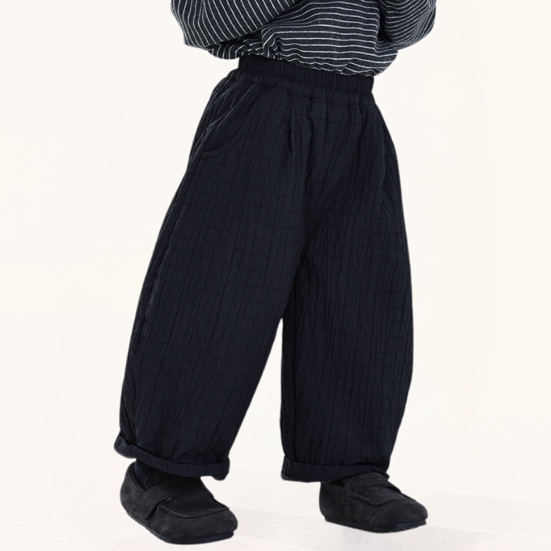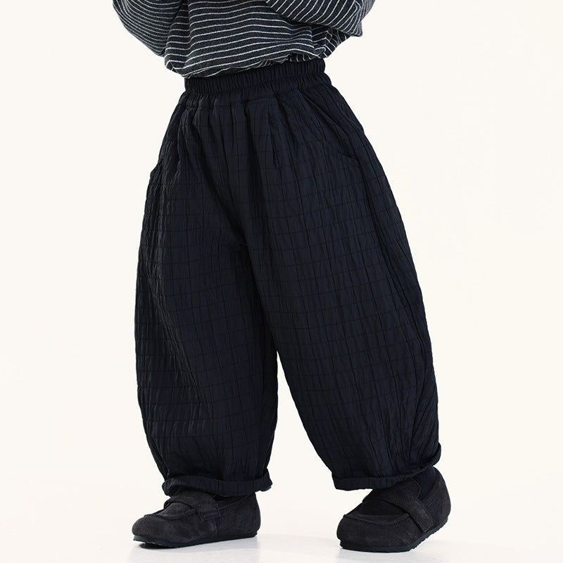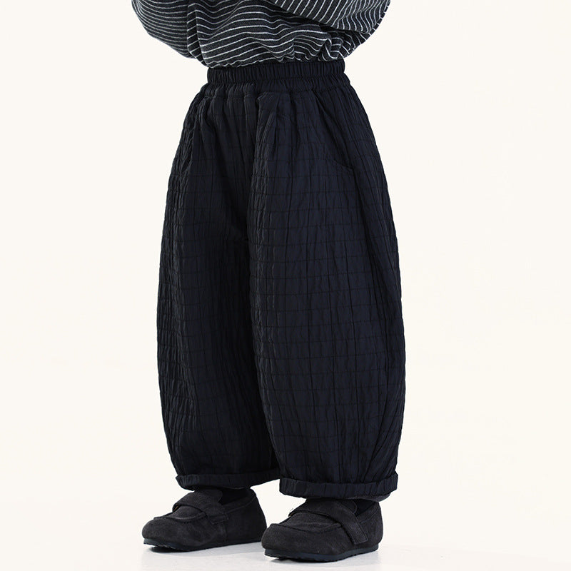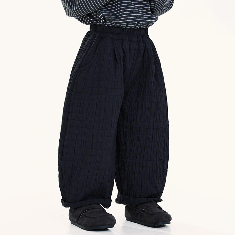 一見シンプルなのに、近づいてみるとおしゃれなチェック柄が光る、こだわりの裏ボアパンツ。