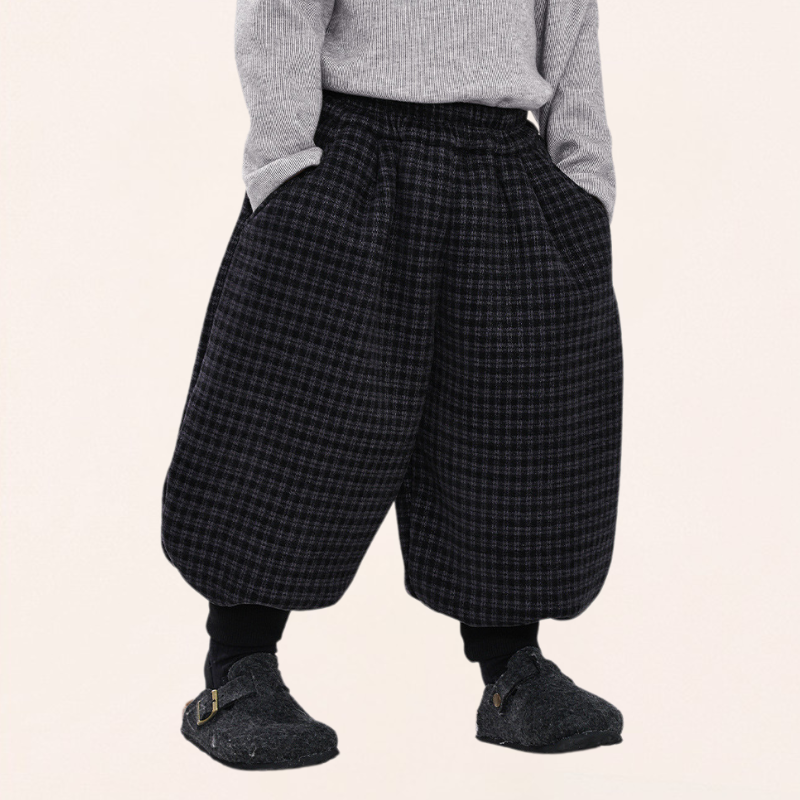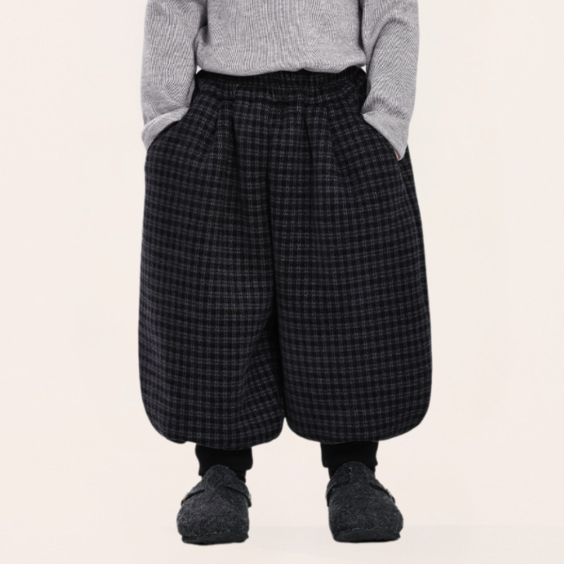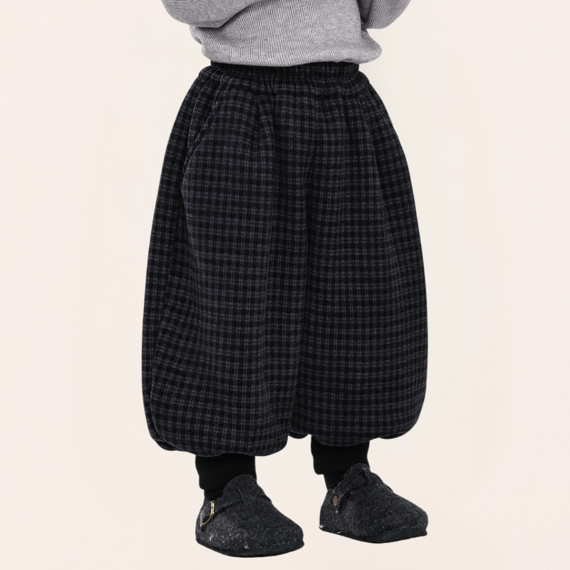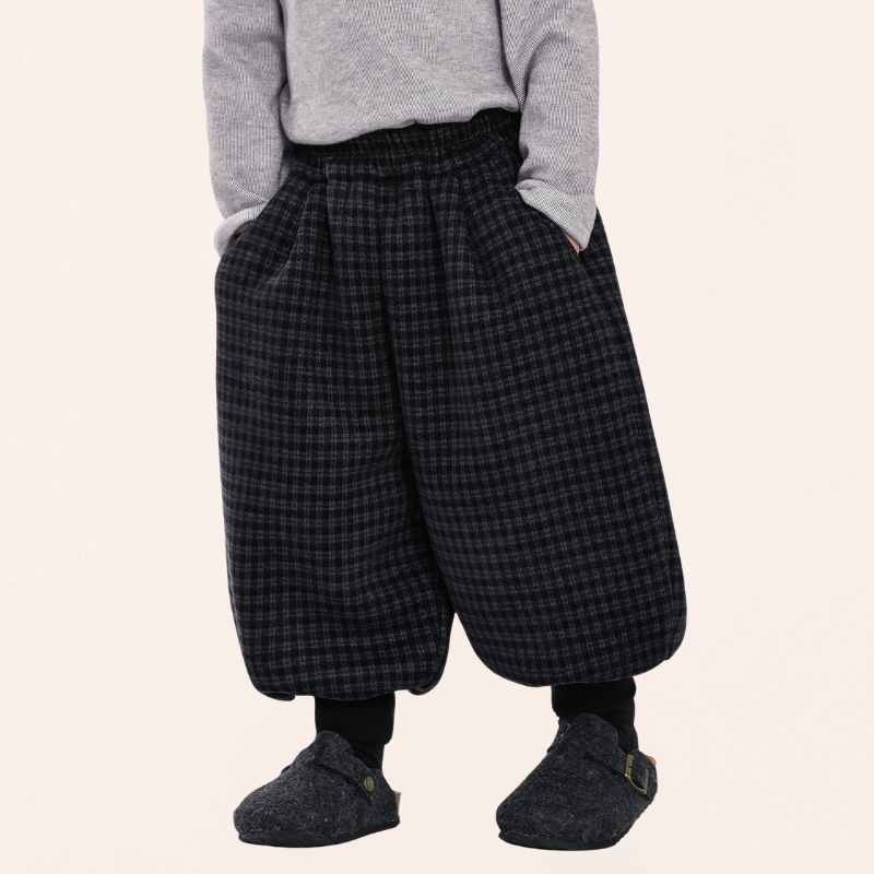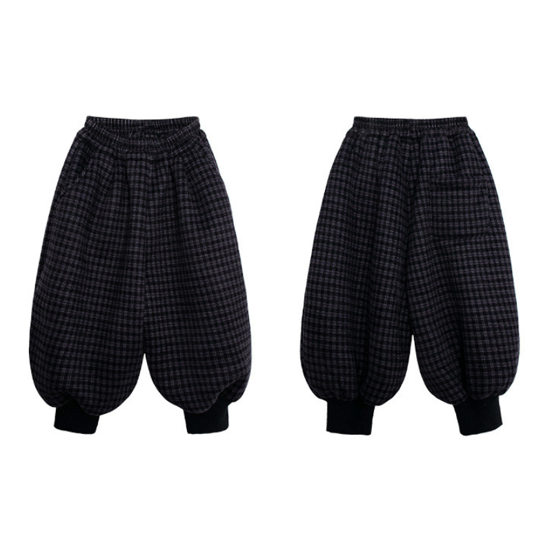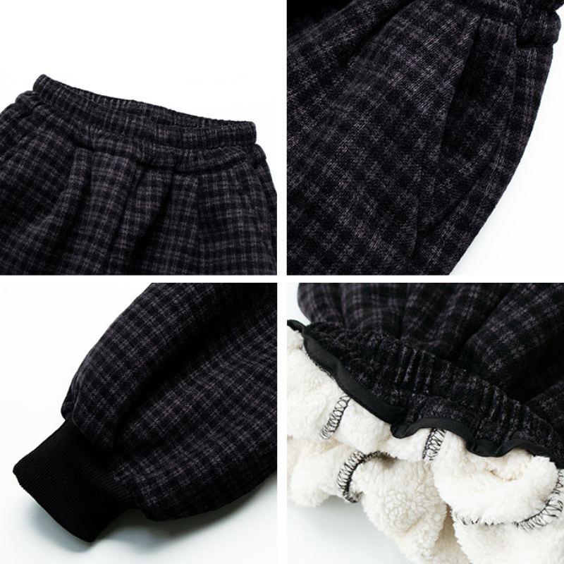 主張しすぎないシックなチェック柄は、カジュアルでありながら洗練された冬の定番裏ボアパンツ。