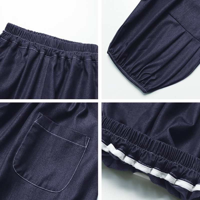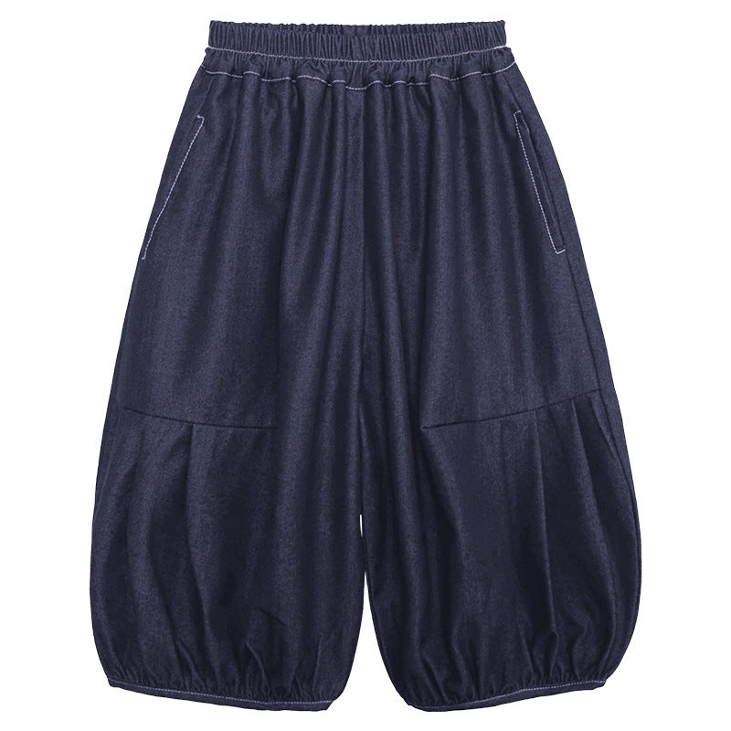 デニム風バルーン七分丈パンツ