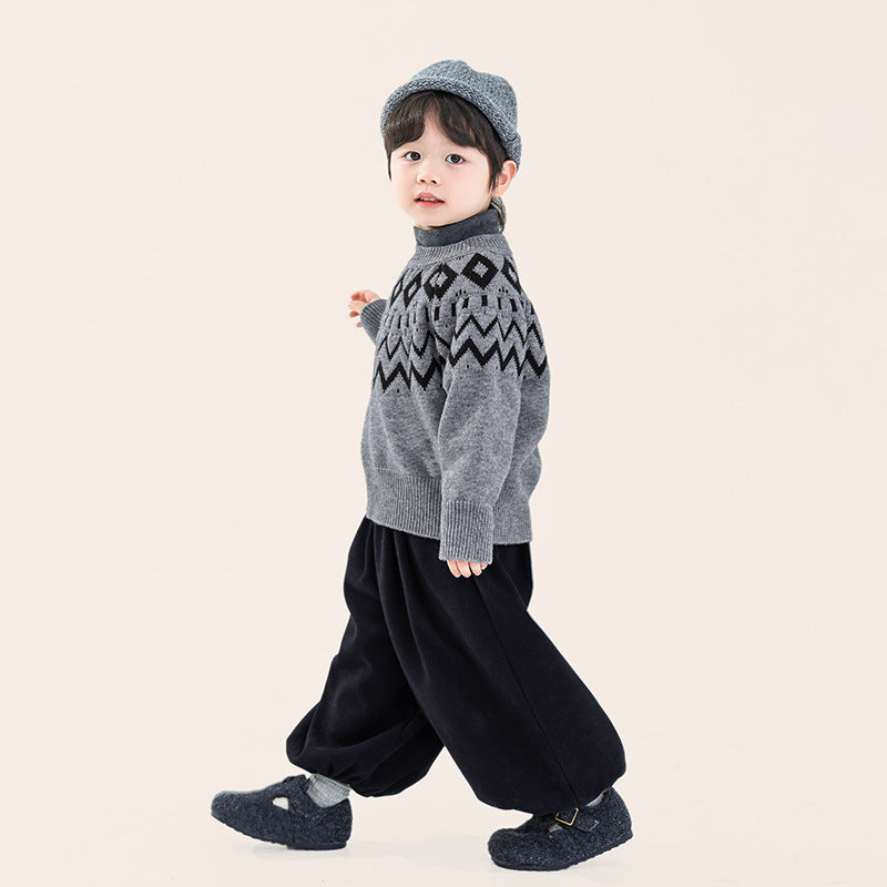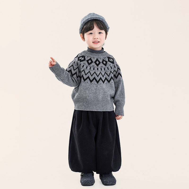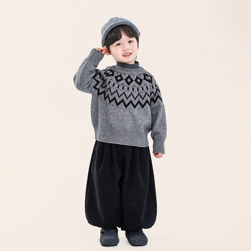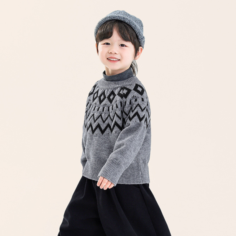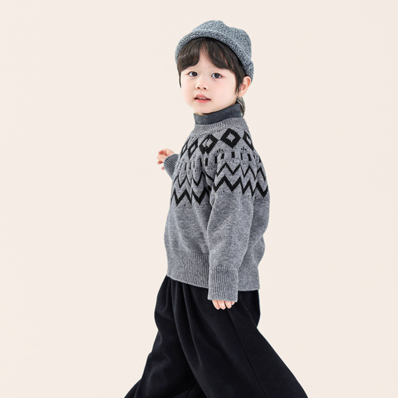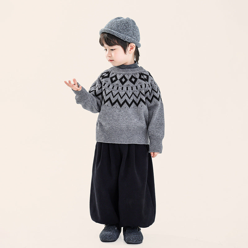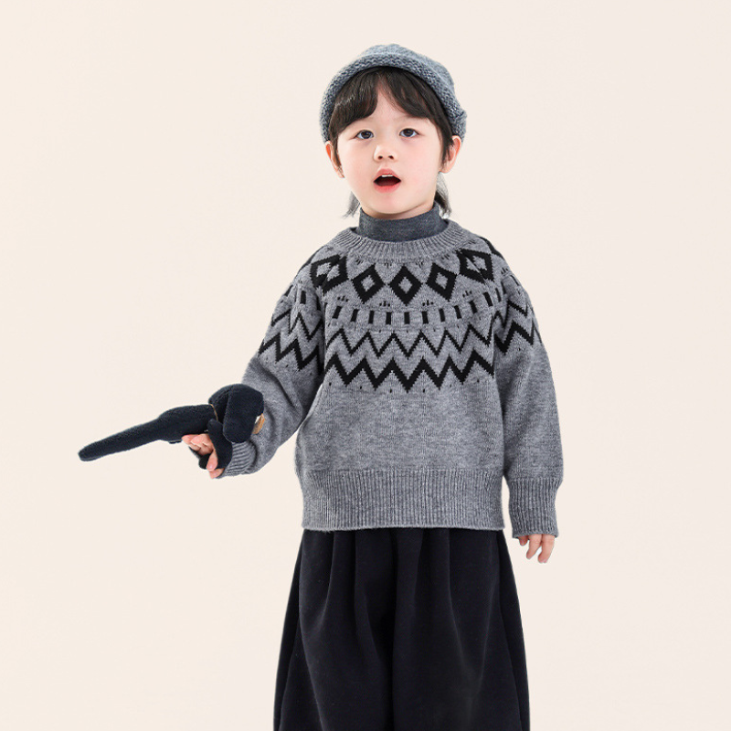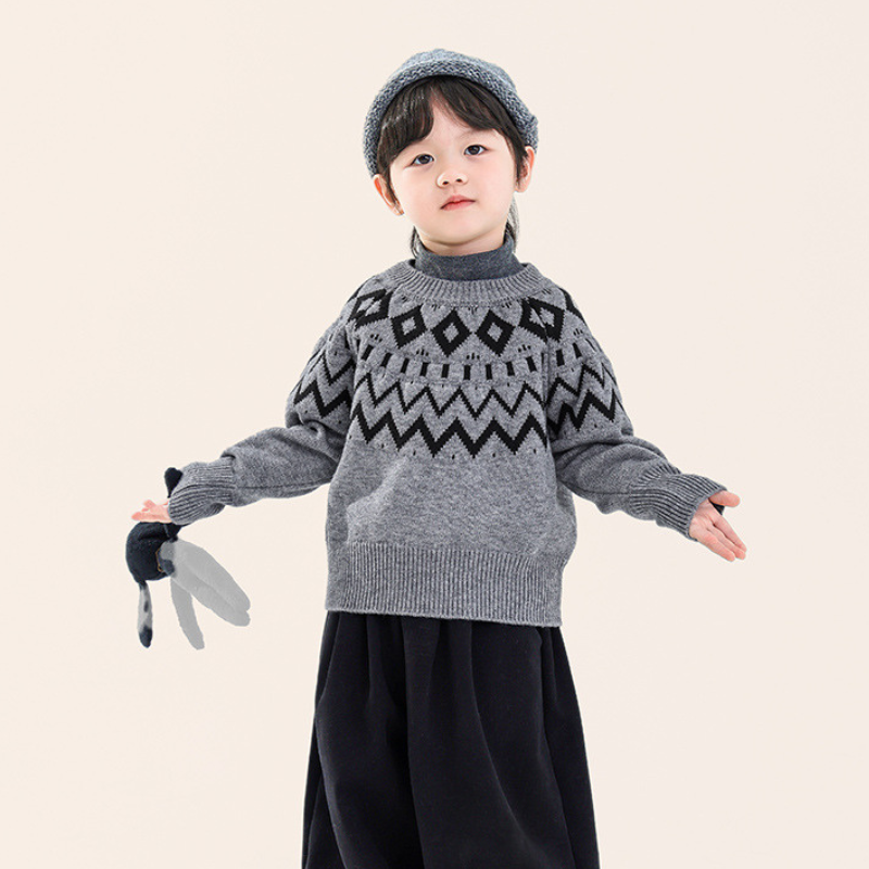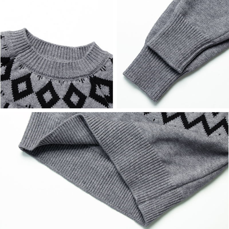 グレーとブラックの落ち着いた配色が、こなれ感のあるノルディック柄をぐっとおしゃれに。
