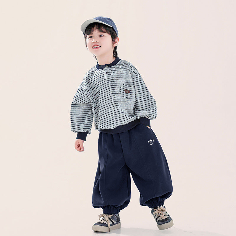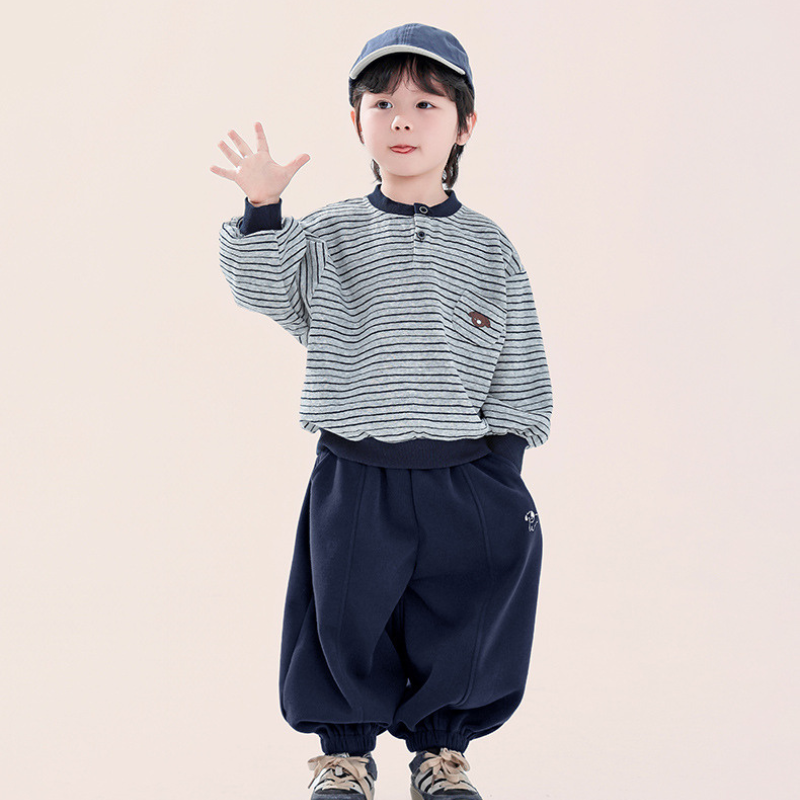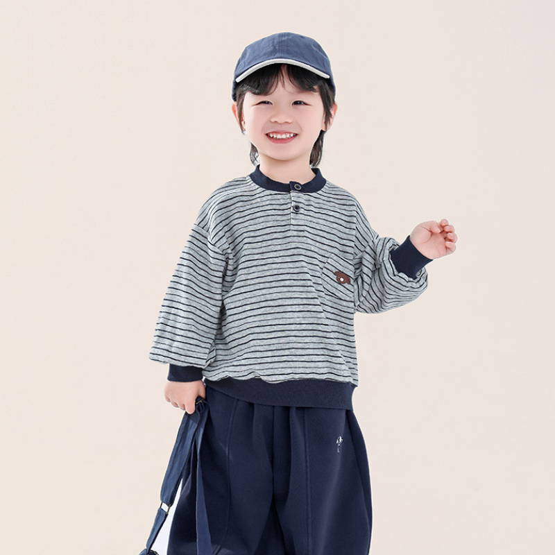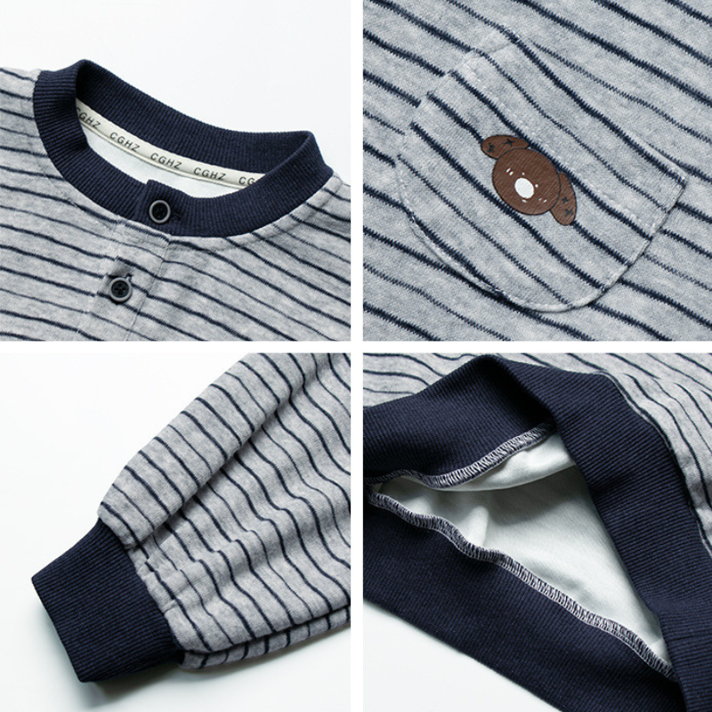 胸元のポケットに小さなクマの顔が、ほっこりとした可愛らしさを添えます。