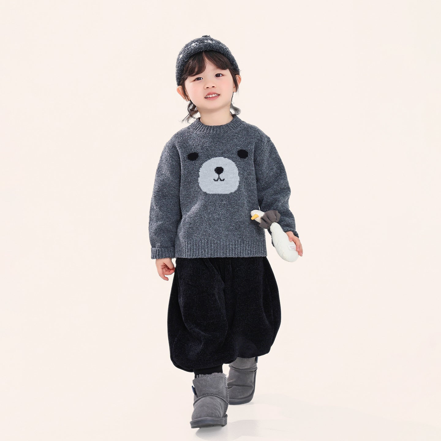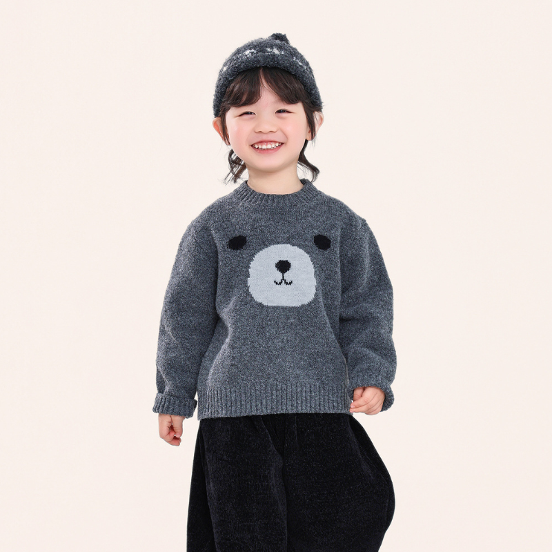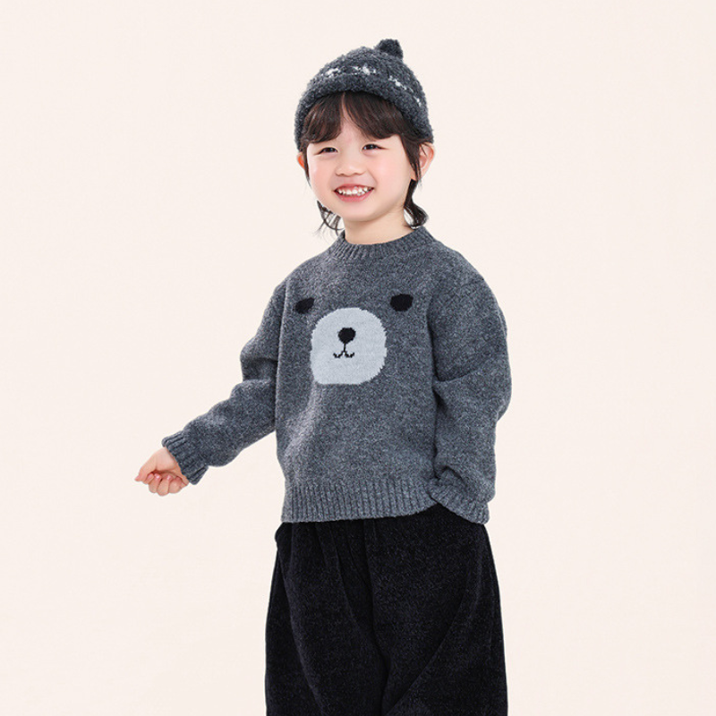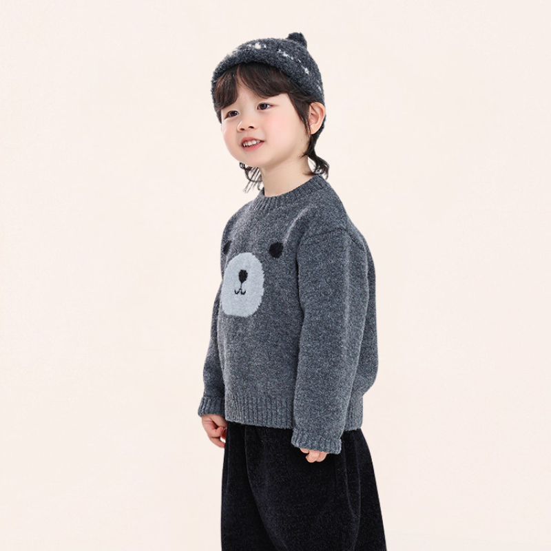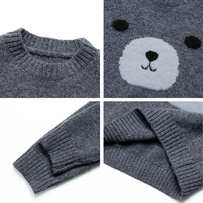 遊び心のあるベアのジャカード模様が、シンプルな地色に愛らしいアクセントを添えます。