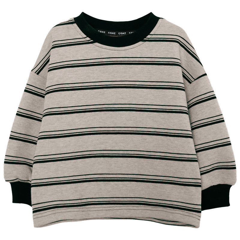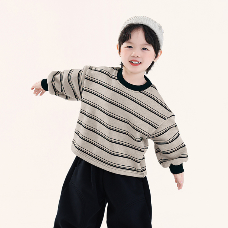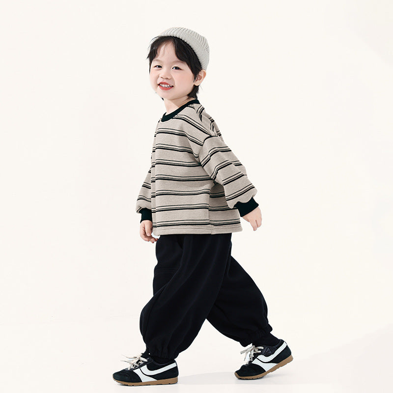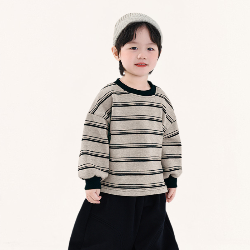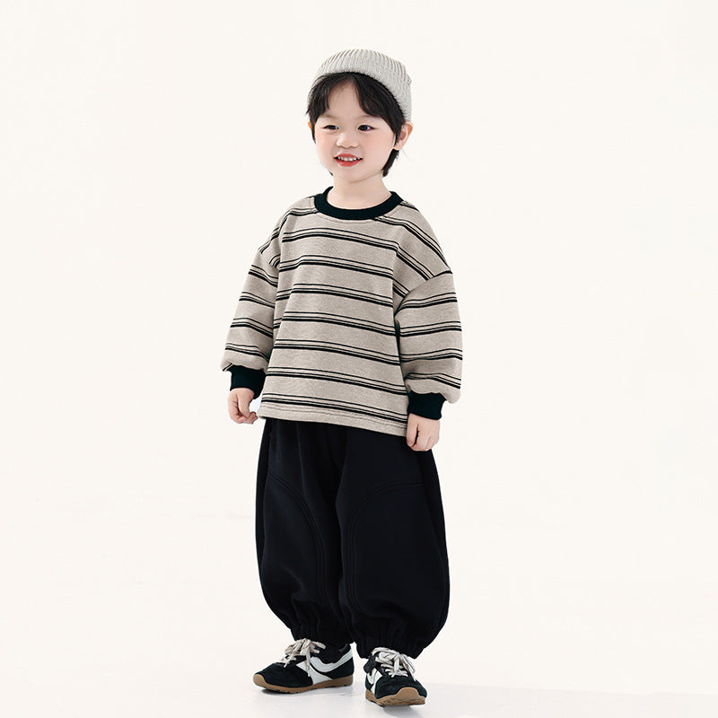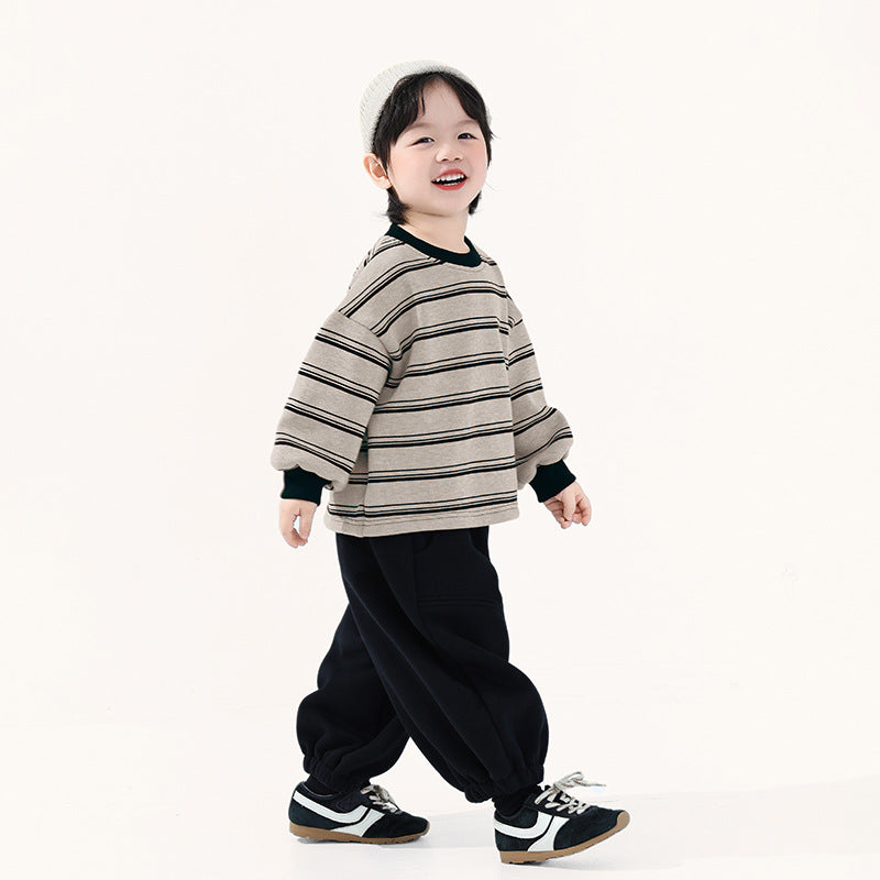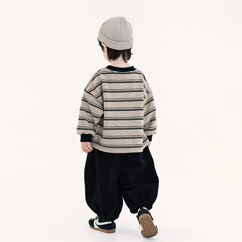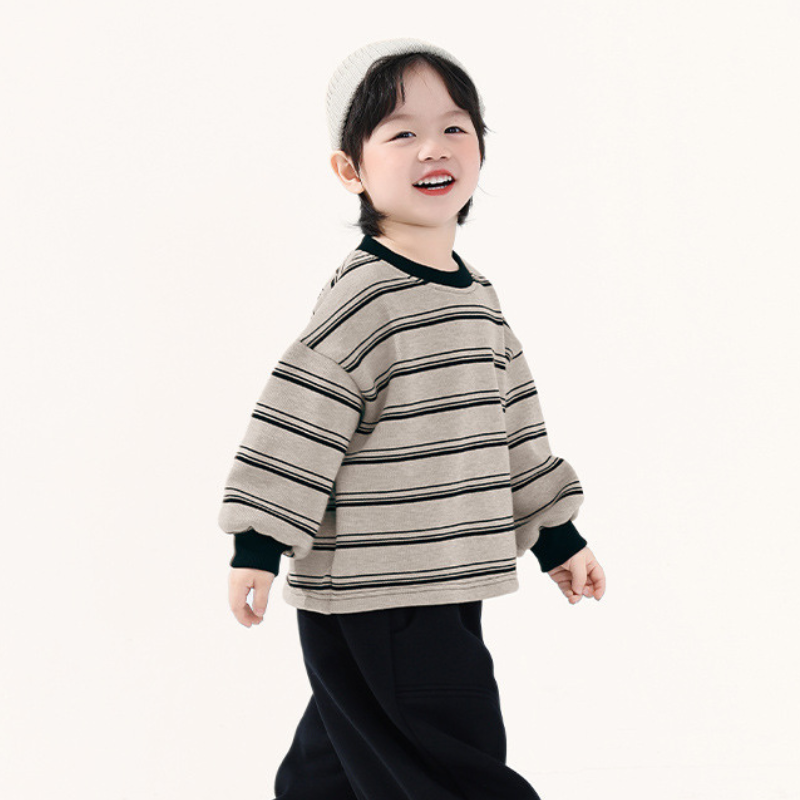 細いボーダーとは一味違う、大胆でモダンなワイドボーダーが特徴の裏ボアスウェット。