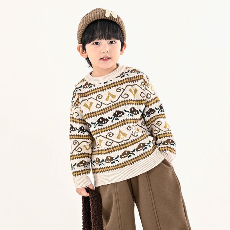 コーディネートの主役になるフォルムシルエット総柄ニットプルオーバー。