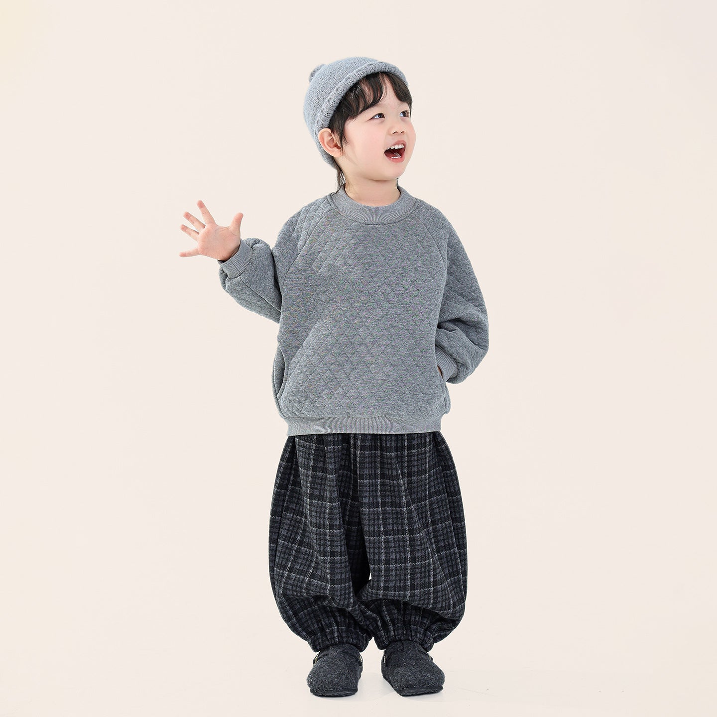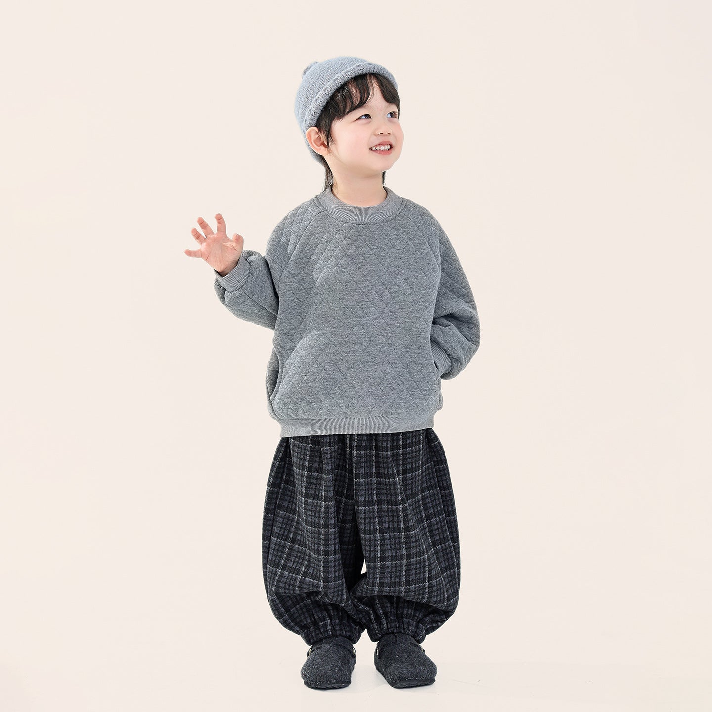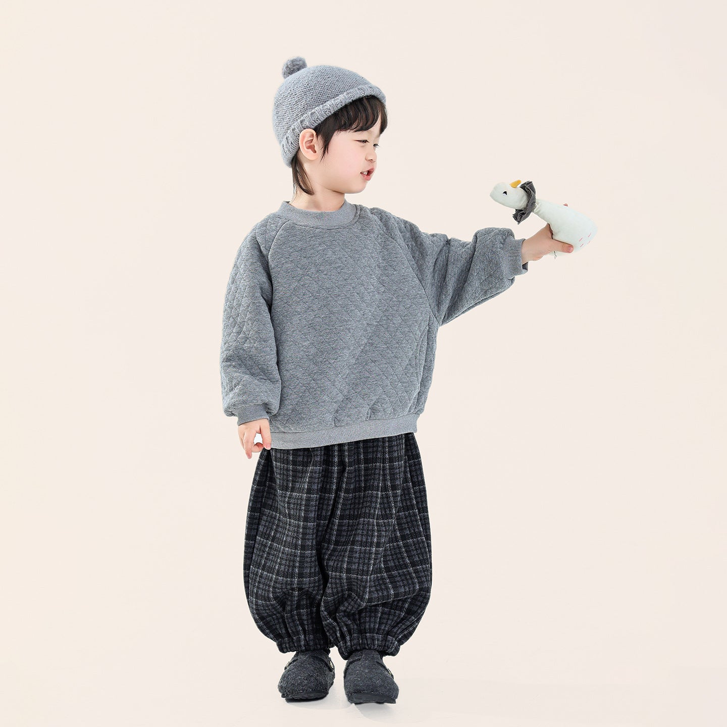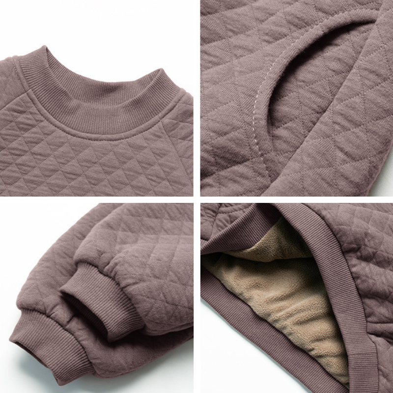 ふっくら厚手のキルティングが、シンプルなスウェットを立体感のあるシルエットに仕立て上げます。