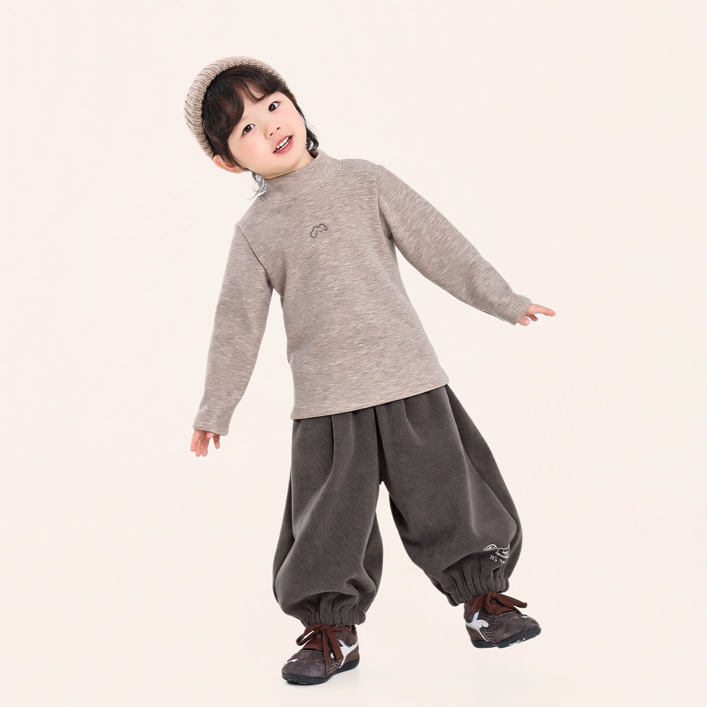 裾クマプリント裏ボアパンツ