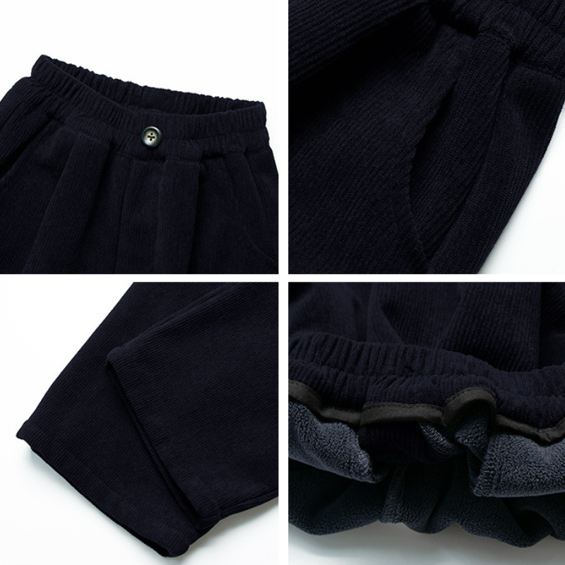 内側はふわふわフリース裏起毛でしっかり保温。表地はしなやかなコーデュロイ素材を使用しています。