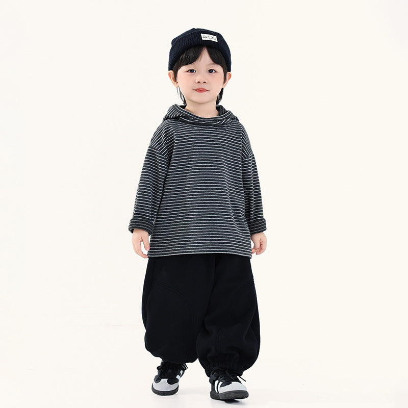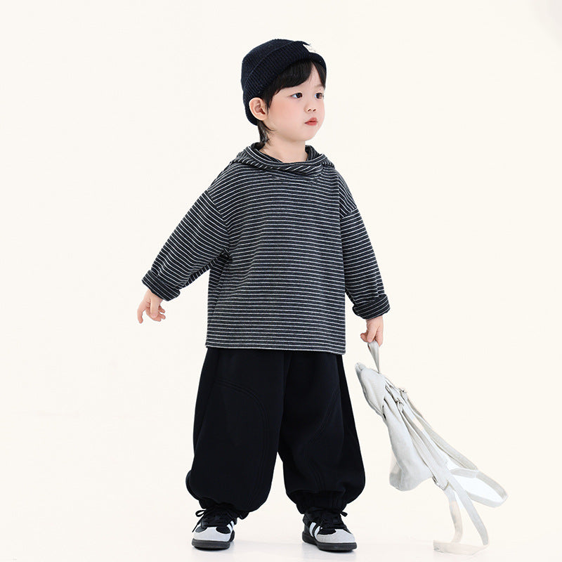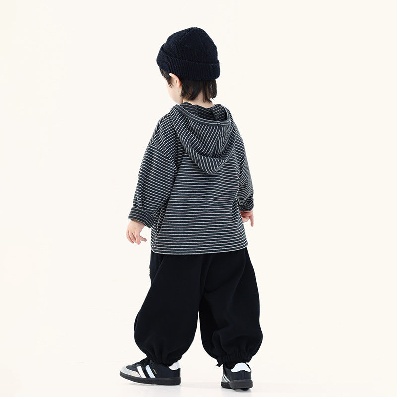 フード付きボーダー柄パーカ