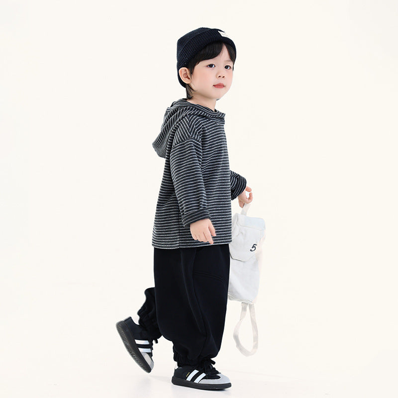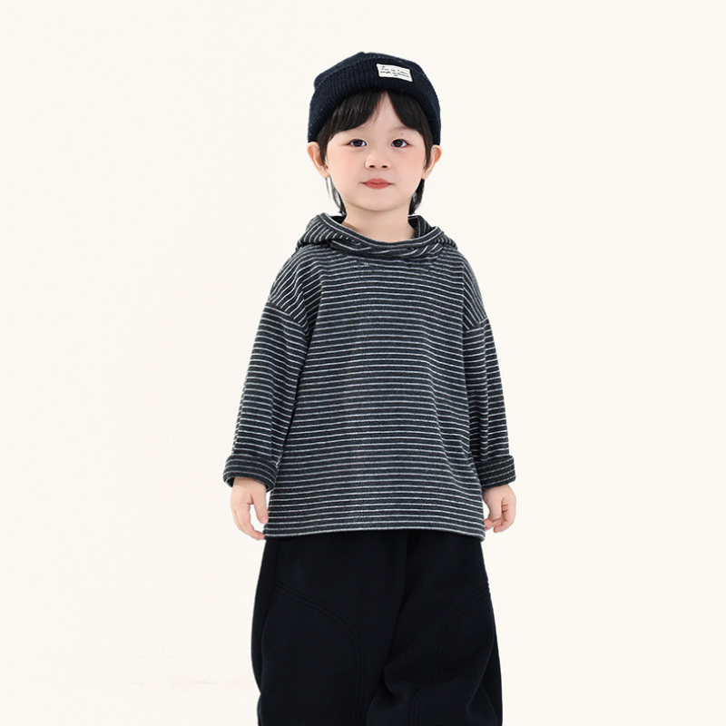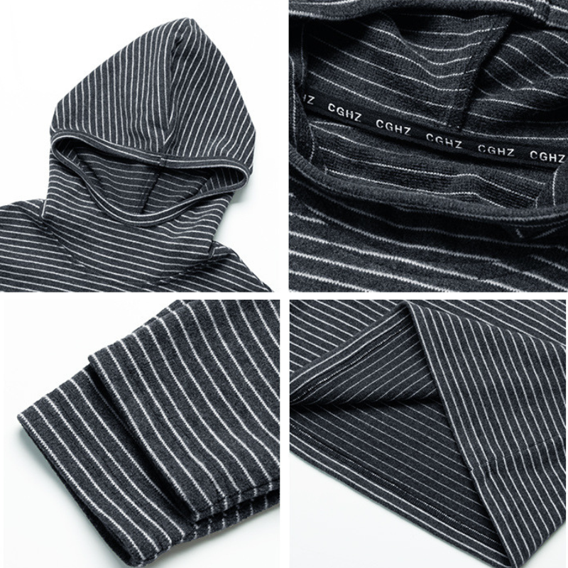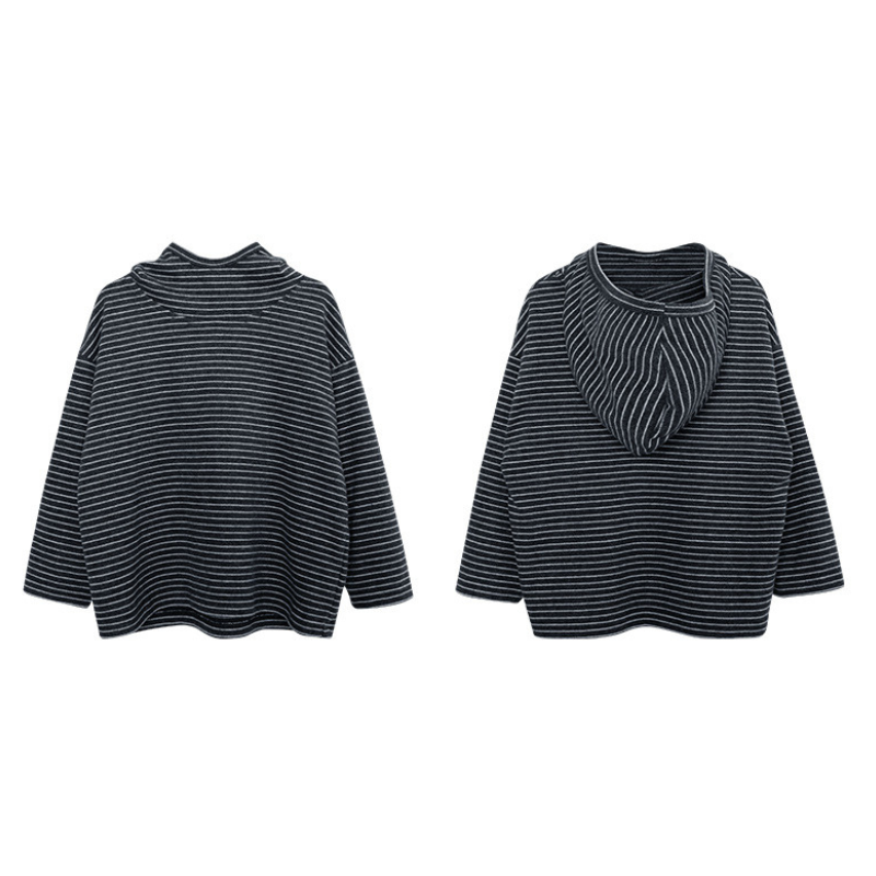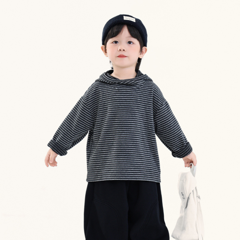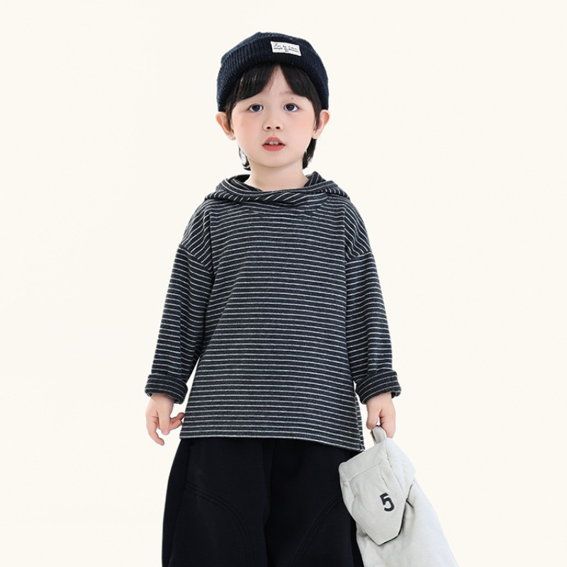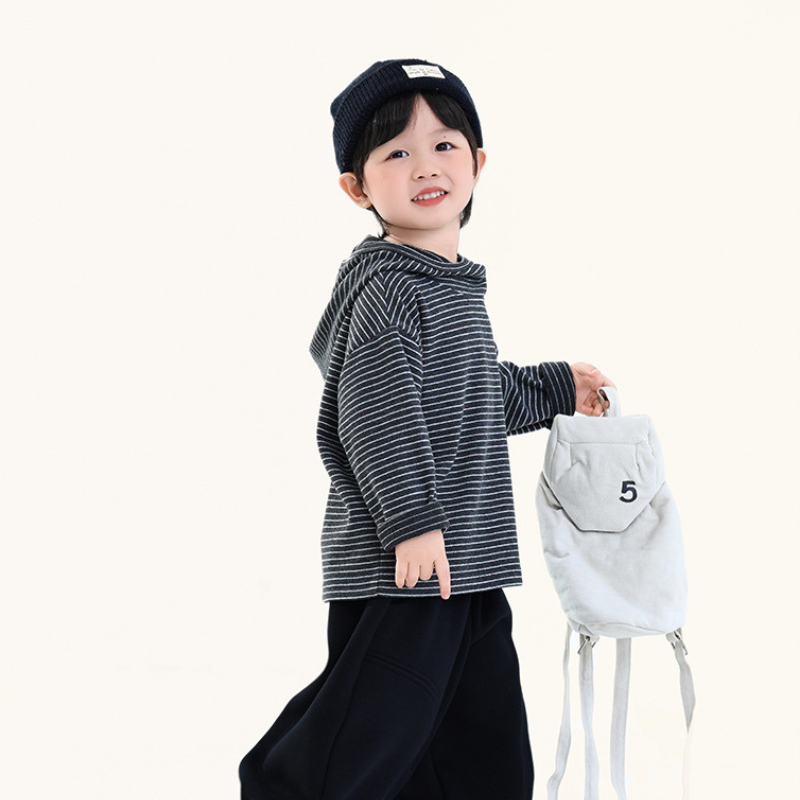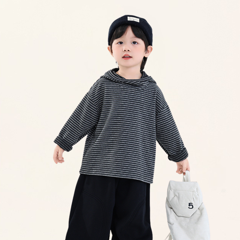 首元にさりげないアクセントを加え、おしゃれなボーダーパーカー。