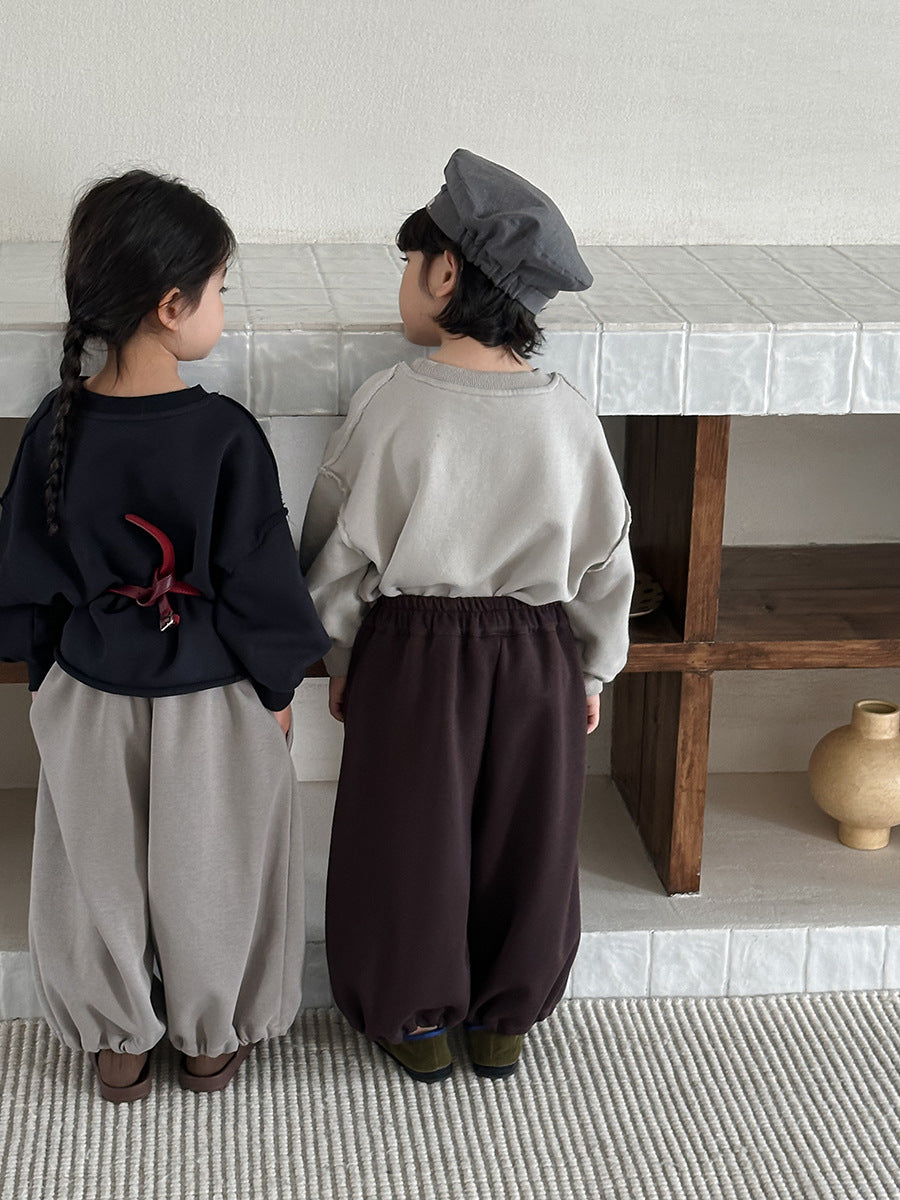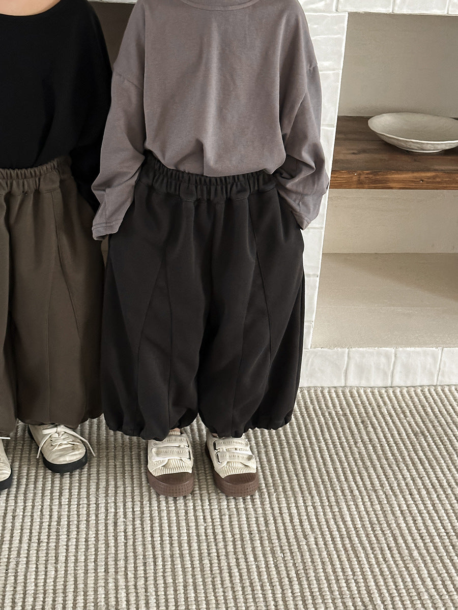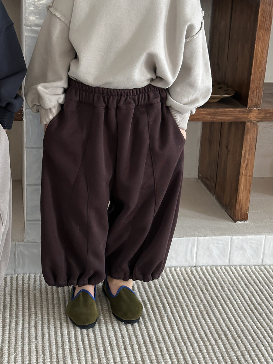 ふんわりとしたボリュームを持たせ、バルーンシルエットのスウェットパンツ。