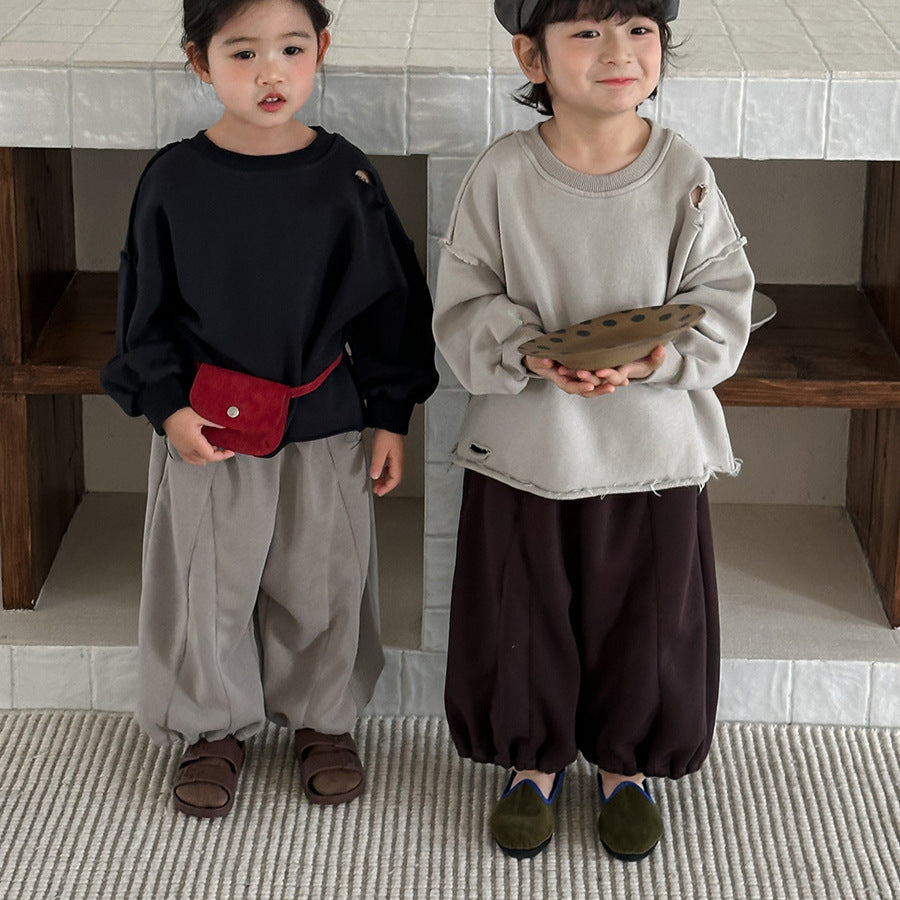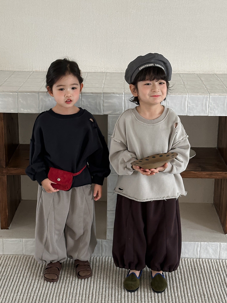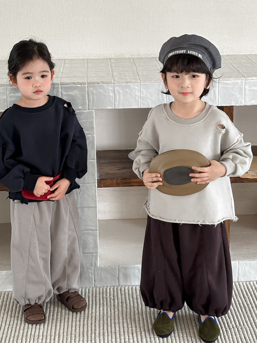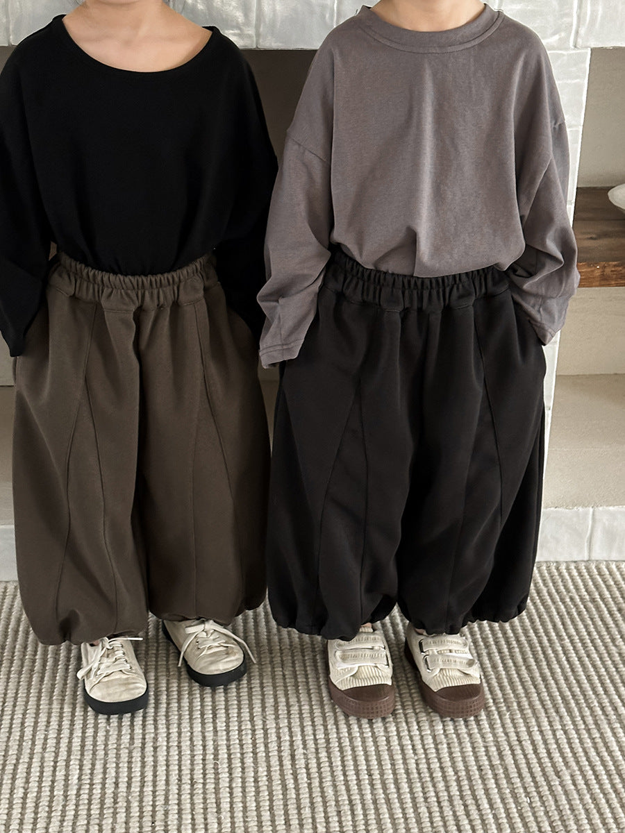 ふんわりとしたボリュームを持たせ、バルーンシルエットのスウェットパンツ。