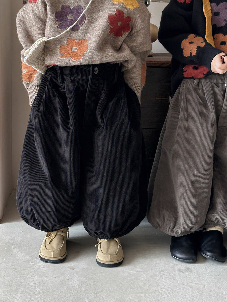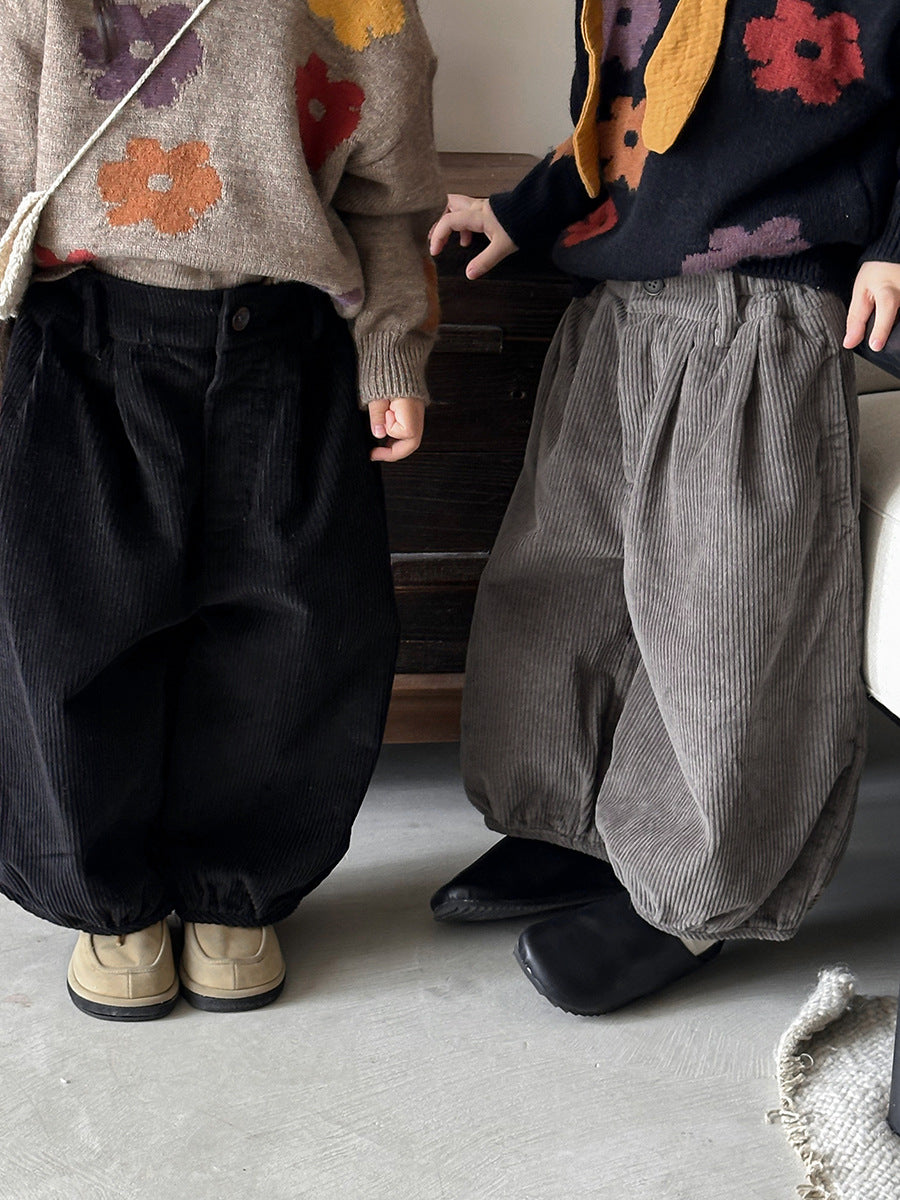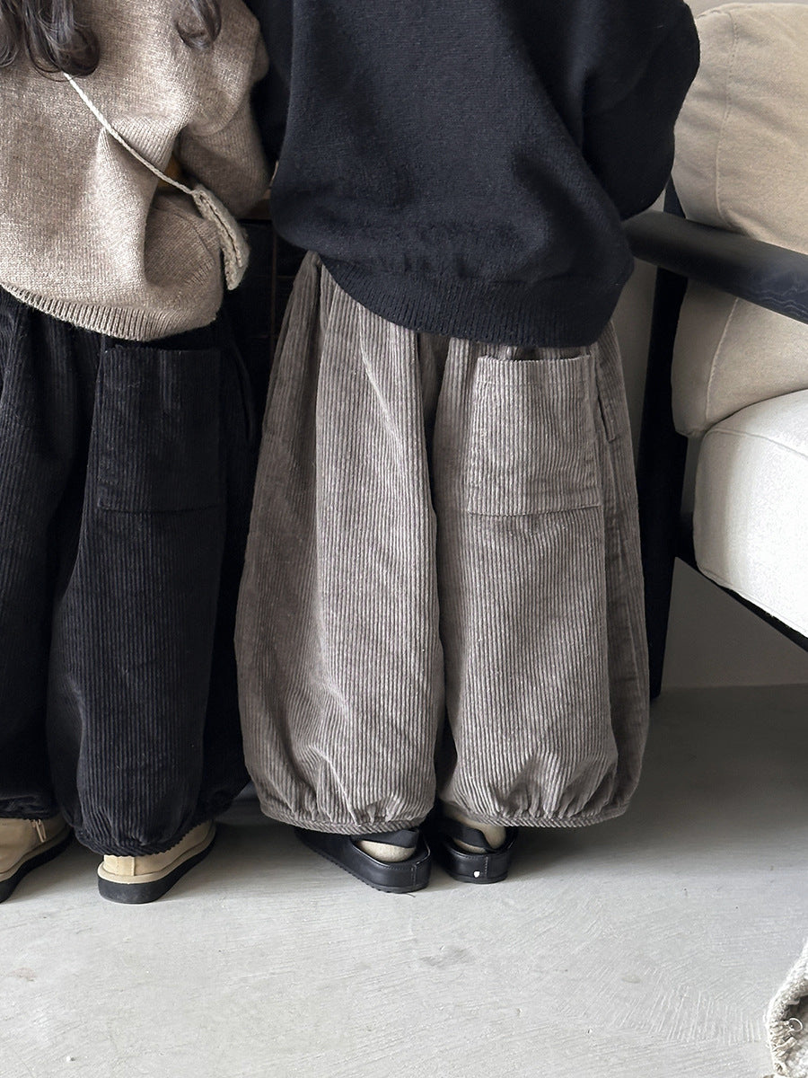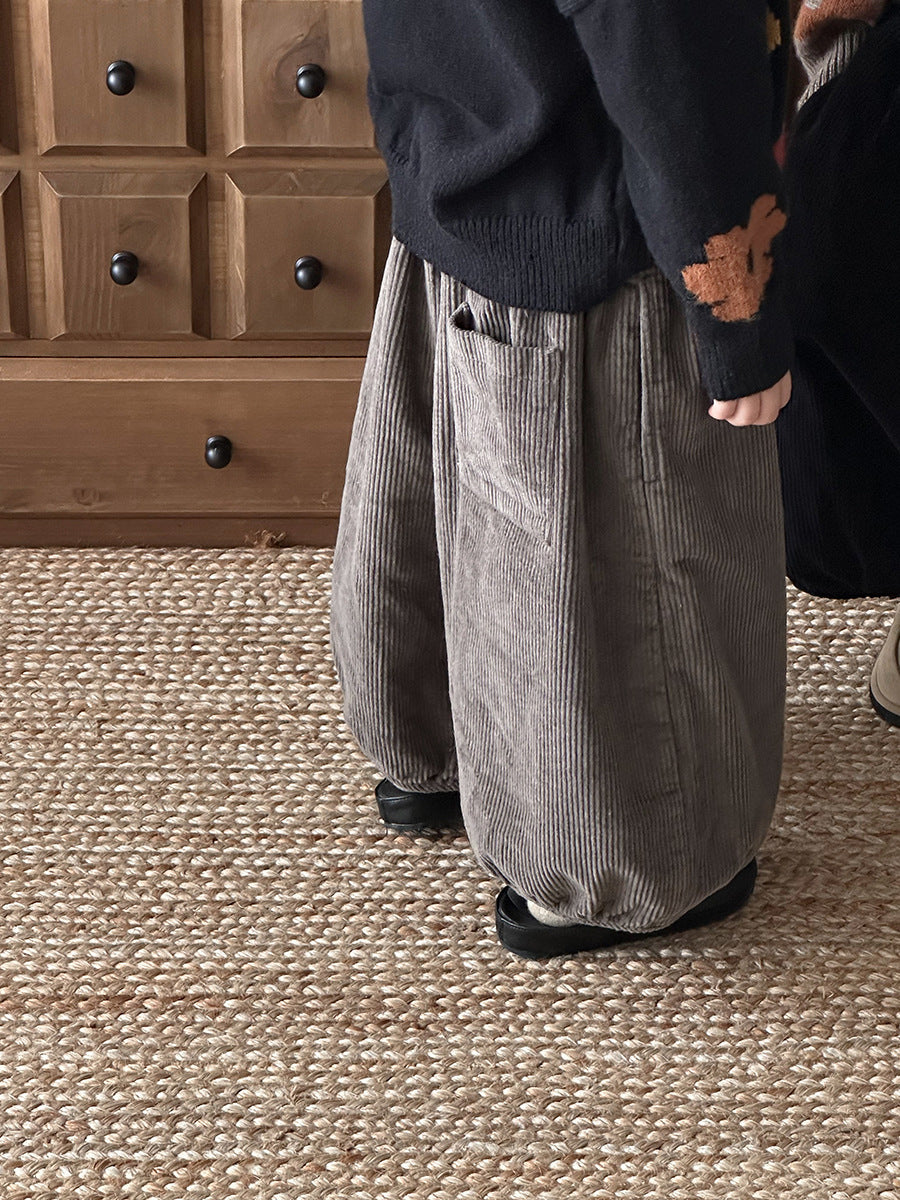肌触りが優しいコーデュロイ地でできた、愛らしいぽっちゃりシルエットのパンツです。