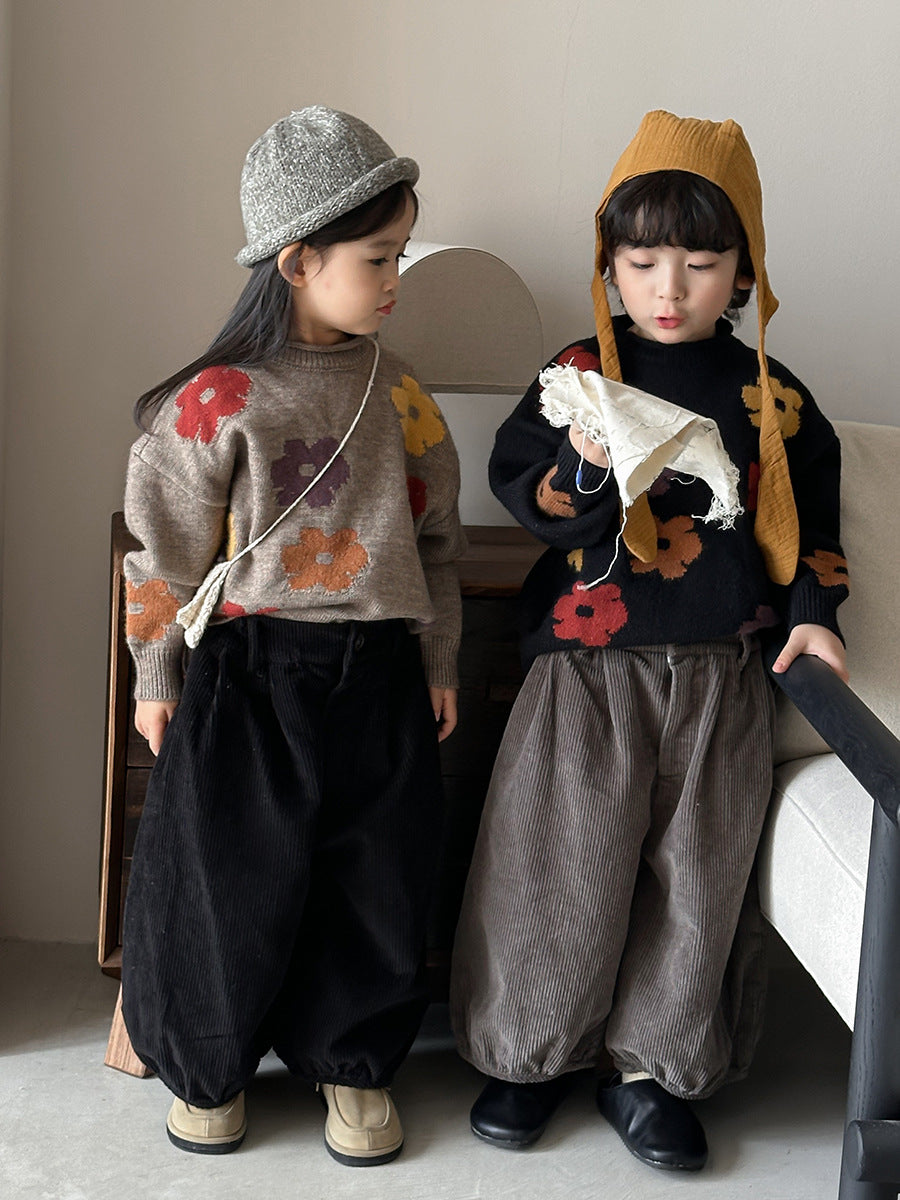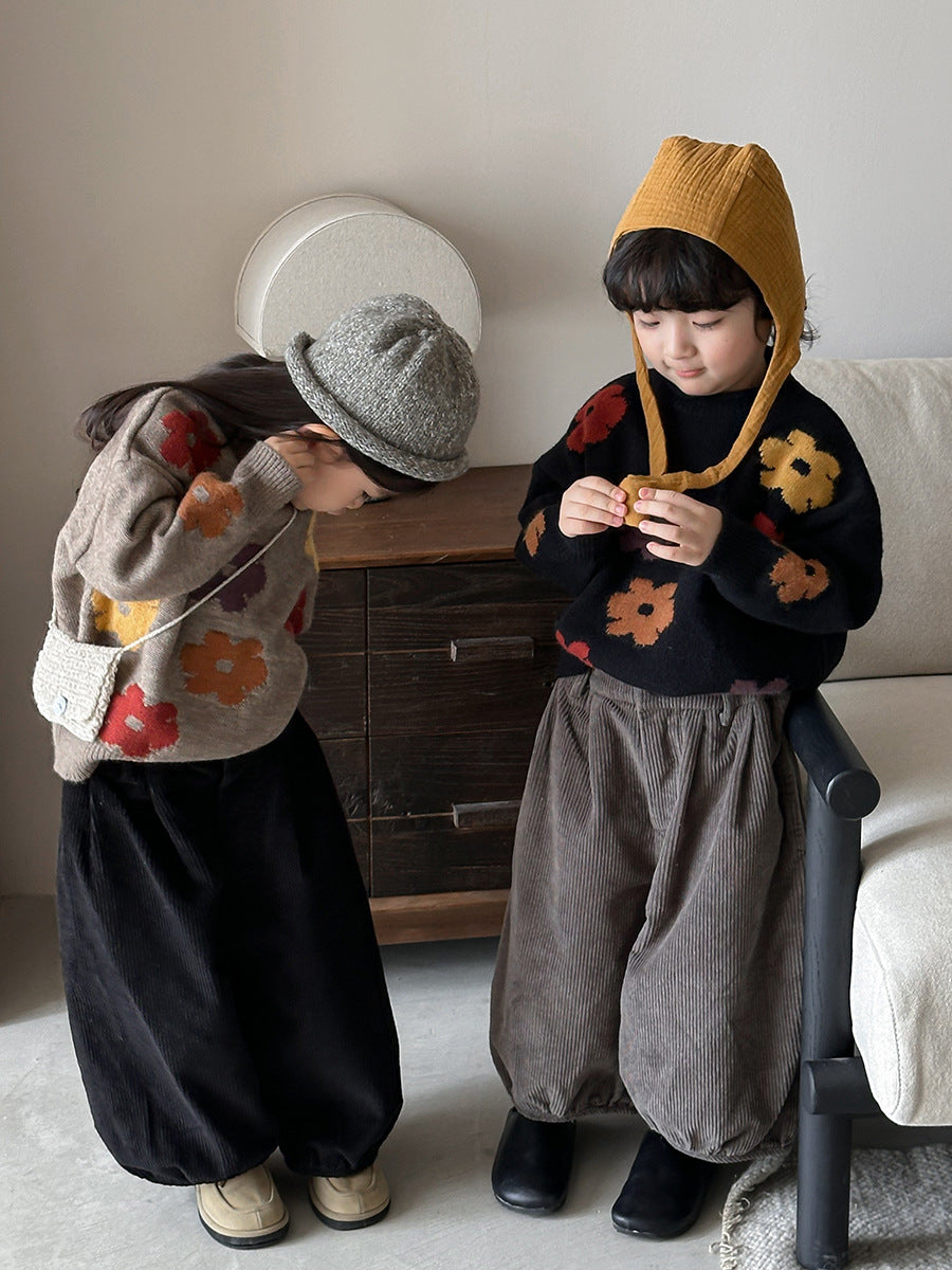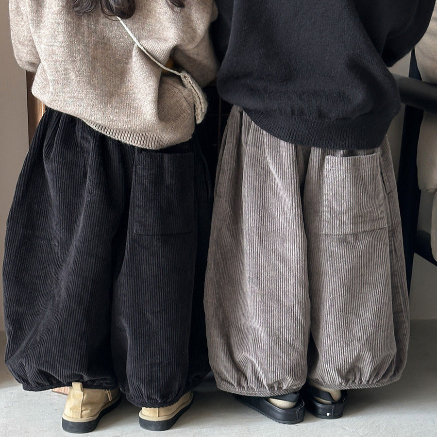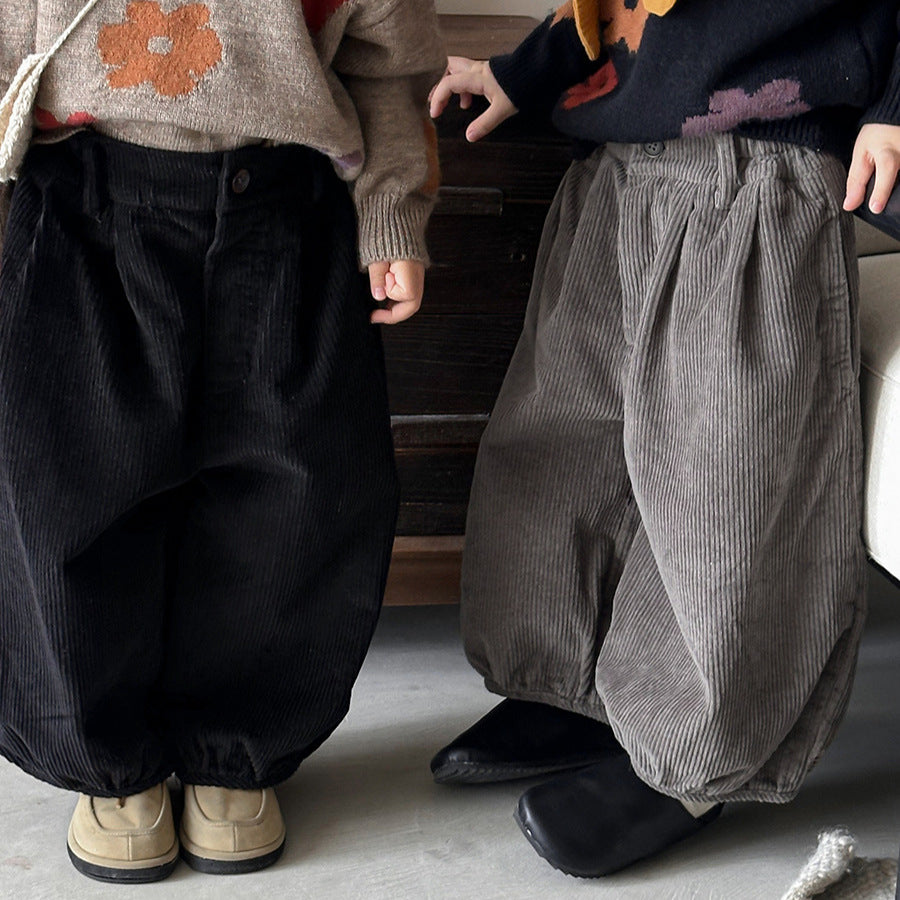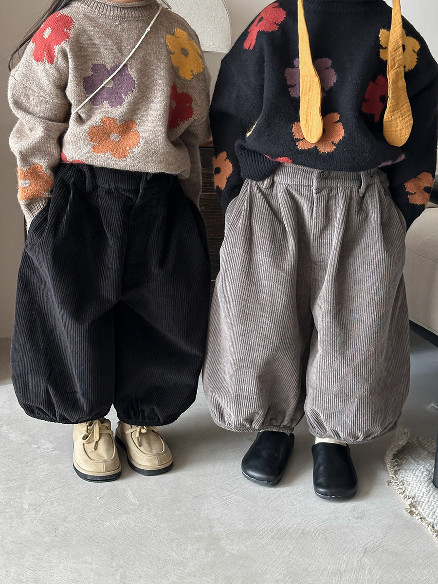 肌触りが優しいコーデュロイ地でできた、愛らしいぽっちゃりシルエットのパンツです。