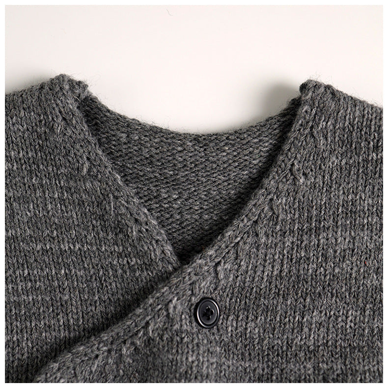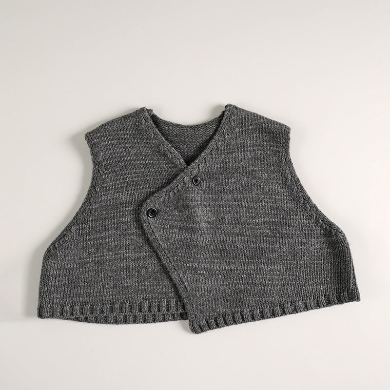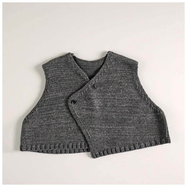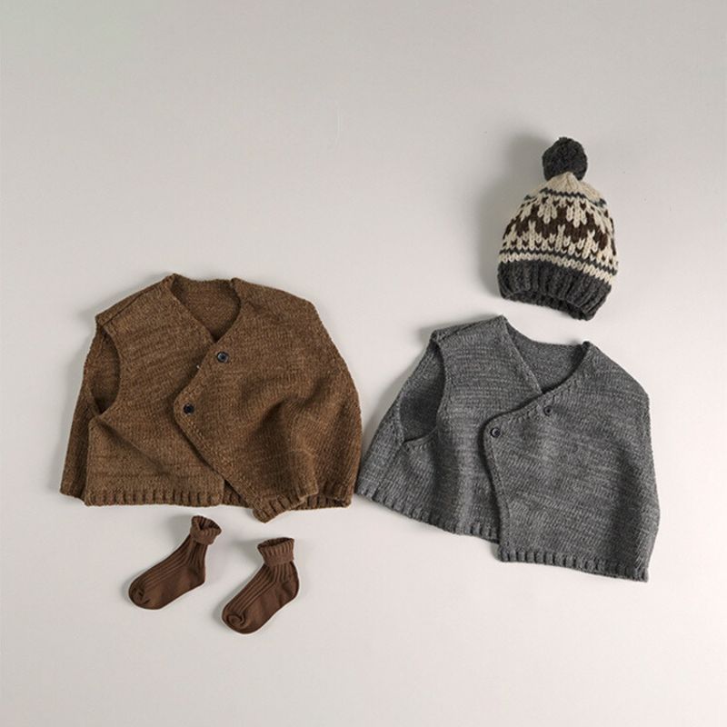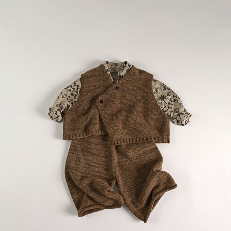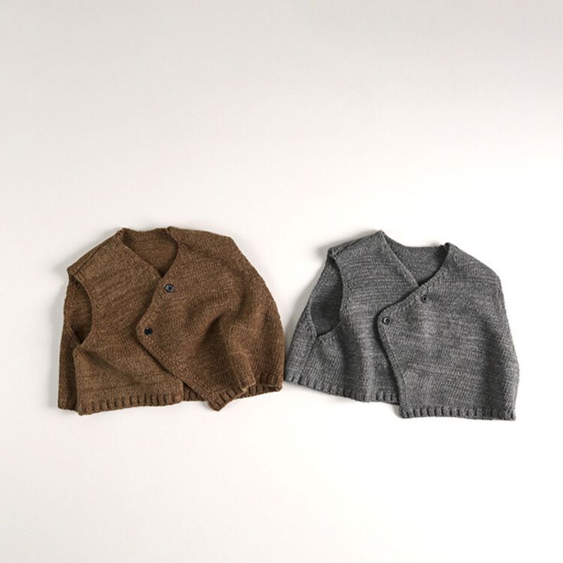 アシメトリーデザインが目を引くニットベストセットアップ。