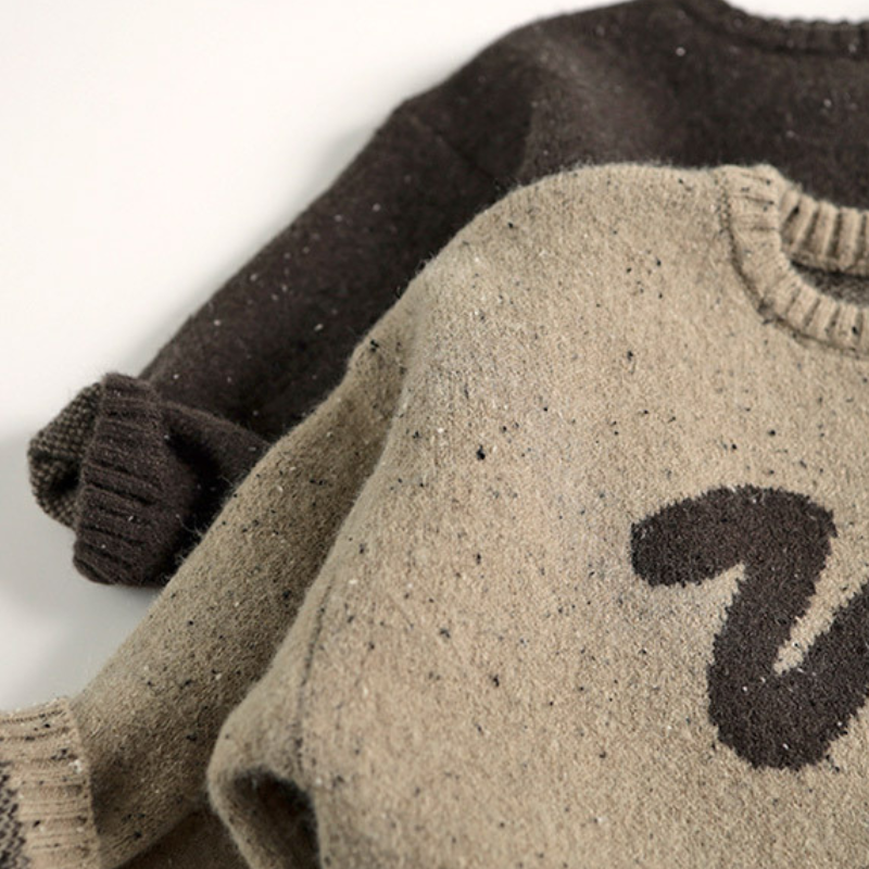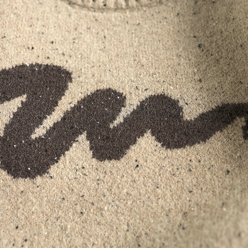 ふんわりボリュームシルエットにビッグロゴが映えるニットセーター。