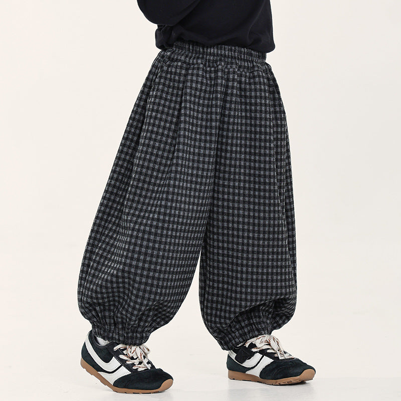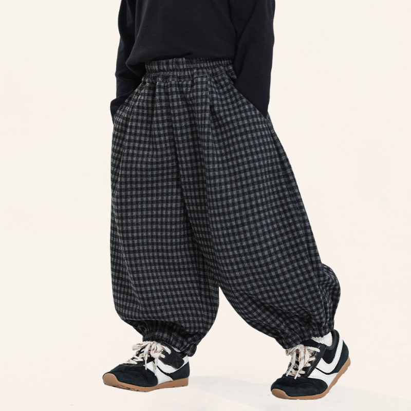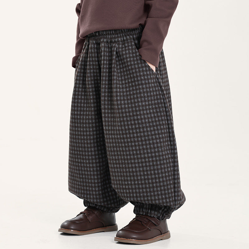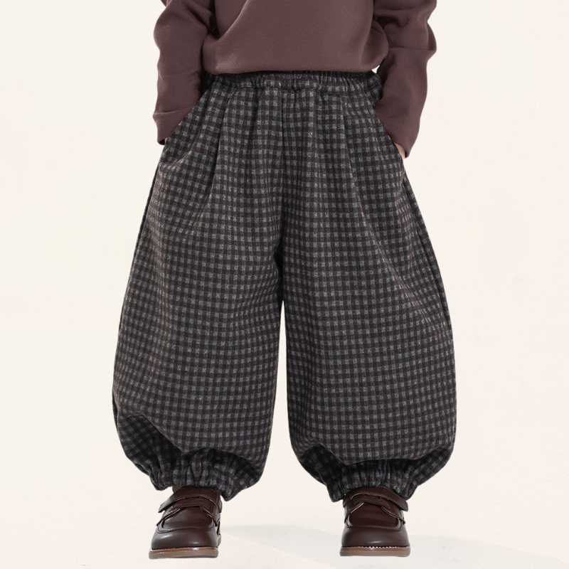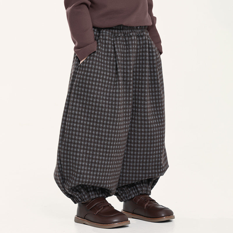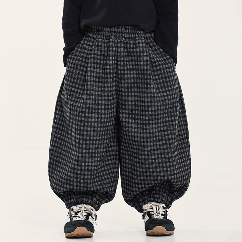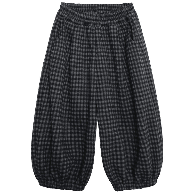 ウール風チェックバルーンパンツ