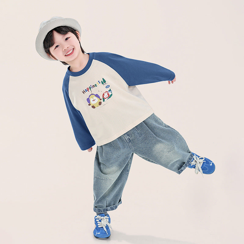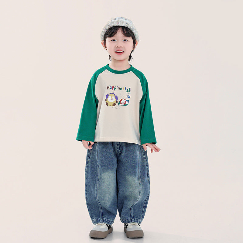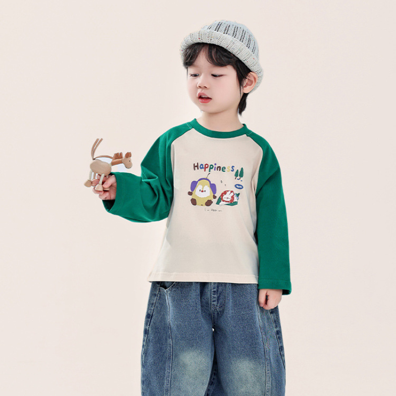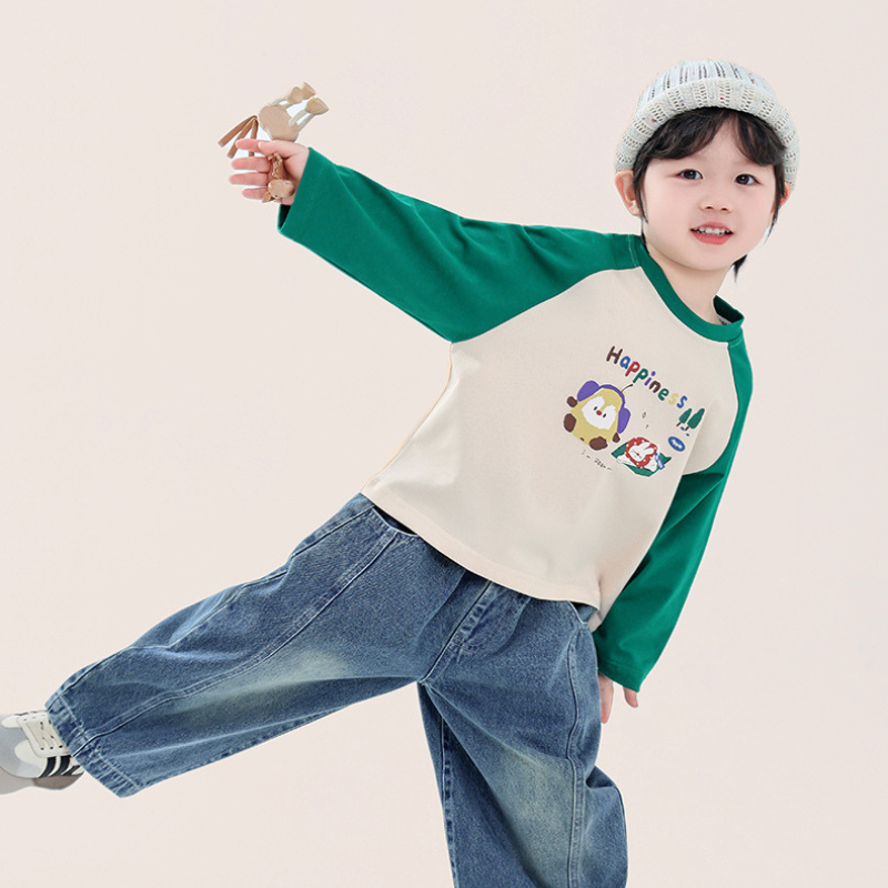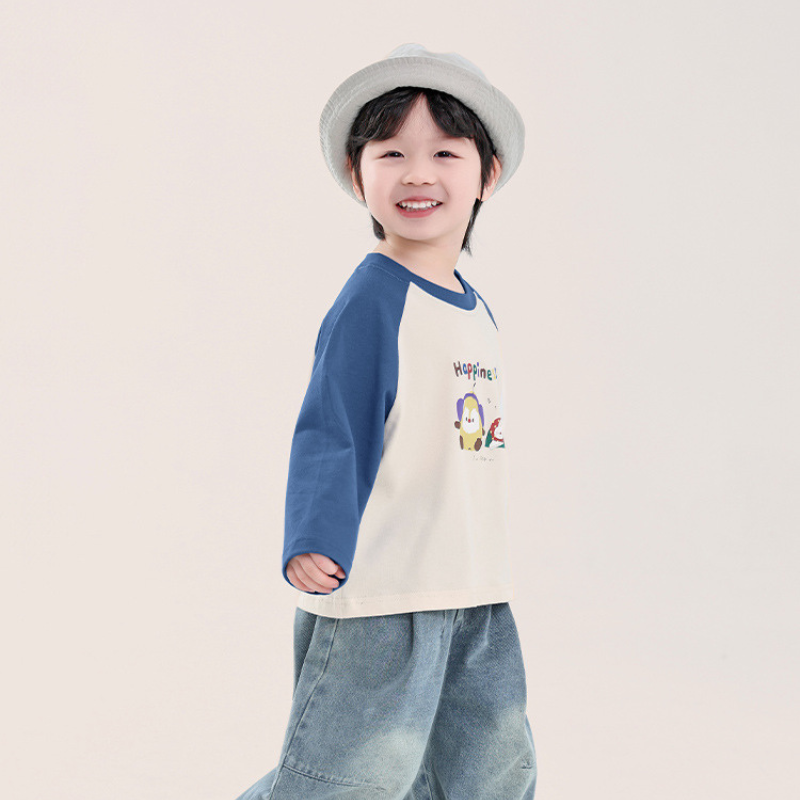 カラフルプリント綿100%ラグランTシャツ