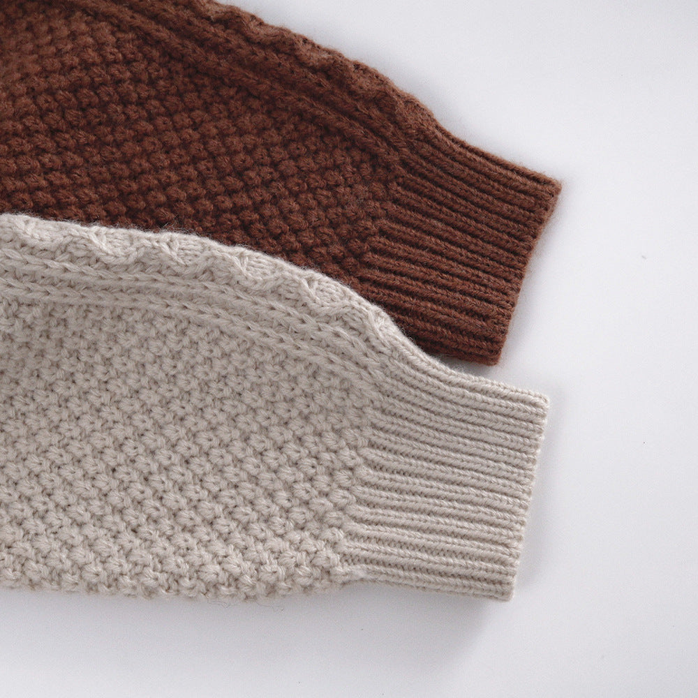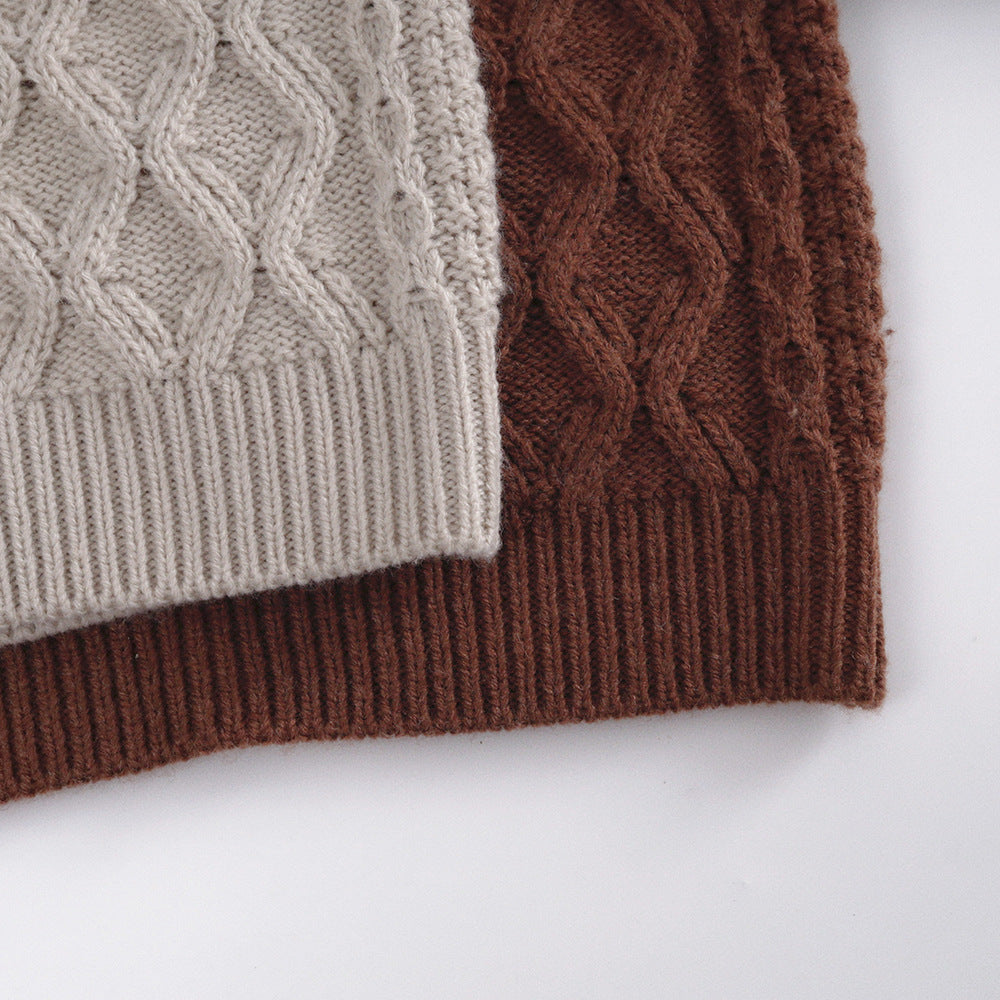 ウール素材と立体感のあるケーブル編みが、クラシックで温かな風合いを演出。
