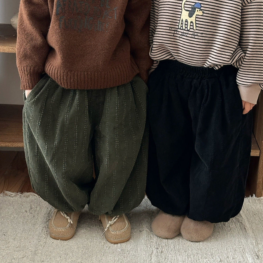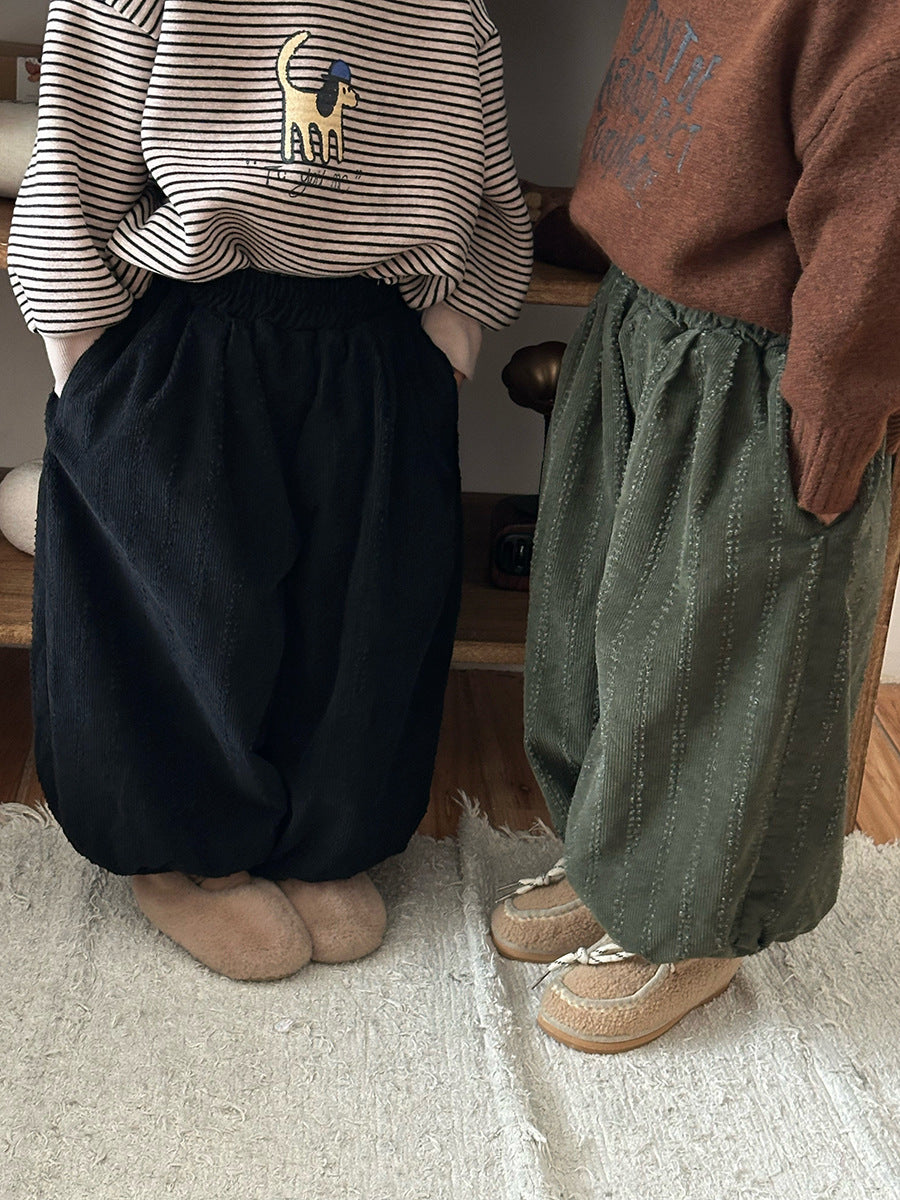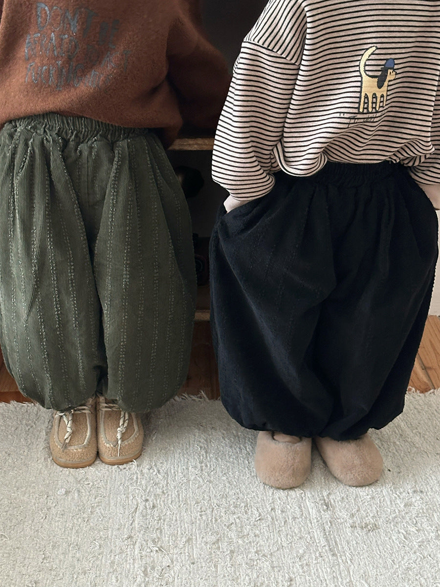 コーデュロイ裏ボアストライプパンツ
