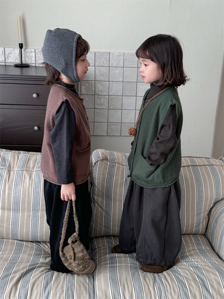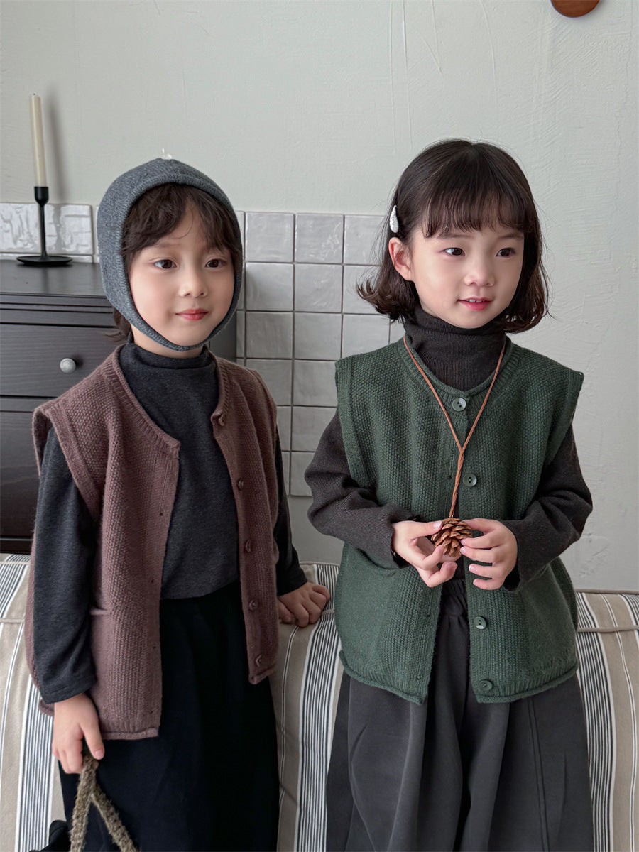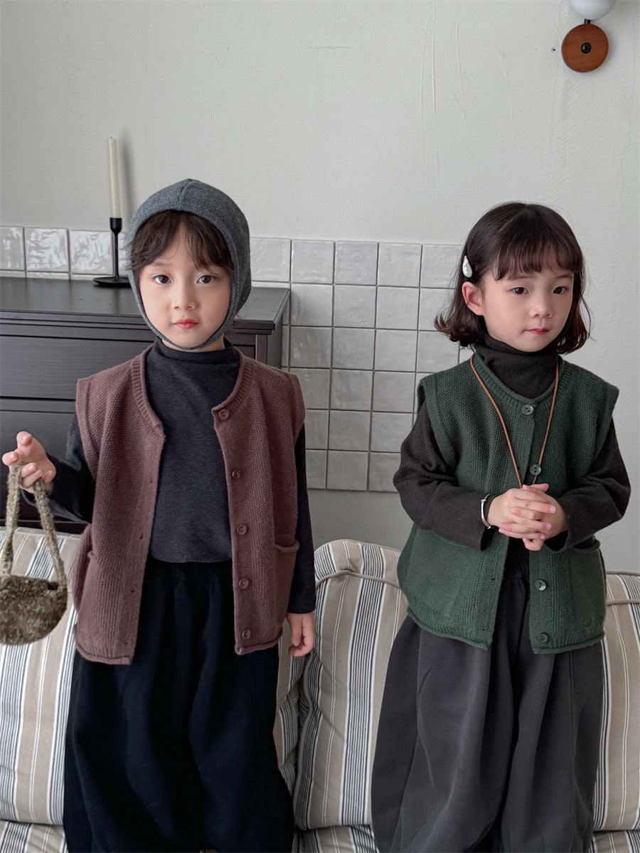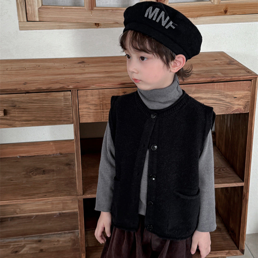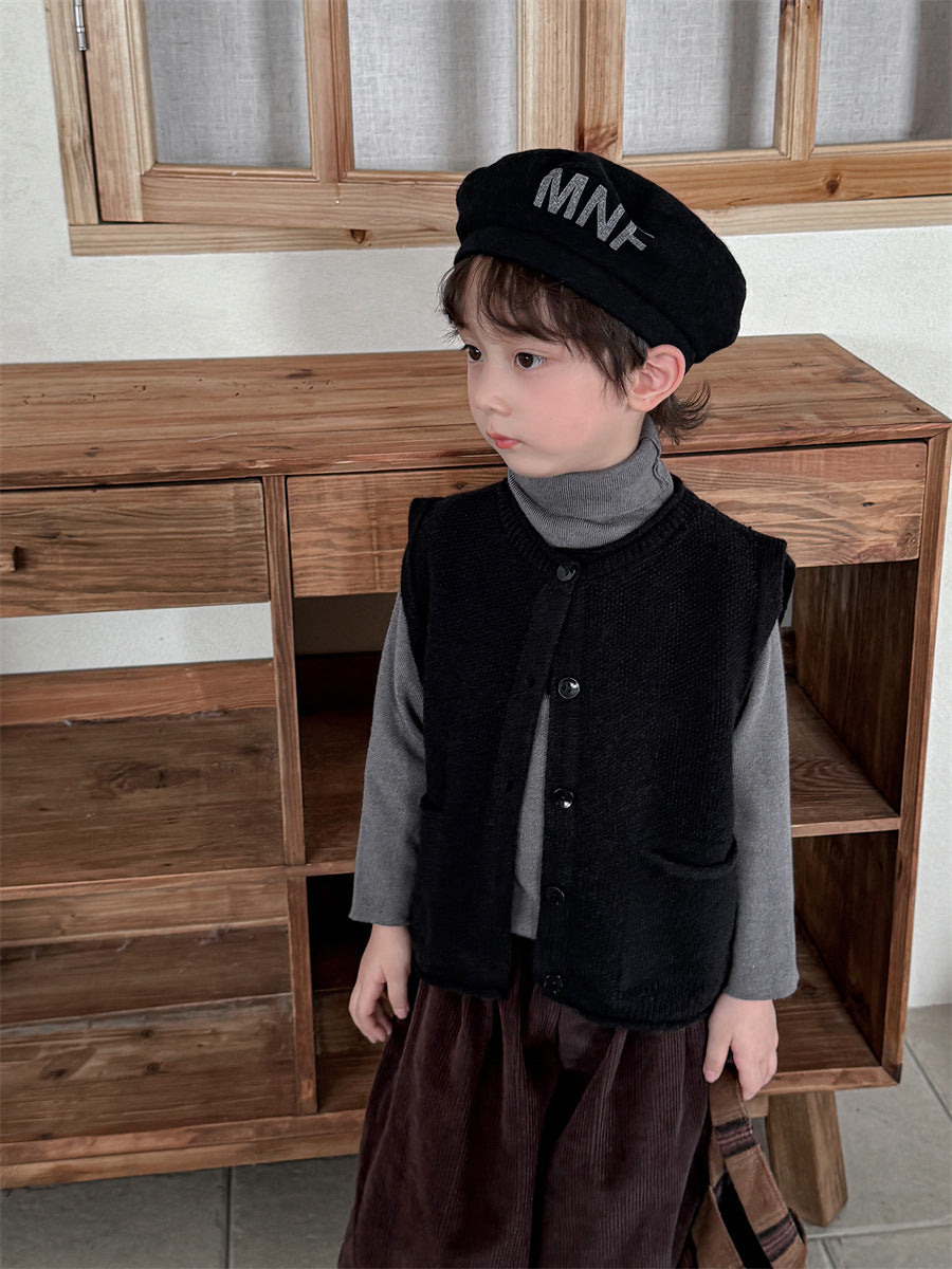 少しゆとりのあるサイズ感のシンプルデザインニットベスト。