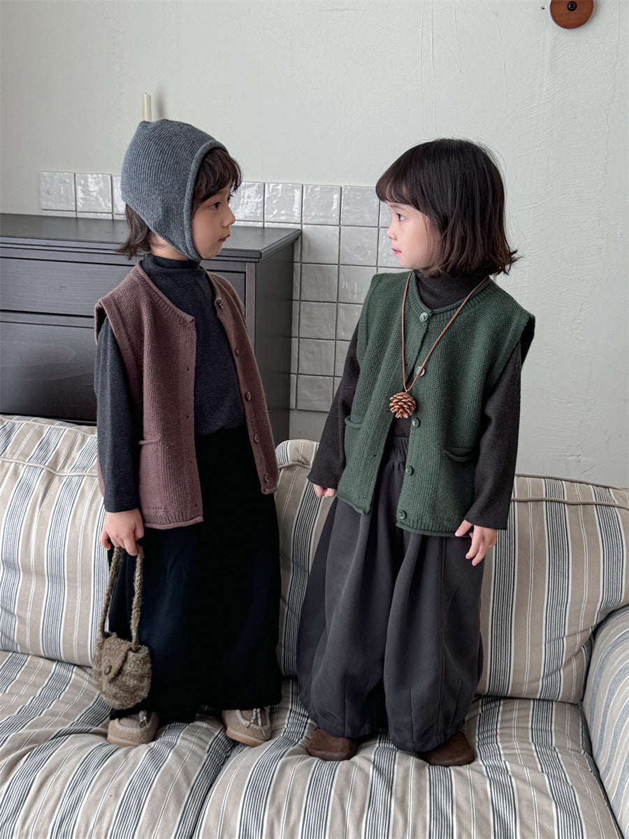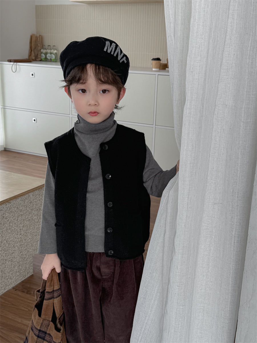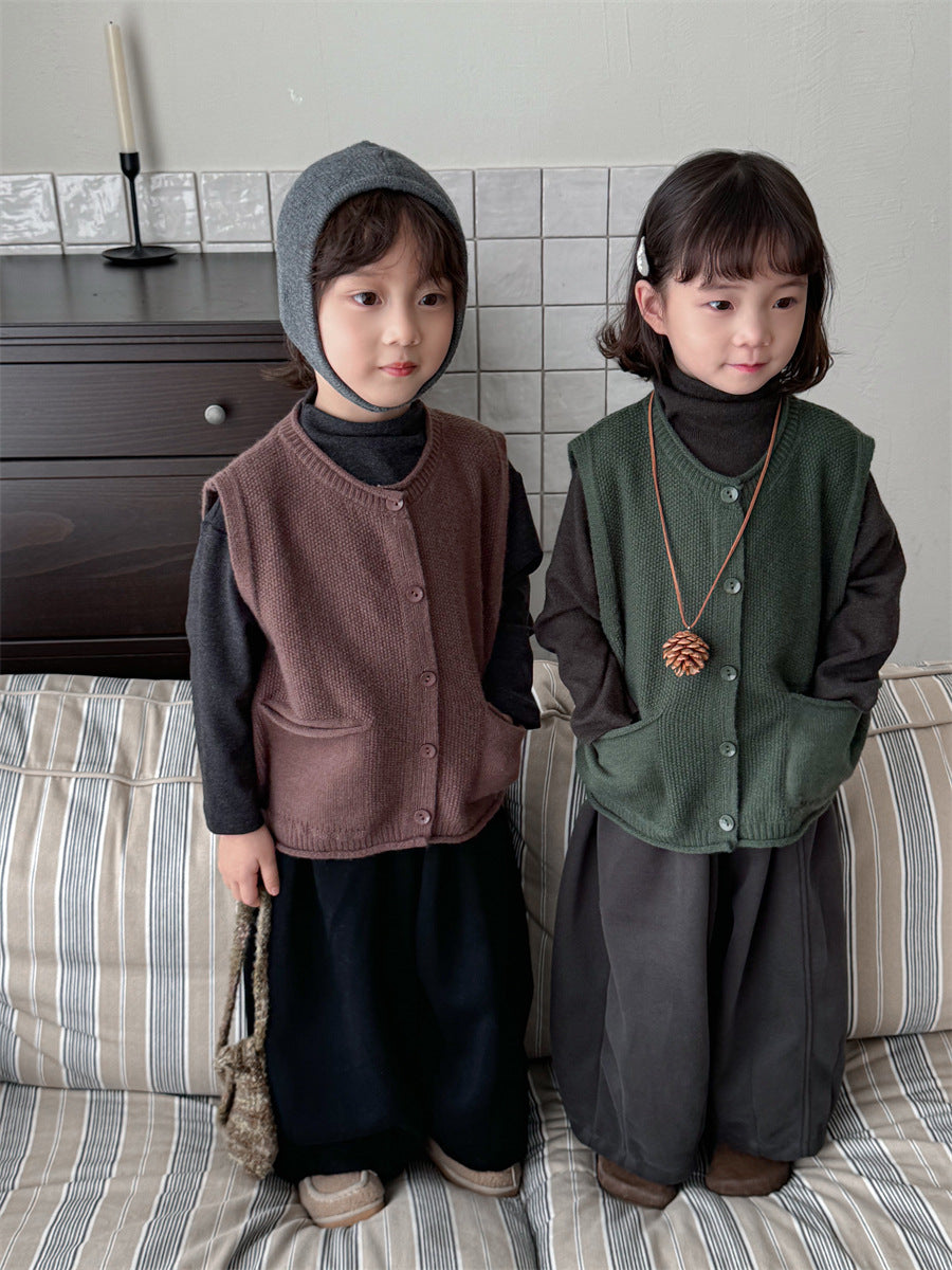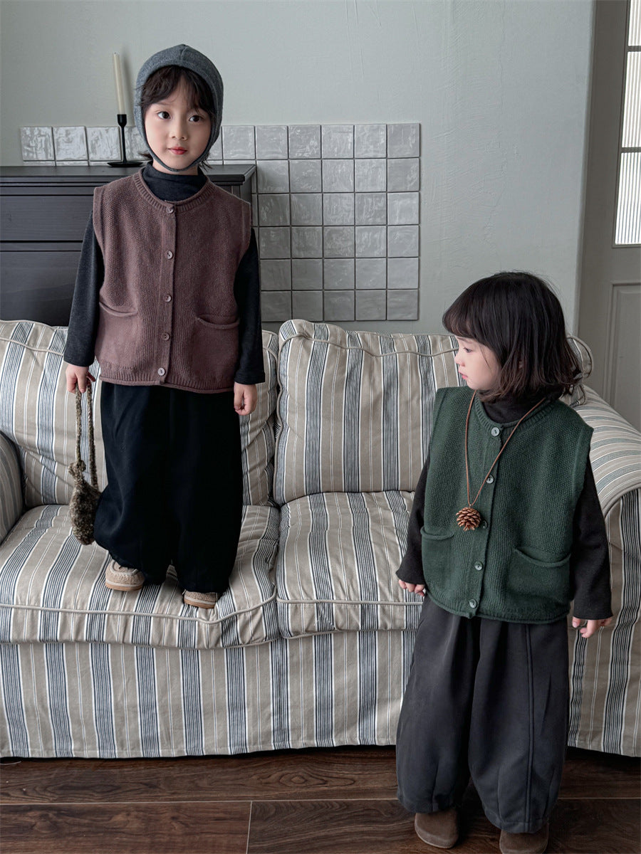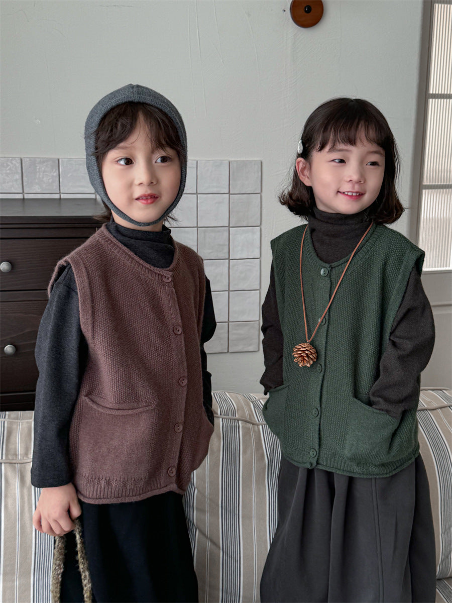 少しゆとりのあるサイズ感のシンプルデザインニットベスト。