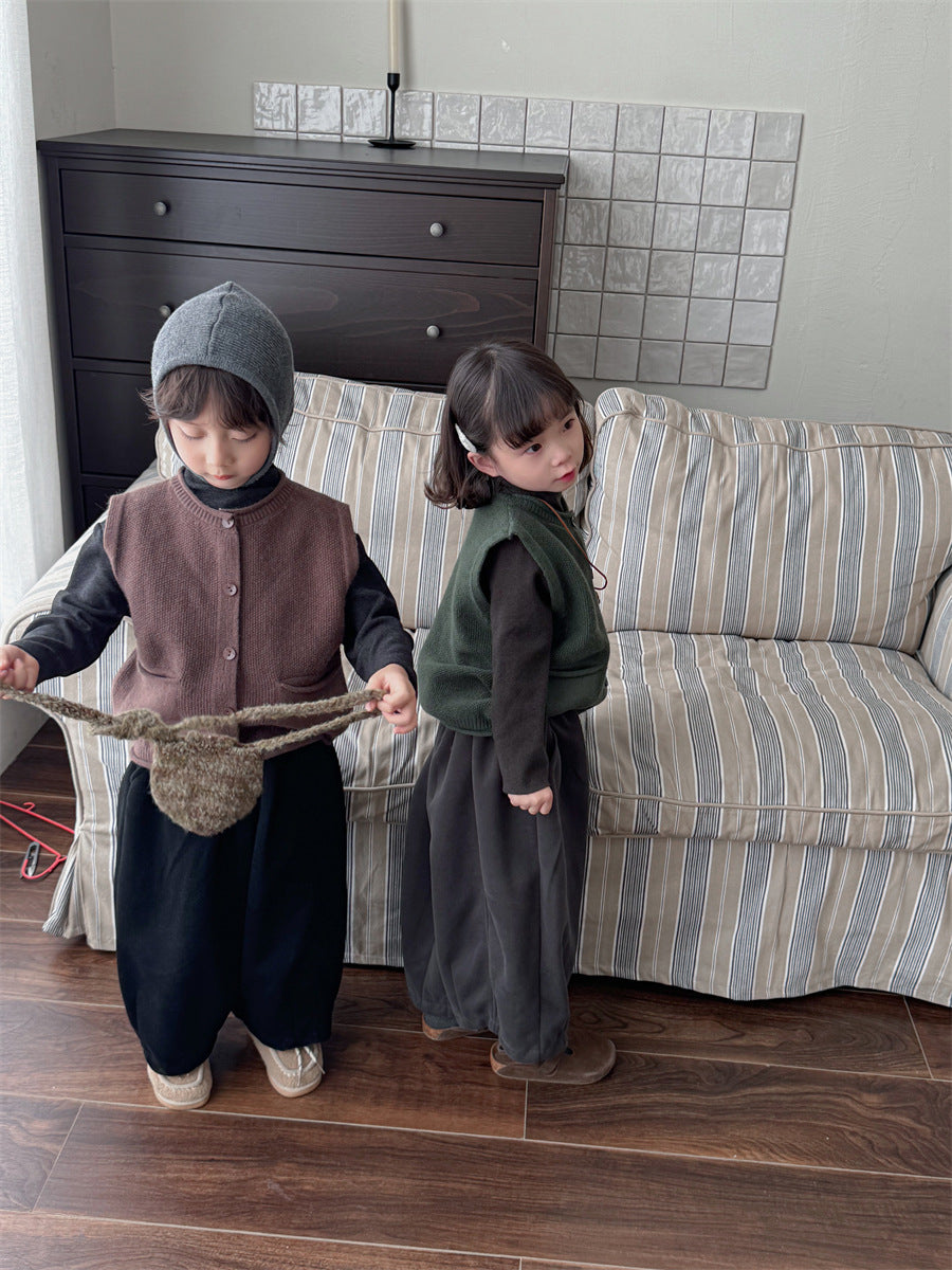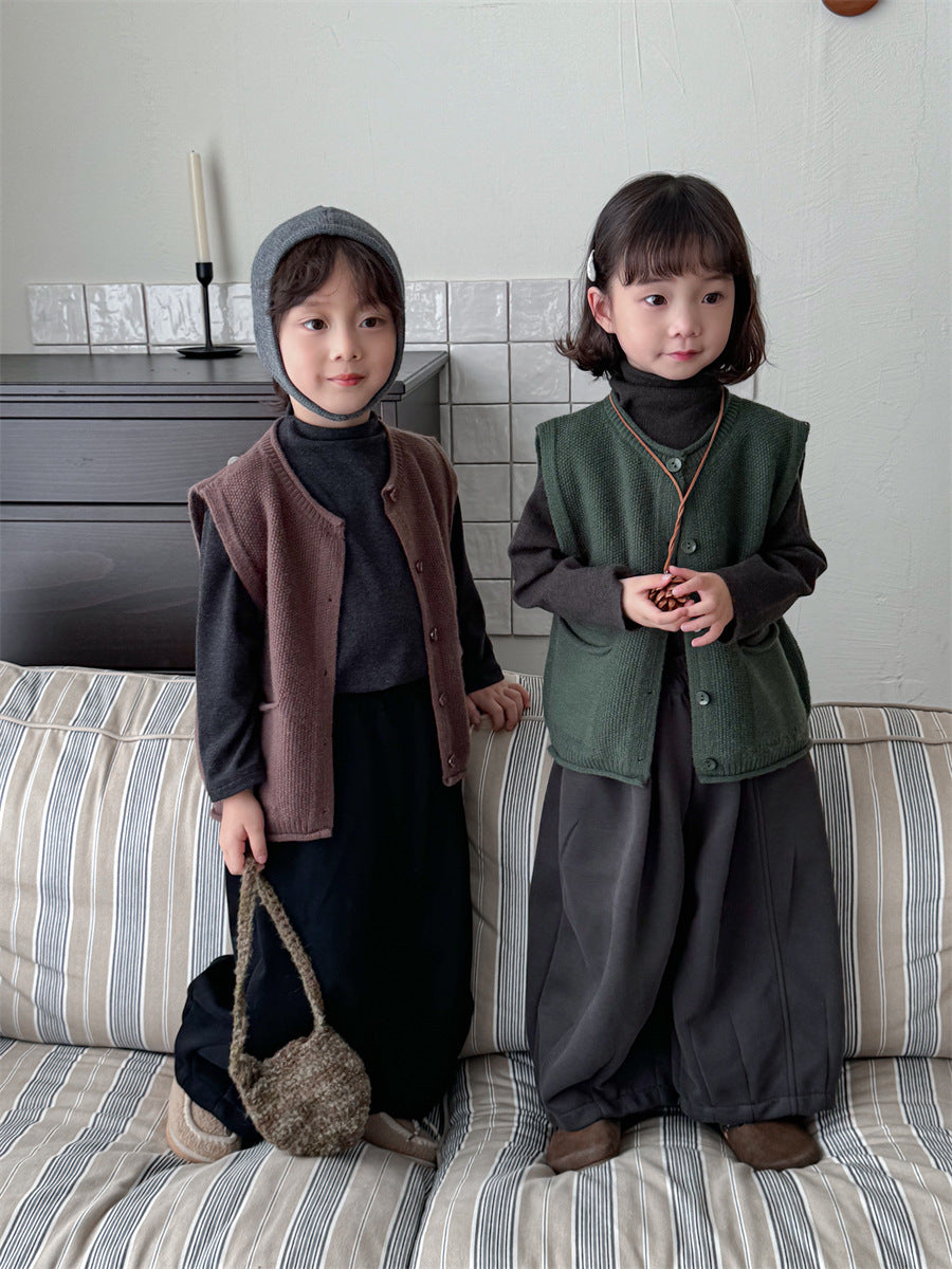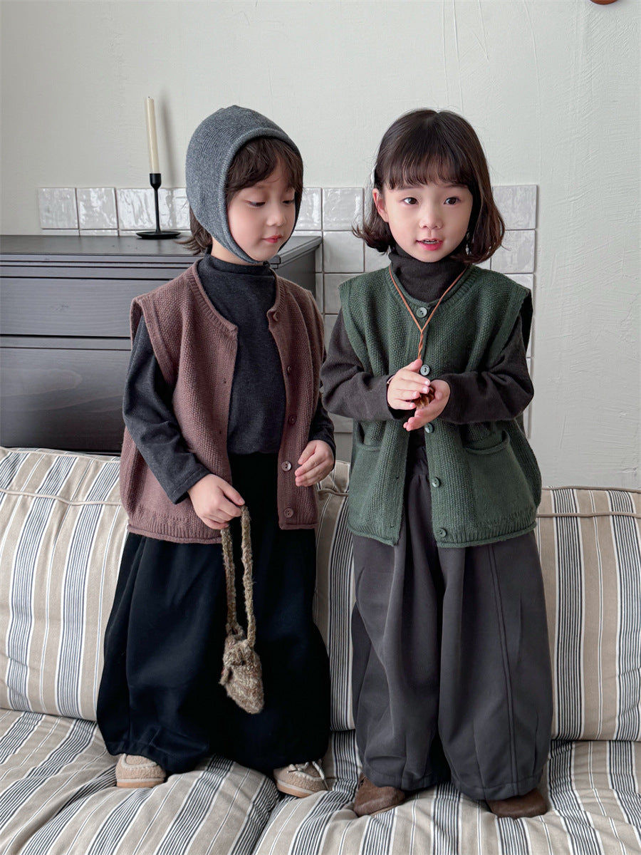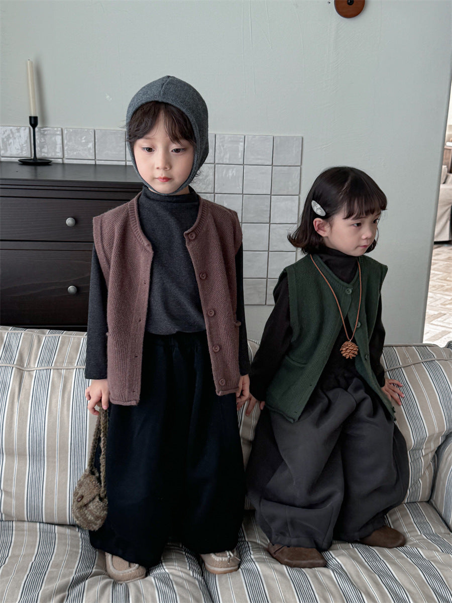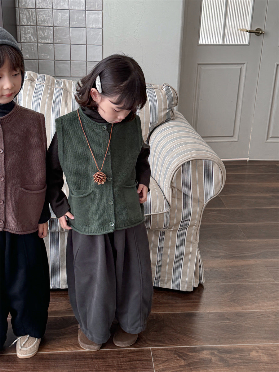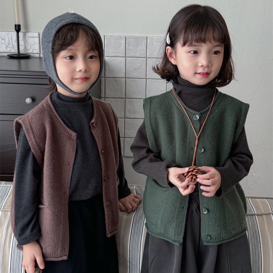 少しゆとりのあるサイズ感のシンプルデザインニットベスト。