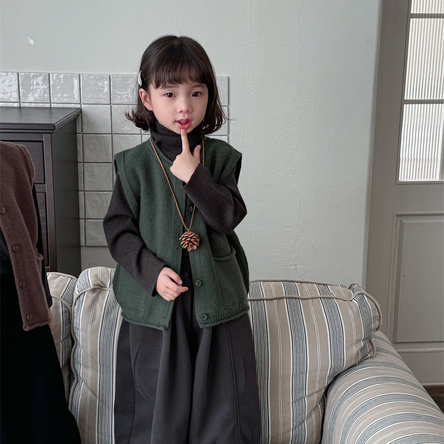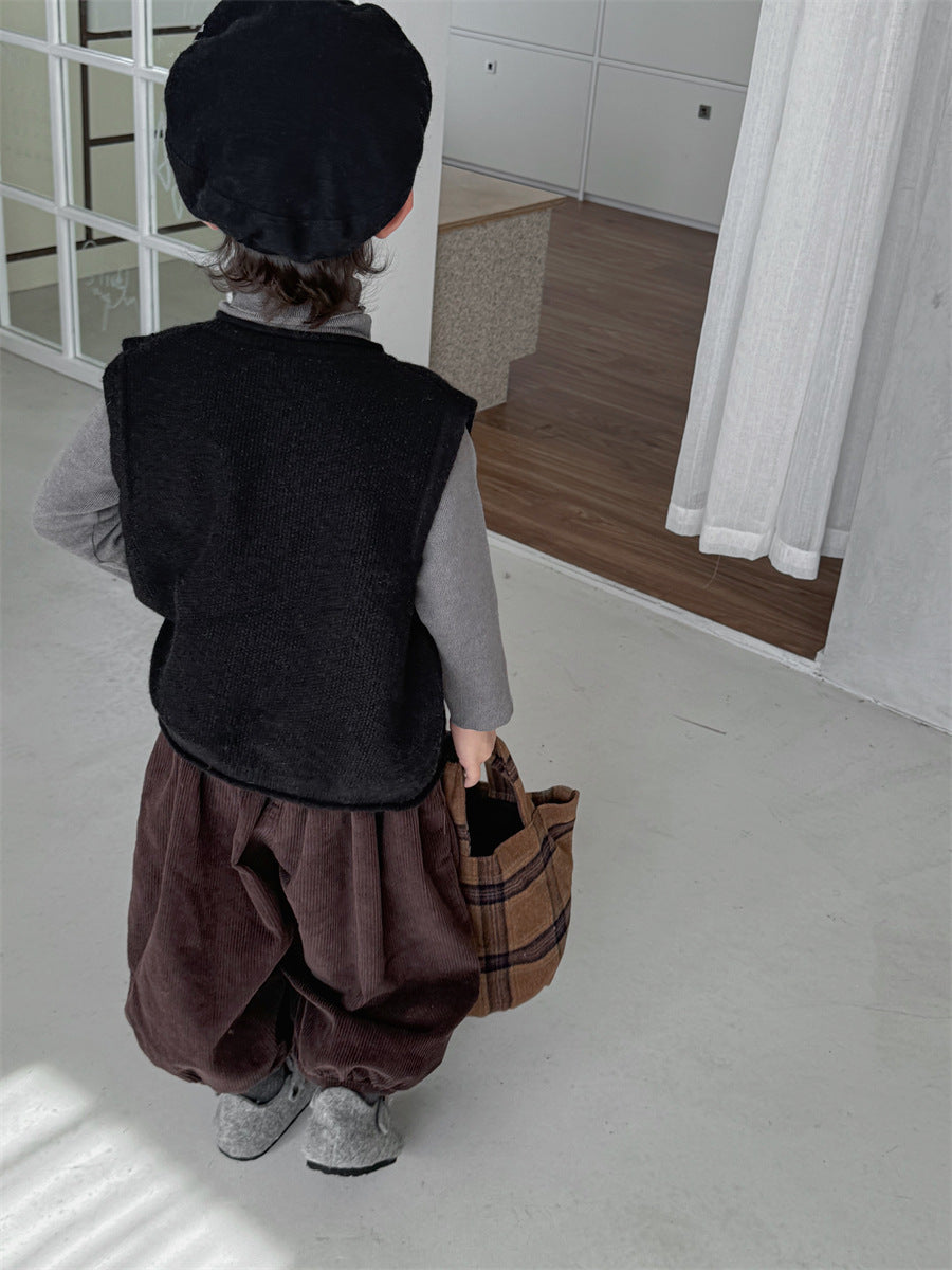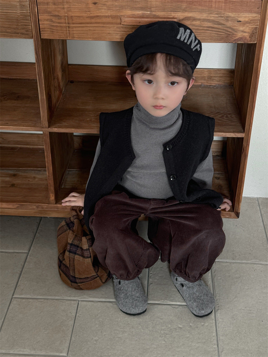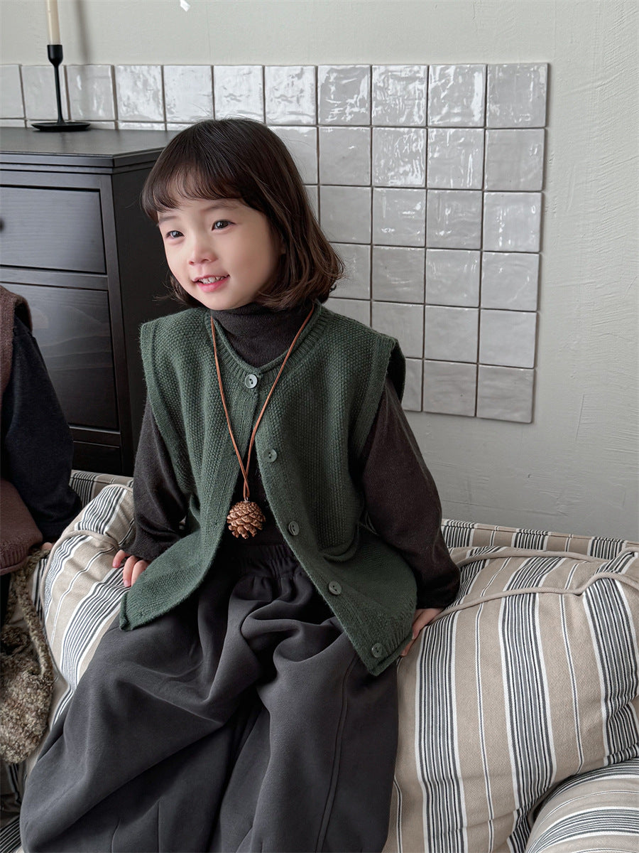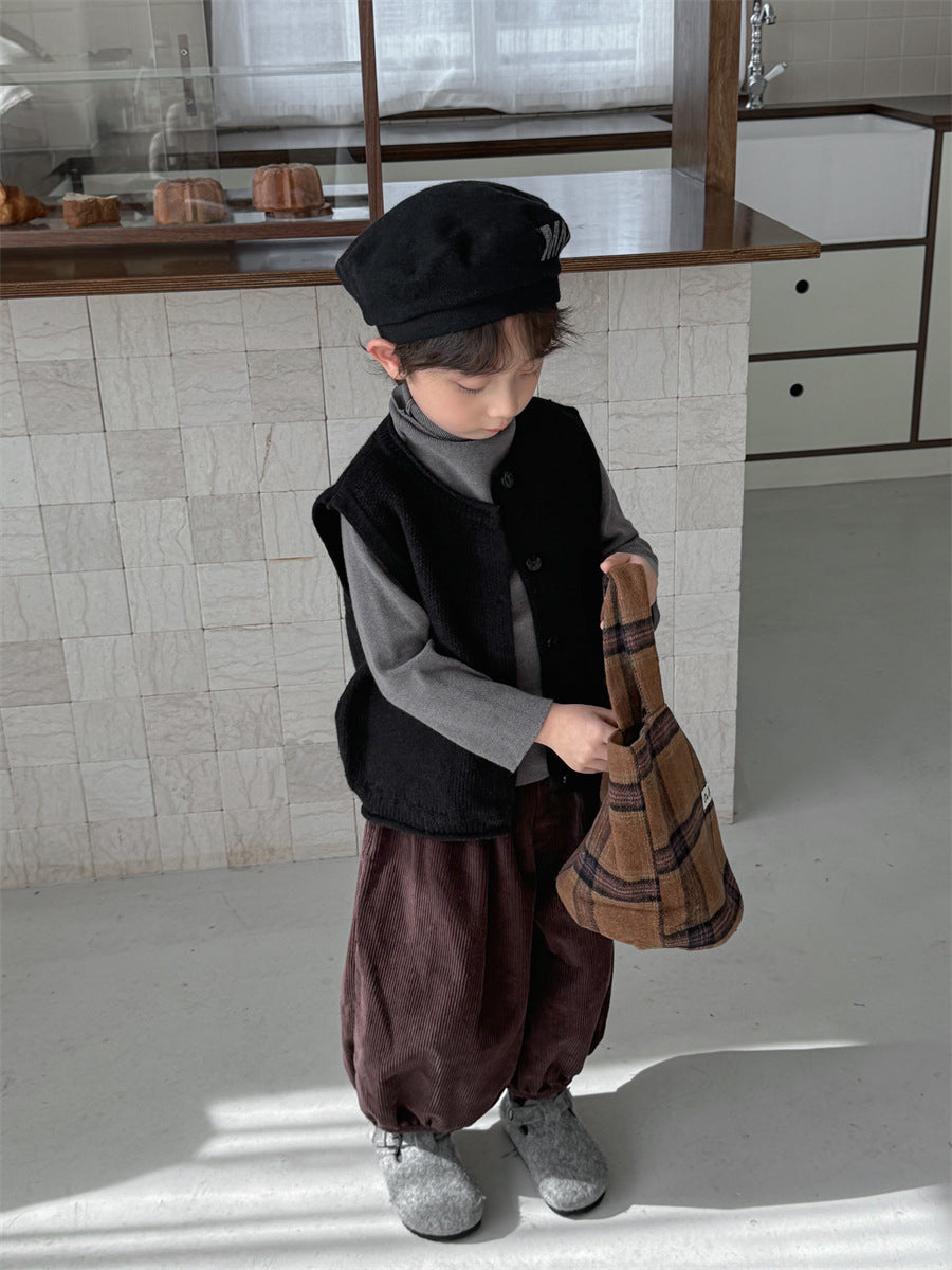 少しゆとりのあるサイズ感のシンプルデザインニットベスト。
