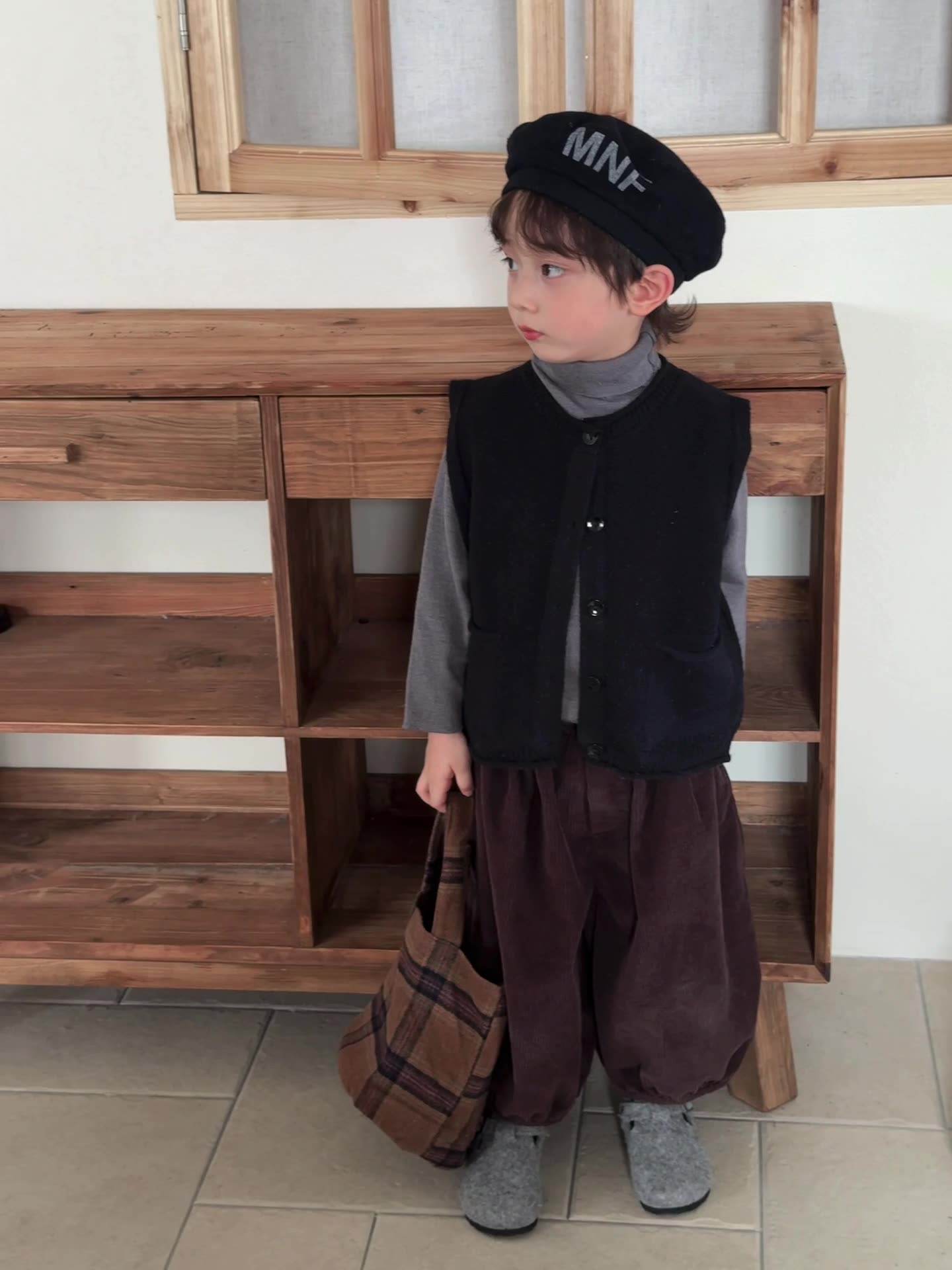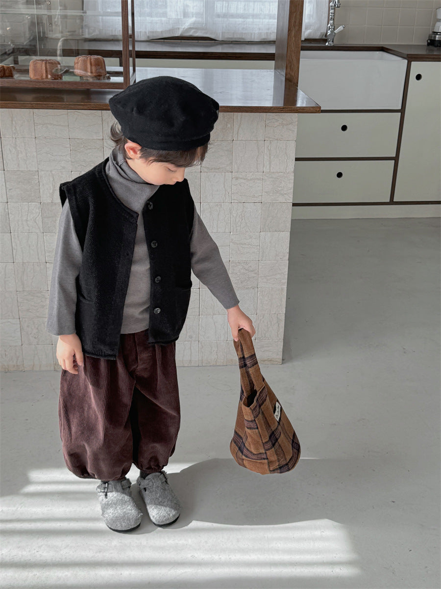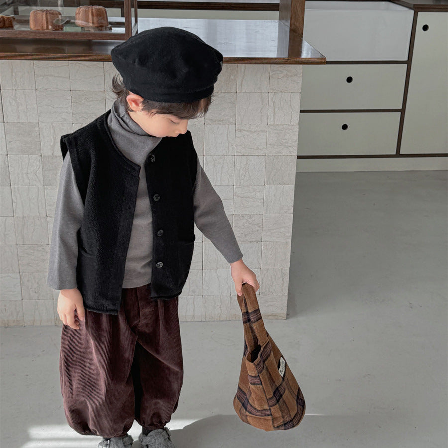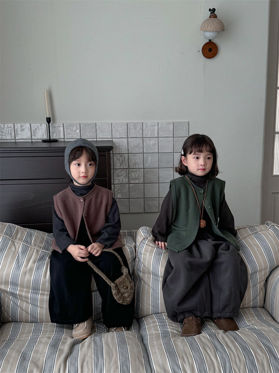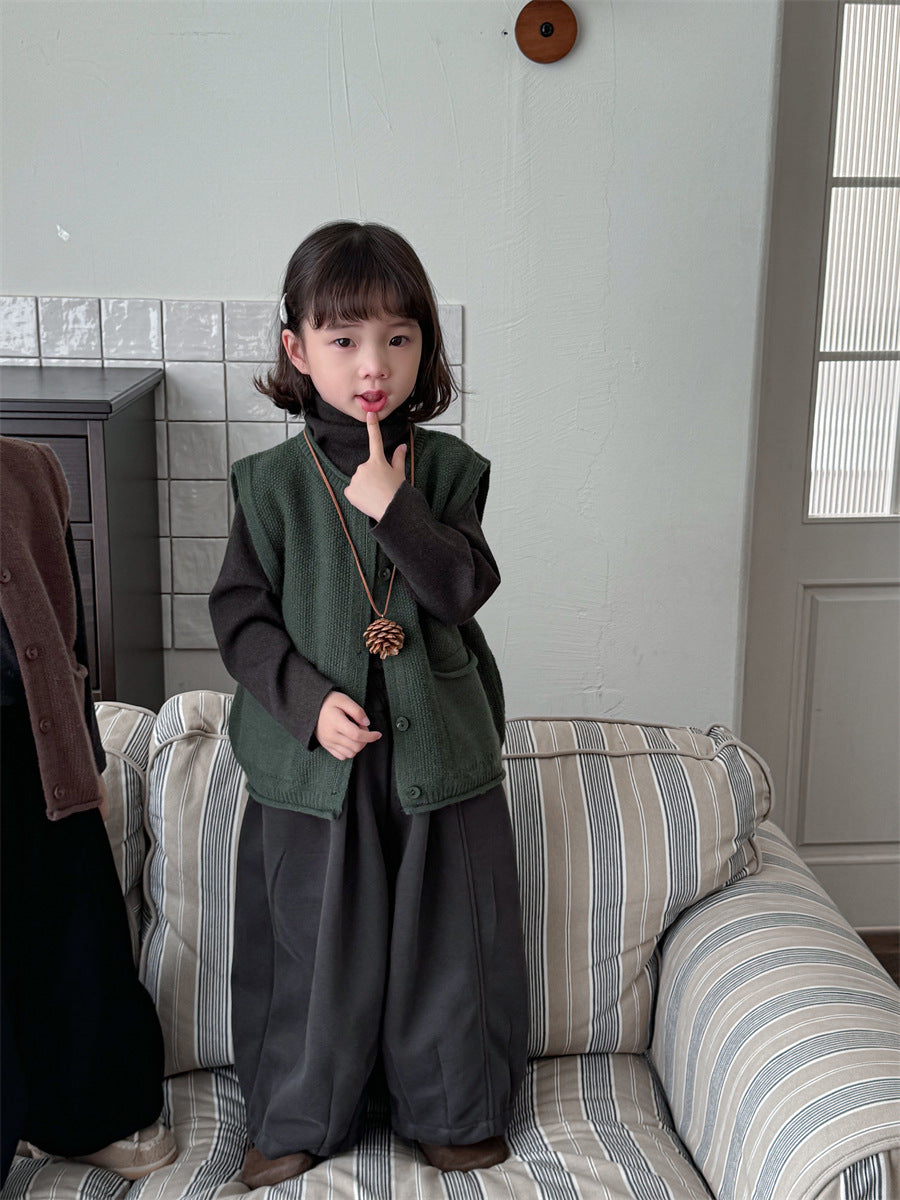 少しゆとりのあるサイズ感のシンプルデザインニットベスト。
