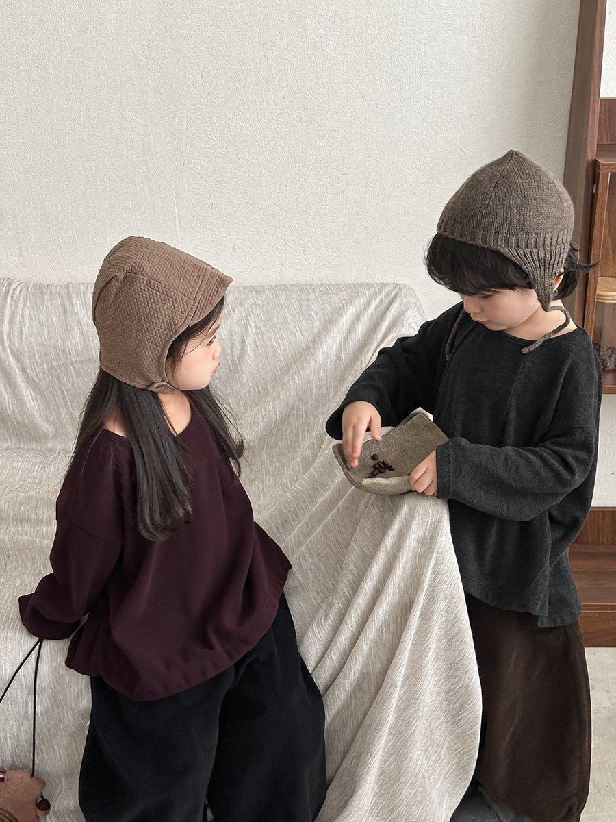 すっきりしたラウンドネックが着脱ラクラク、子ども一人でも簡単に着られる設計です。