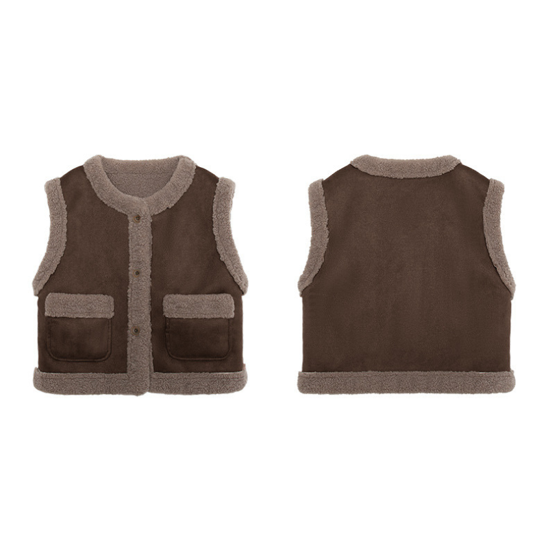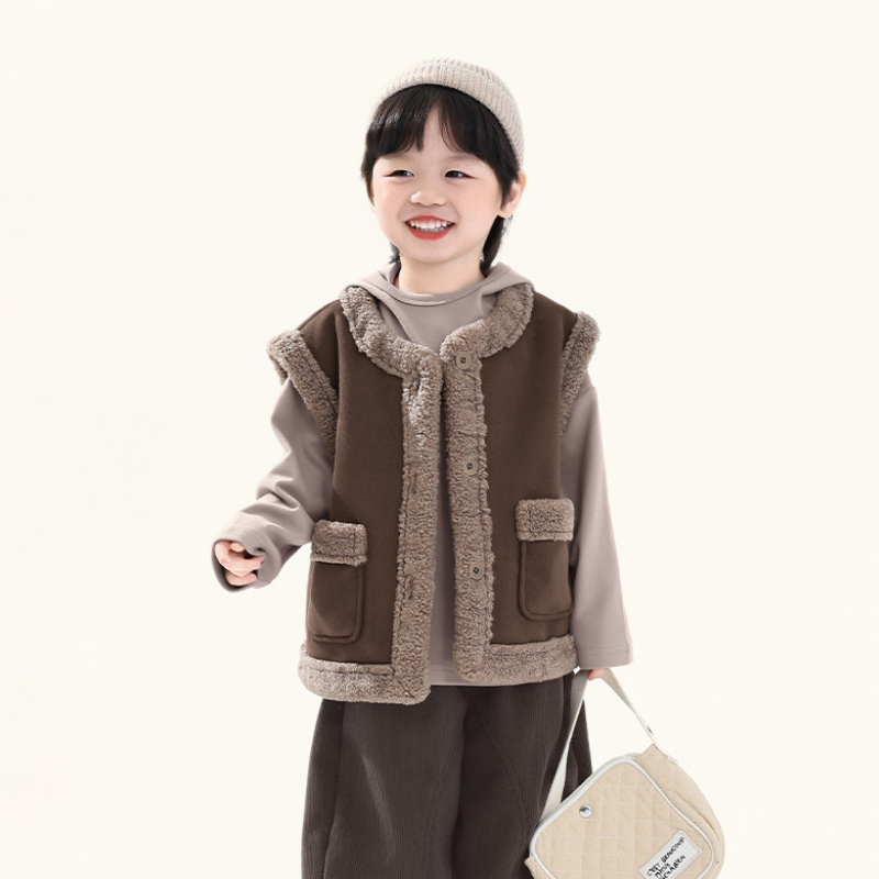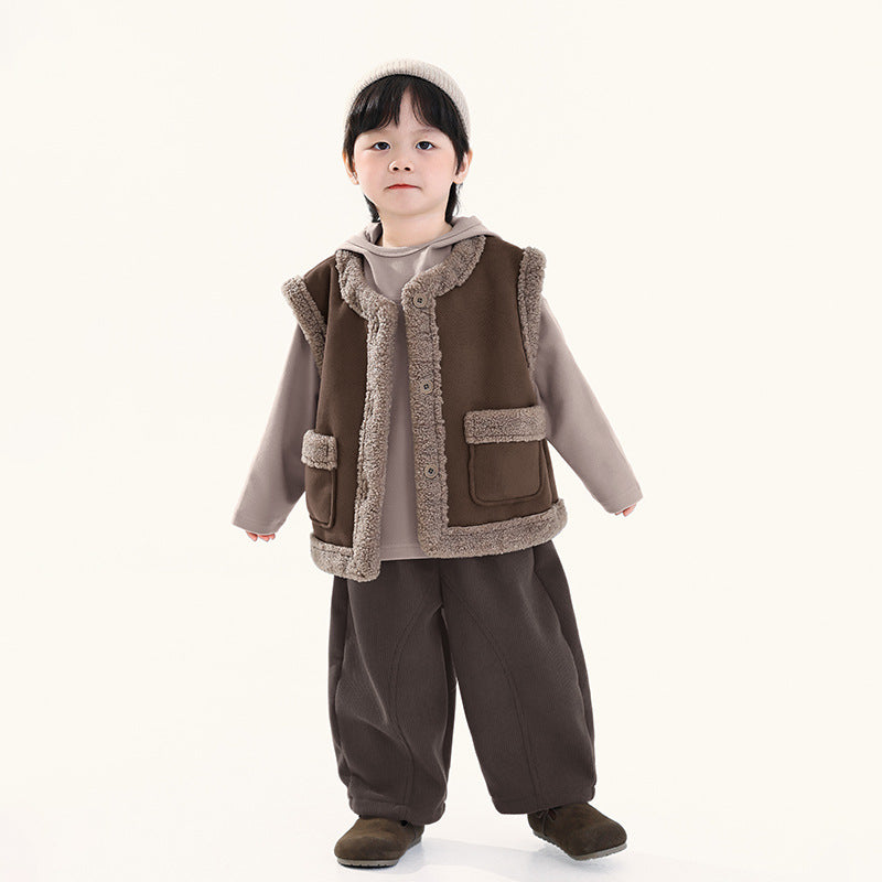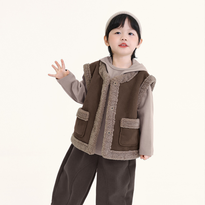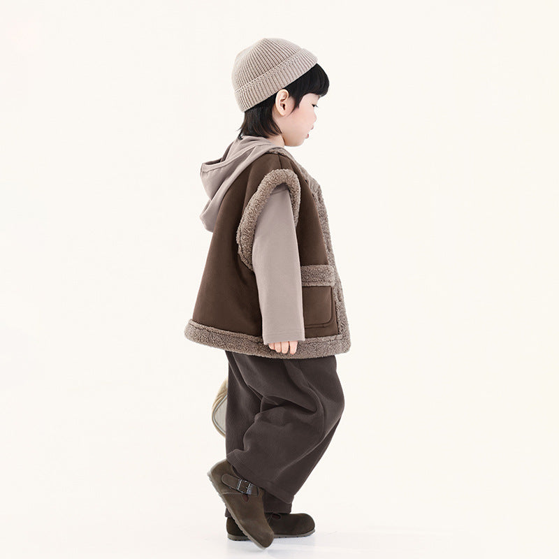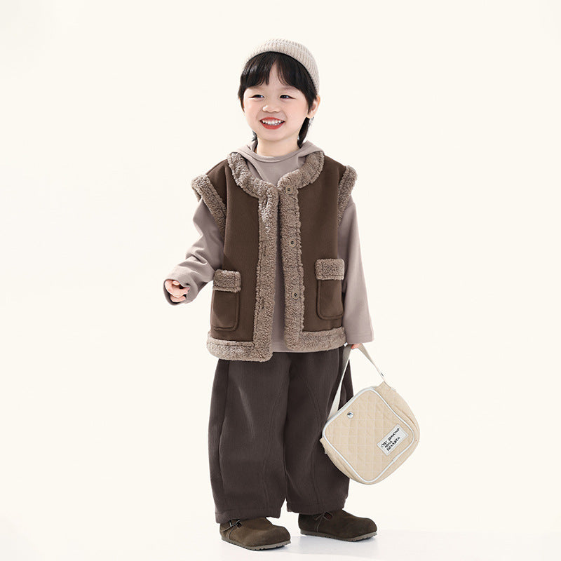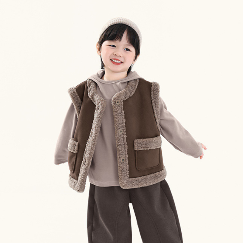 見た目から温もりを感じる、もこもこシープボア縁取りのほっこりベスト。