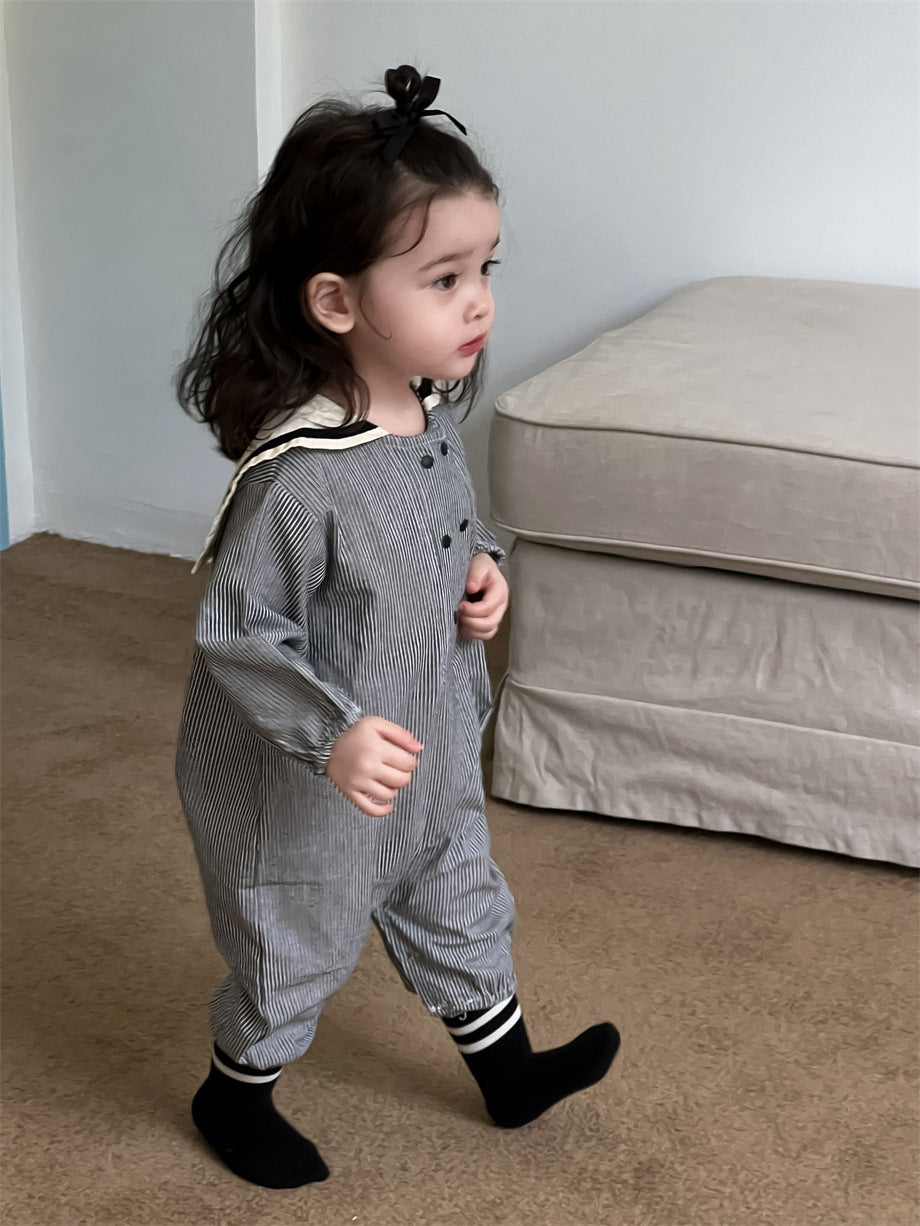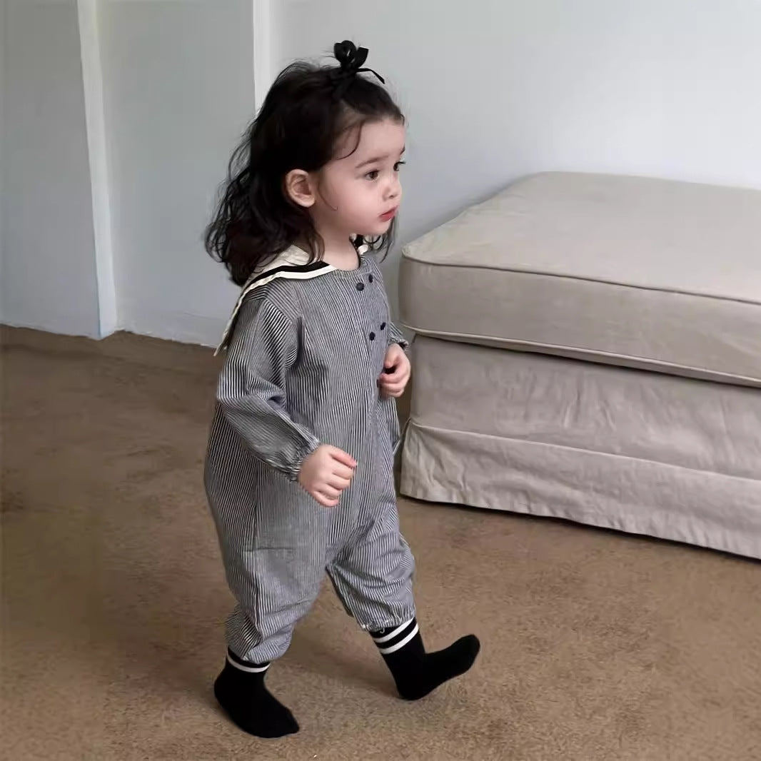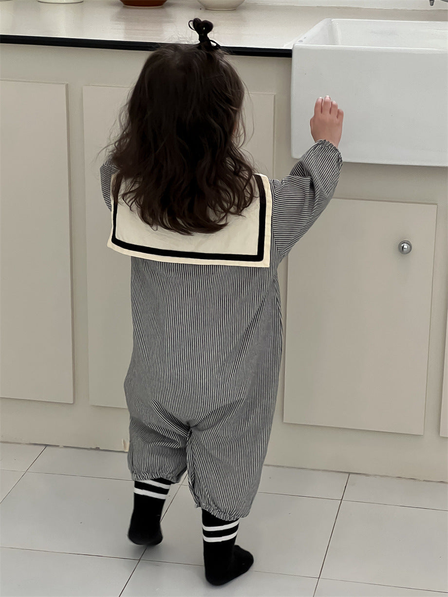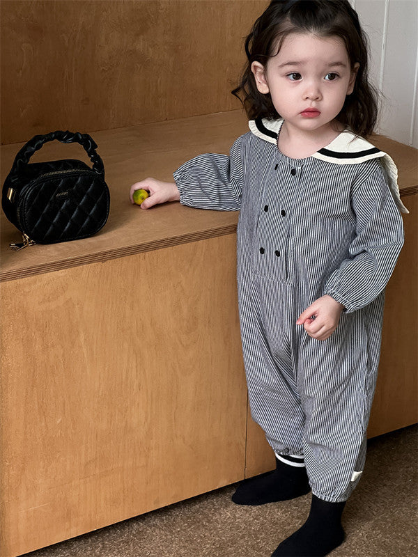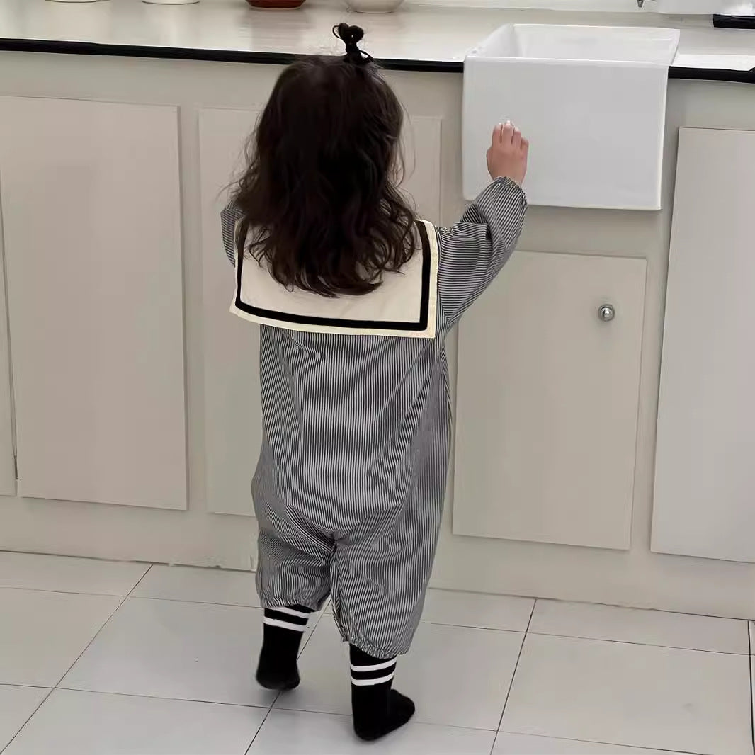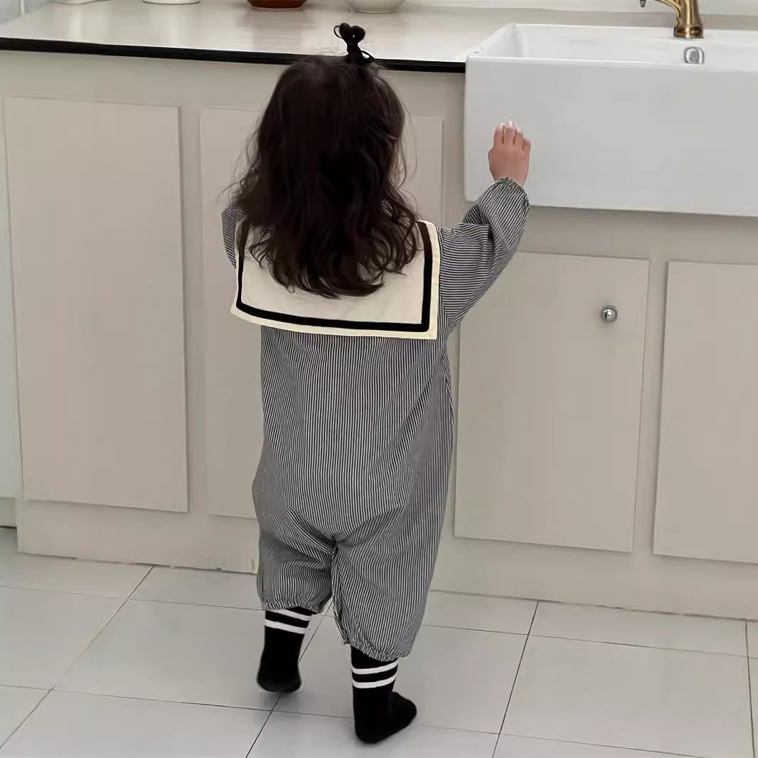 ストライプ柄セーラーカラーカバーオール