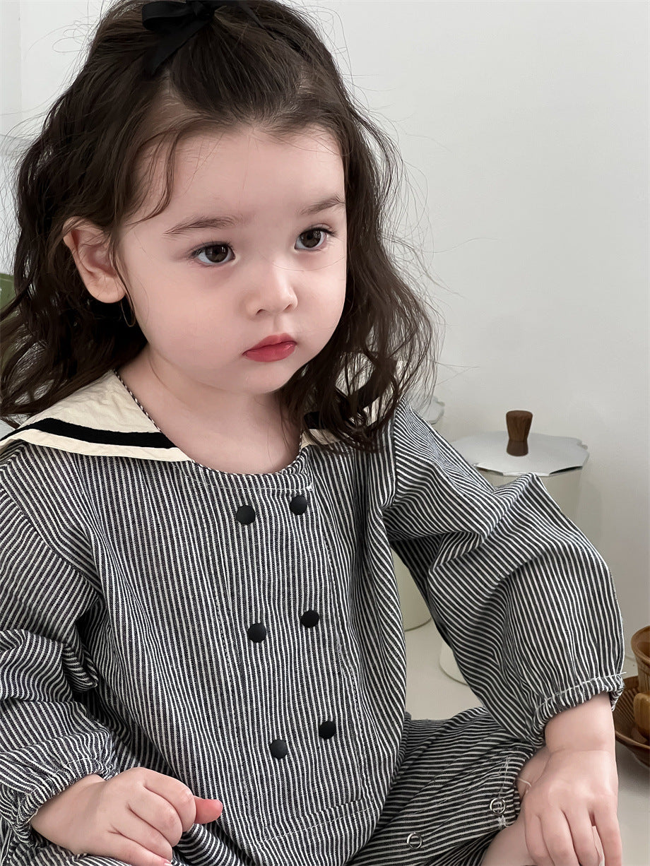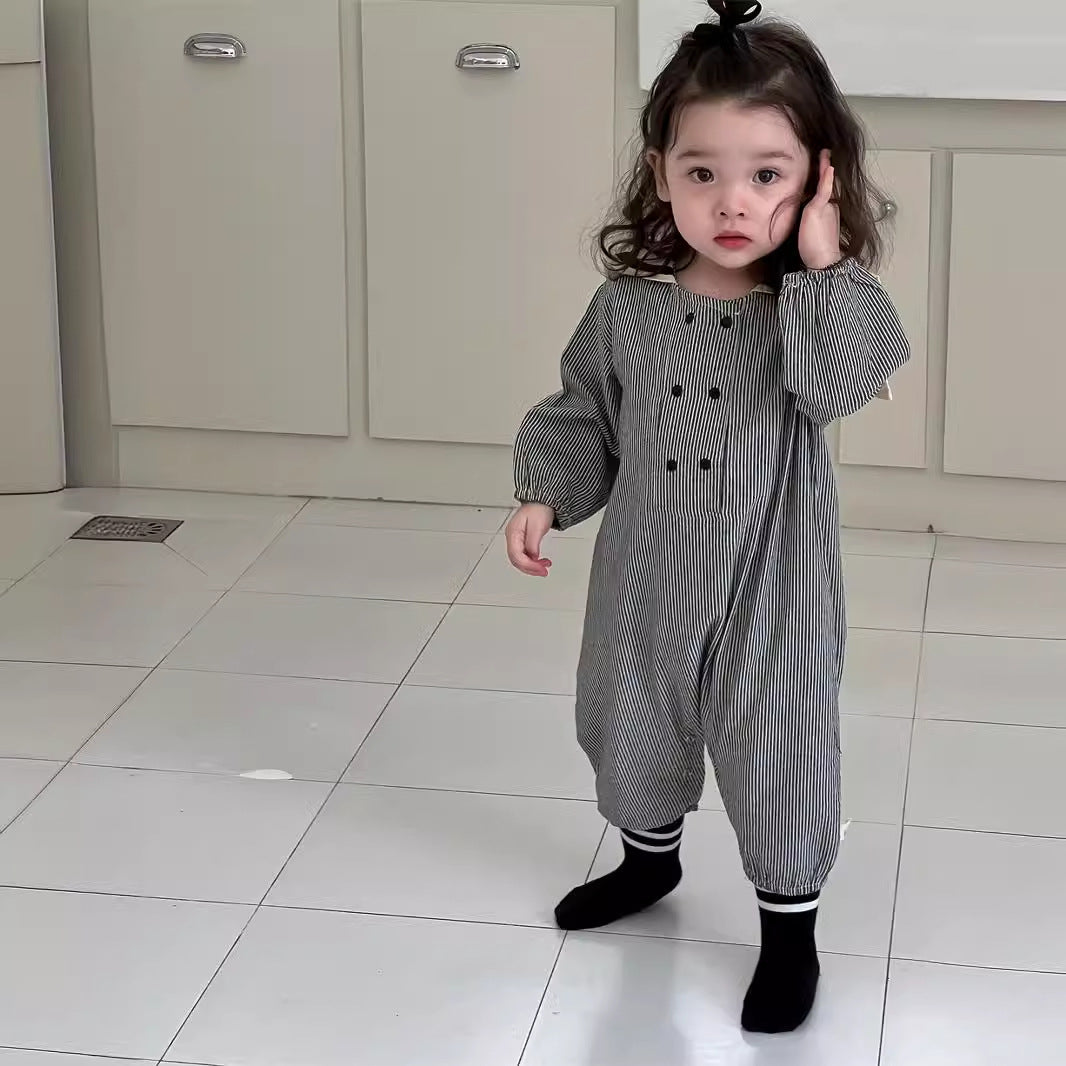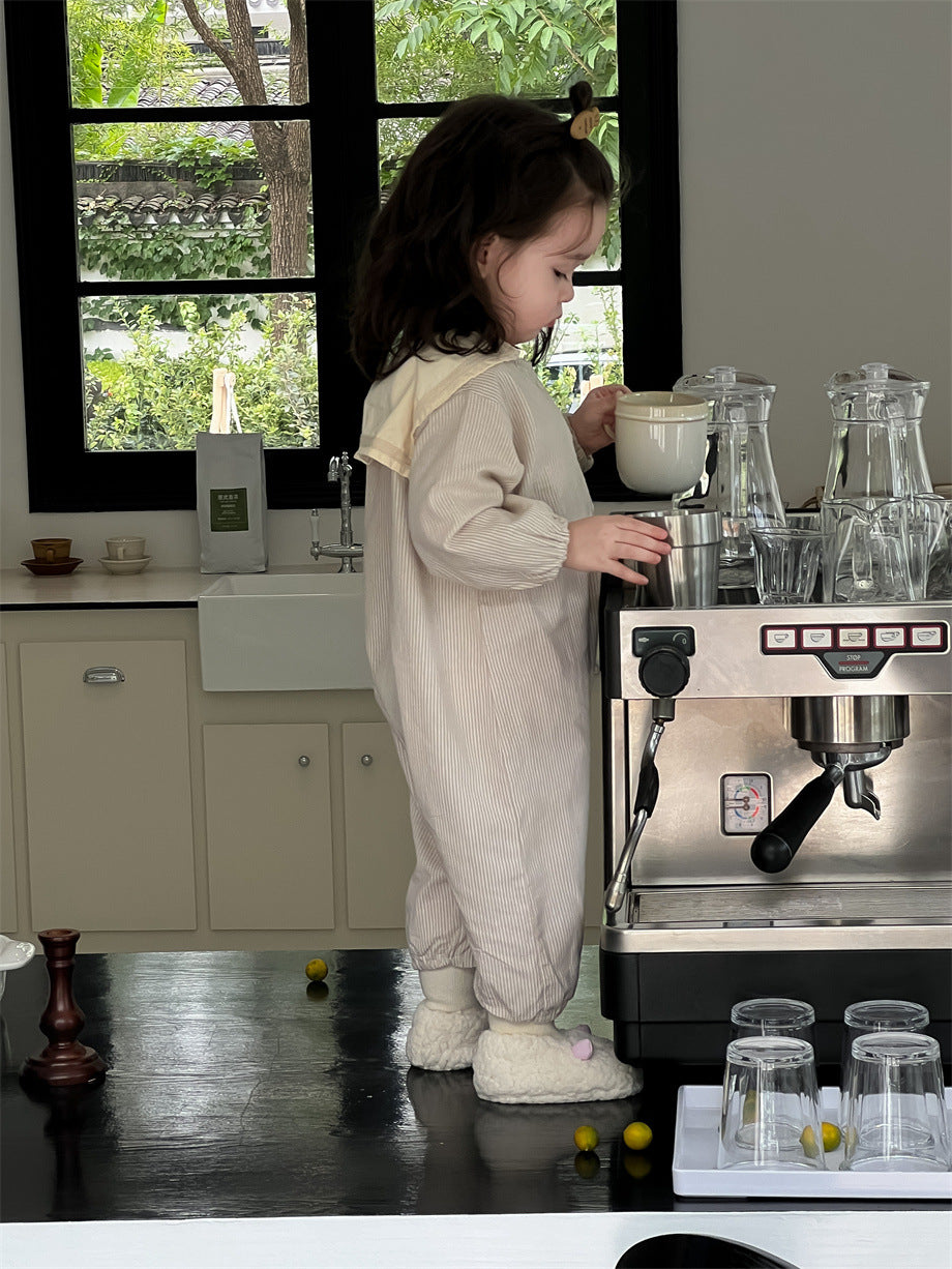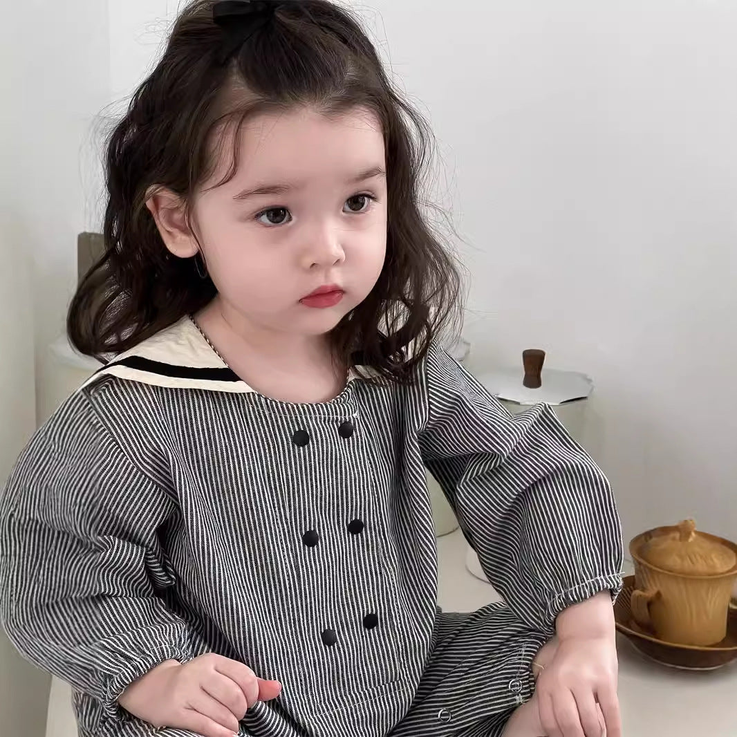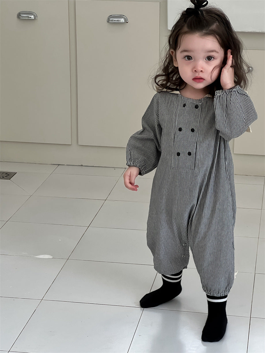 ストライプ柄セーラーカラーカバーオール