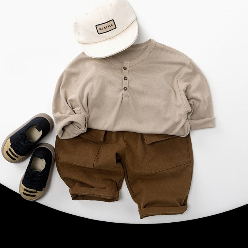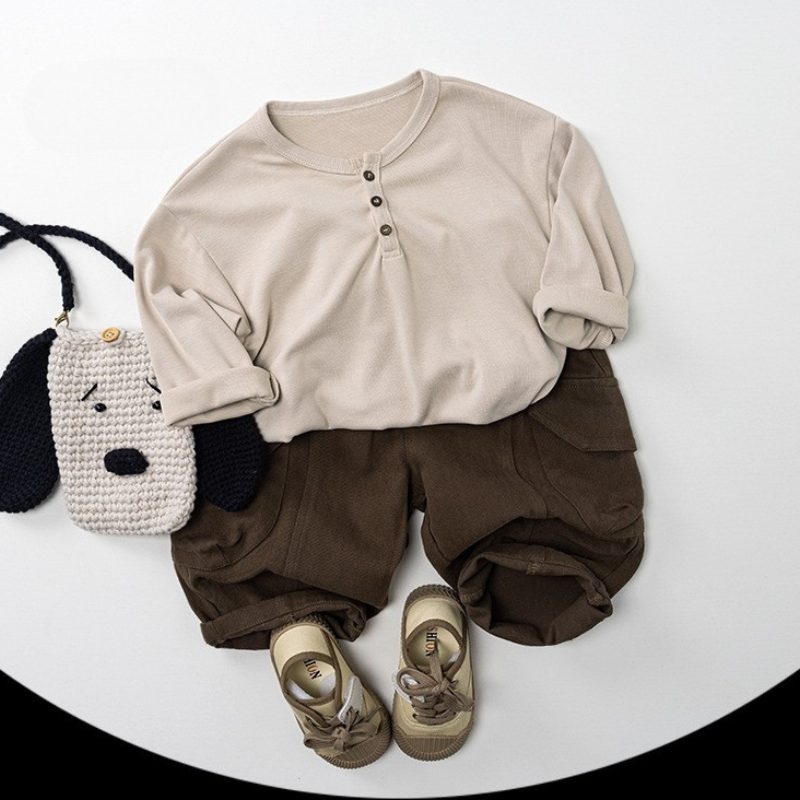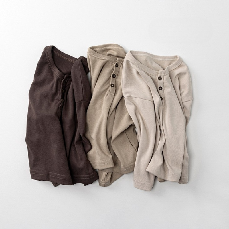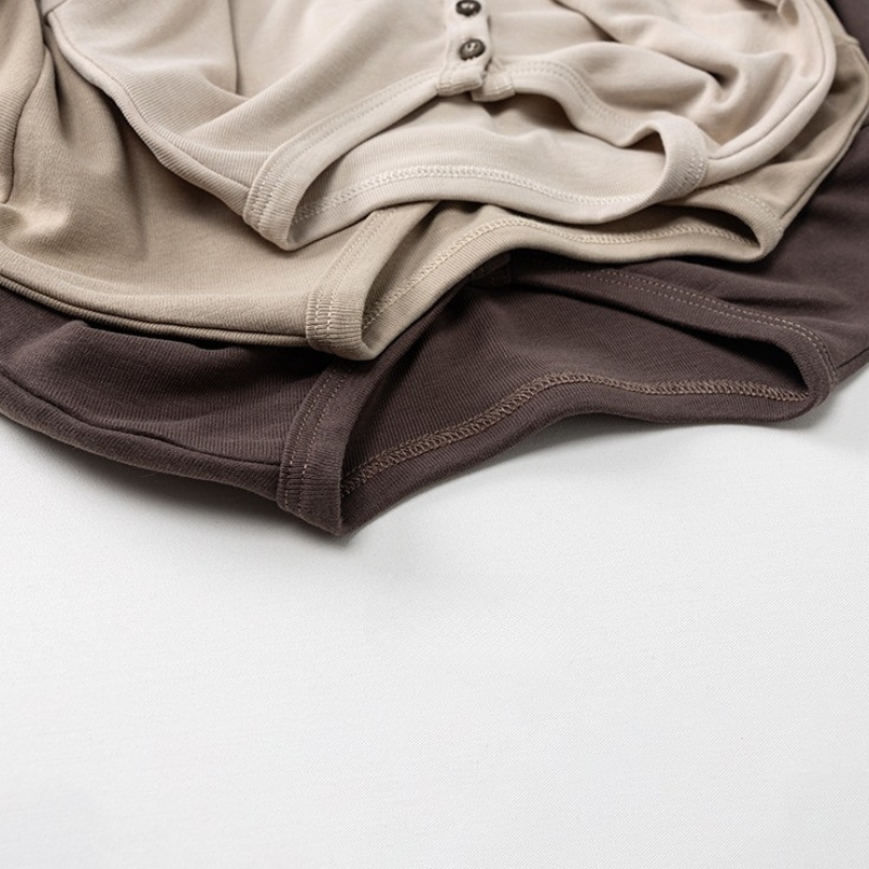 伸縮性のある柔らかな綿素材とおしゃれな3ボタンデザインが特徴的な、男女兼用のベーシックインナー。