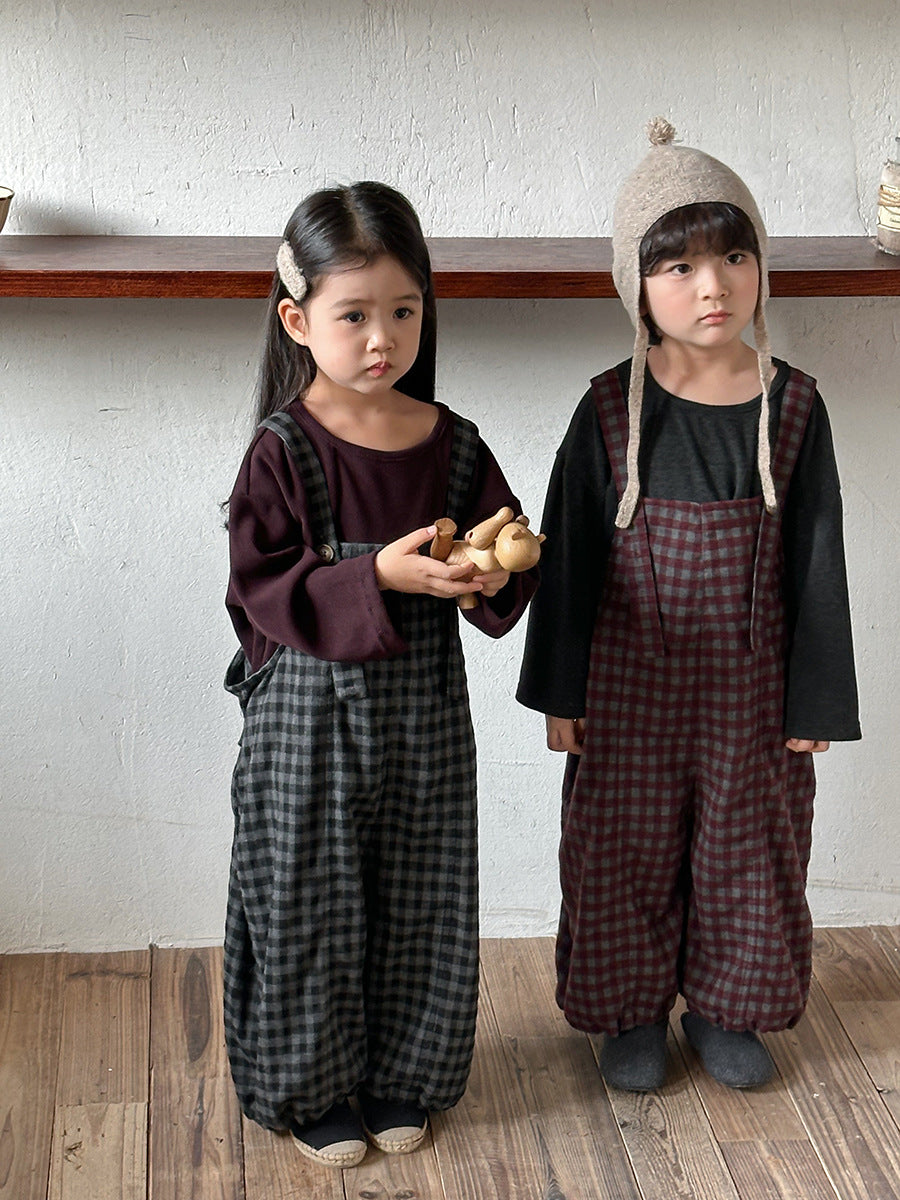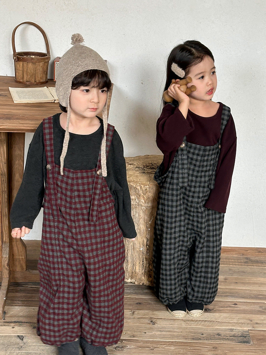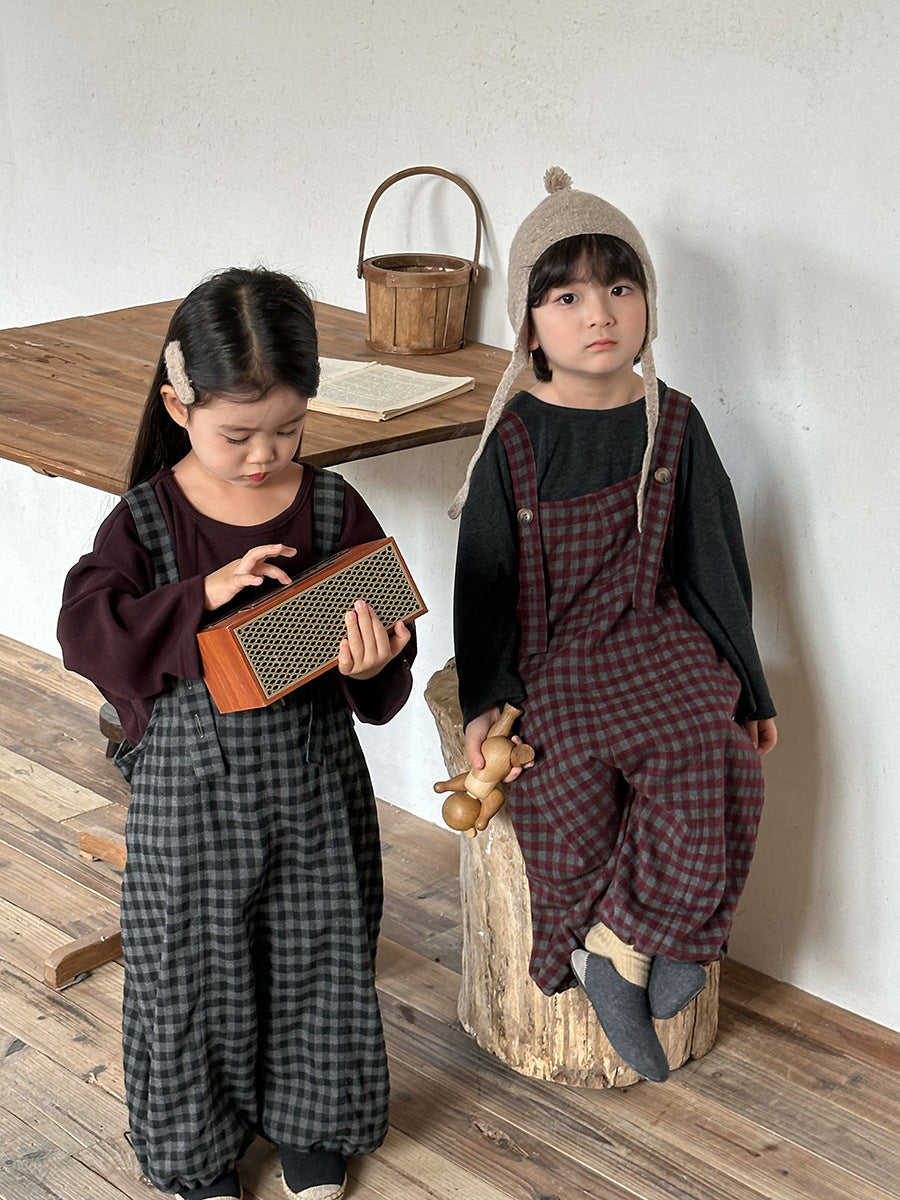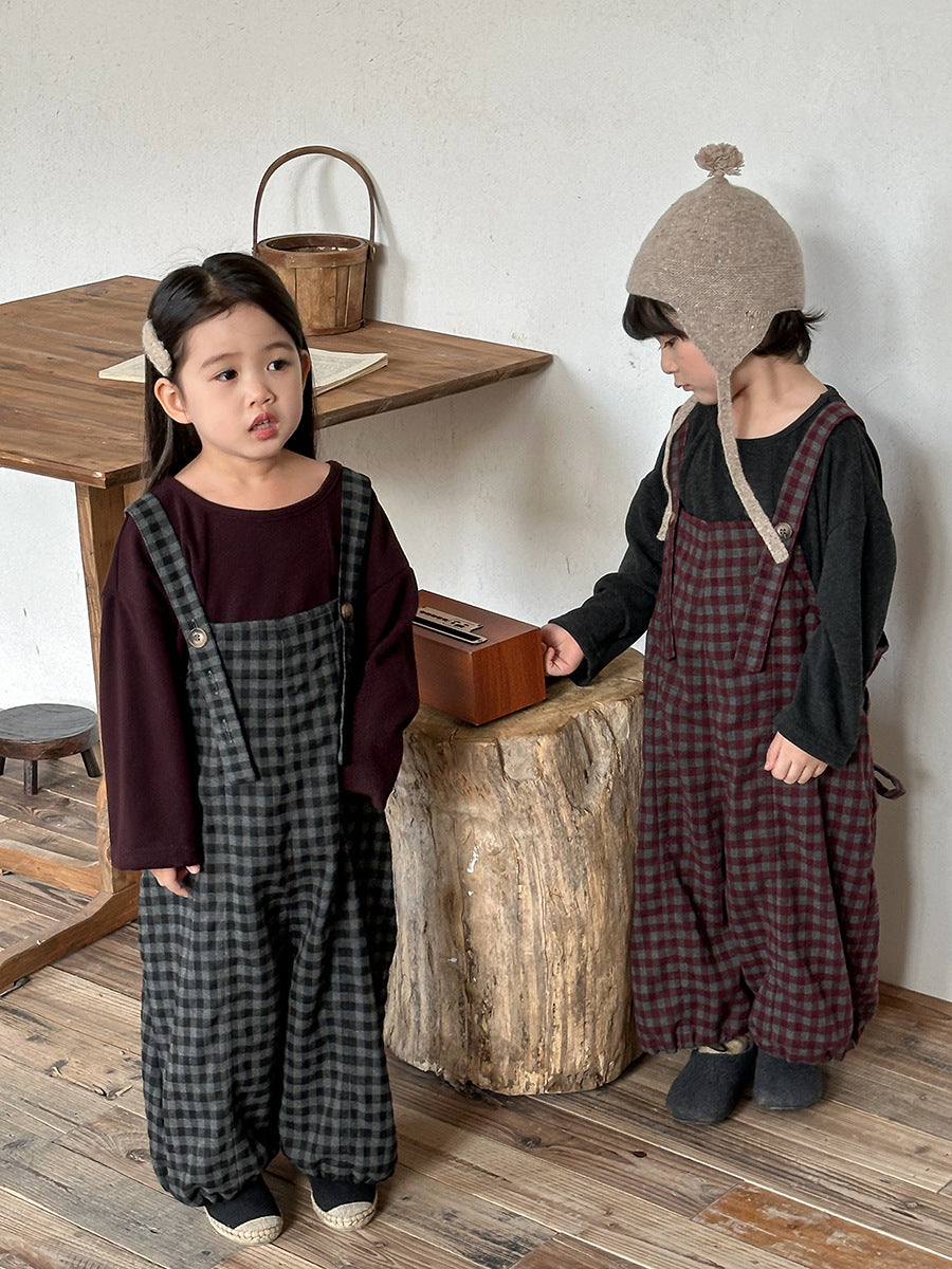 時代を超えて愛されるチェック柄と、動きやすいゆったりワイドシルエットが魅力のオーバーオール。