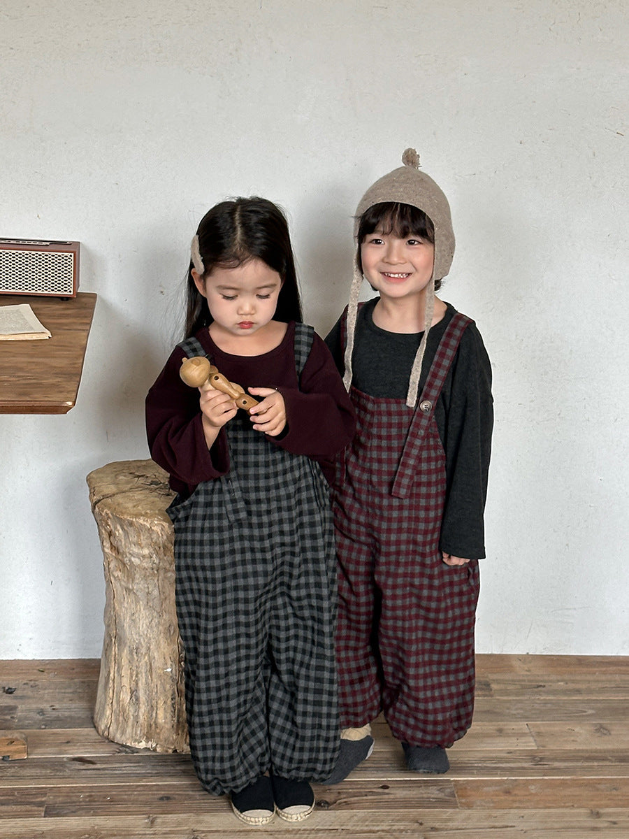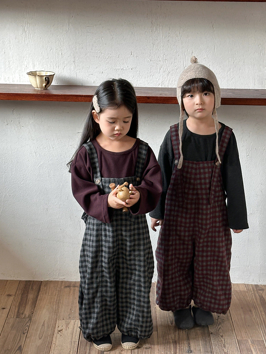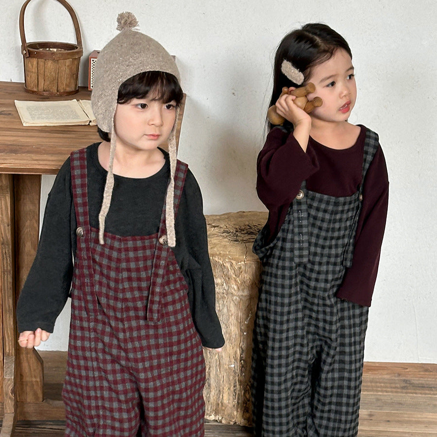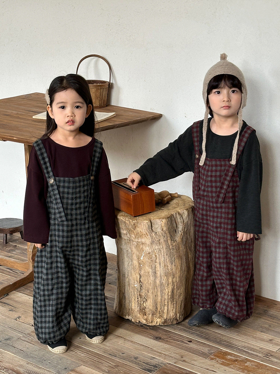 時代を超えて愛されるチェック柄と、動きやすいゆったりワイドシルエットが魅力のオーバーオール。