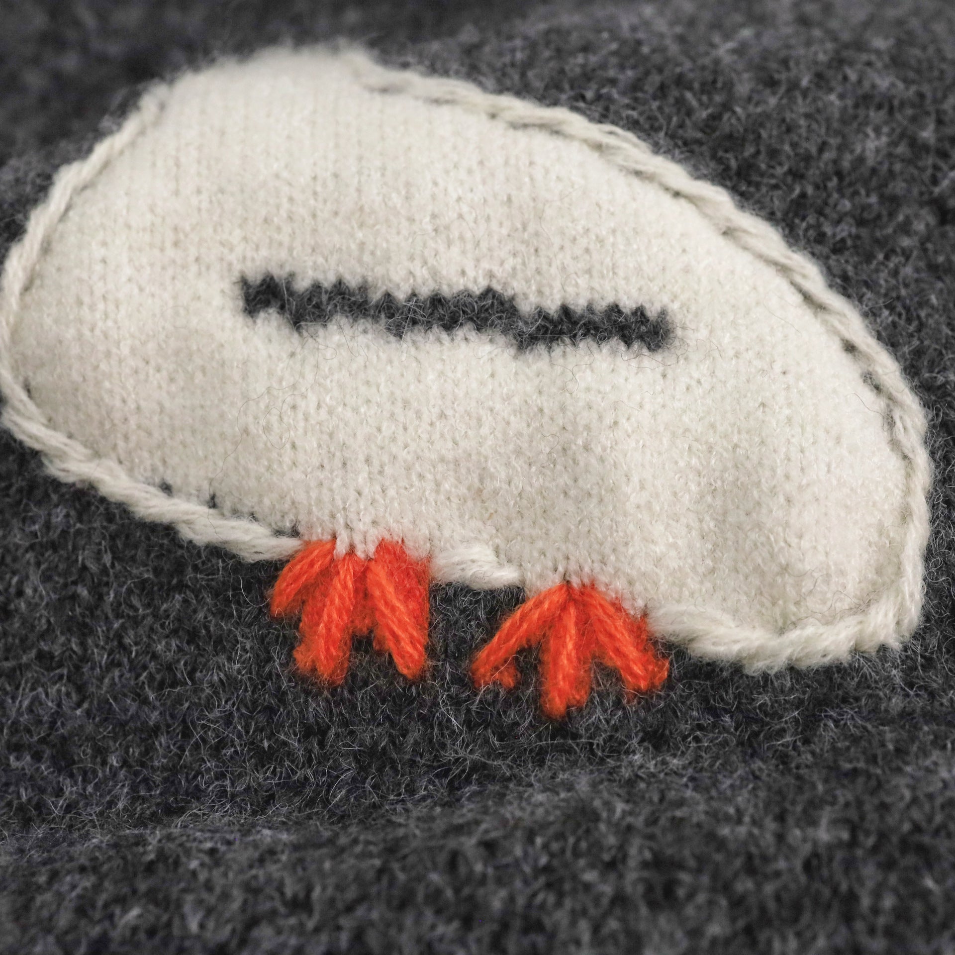 上質なグレーに、手縫いのような風合いの白いガチョウモチーフをワンポイントにあしらい。