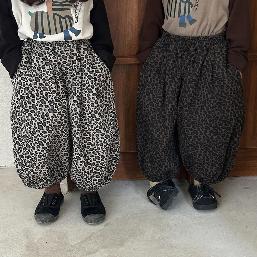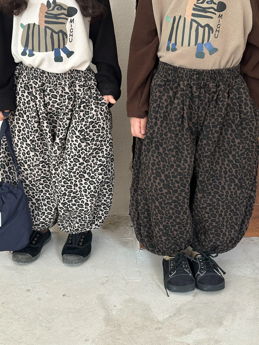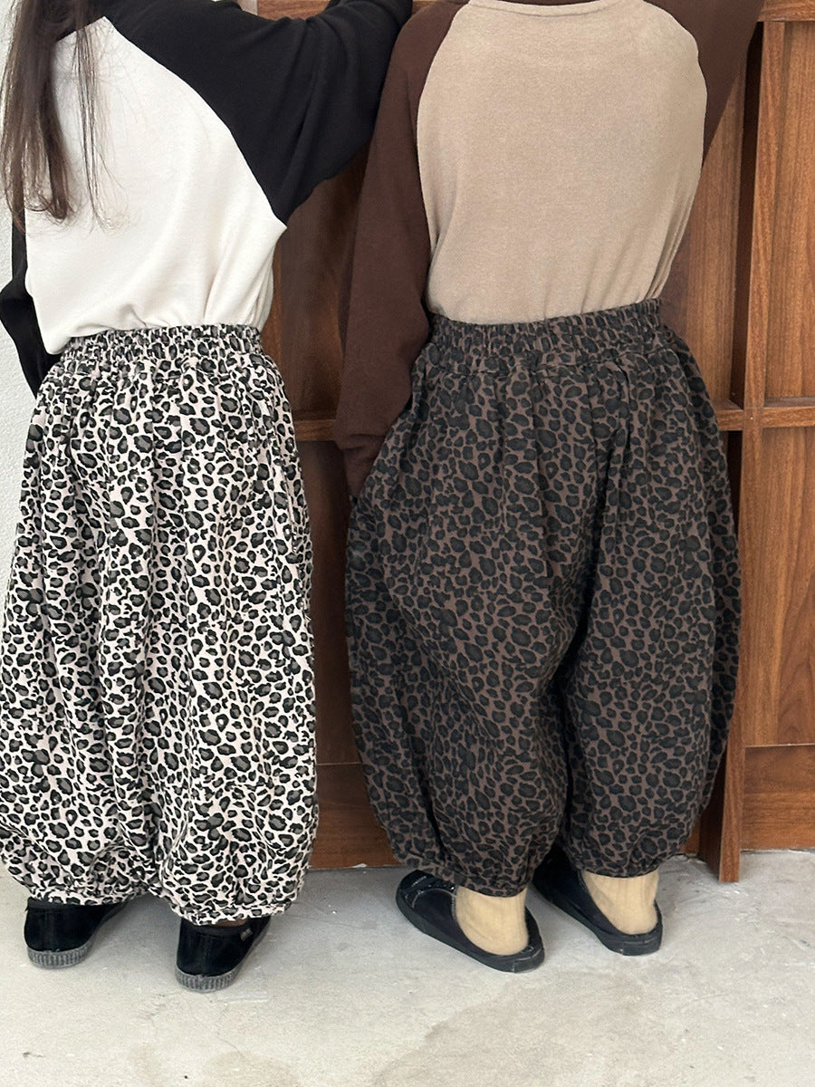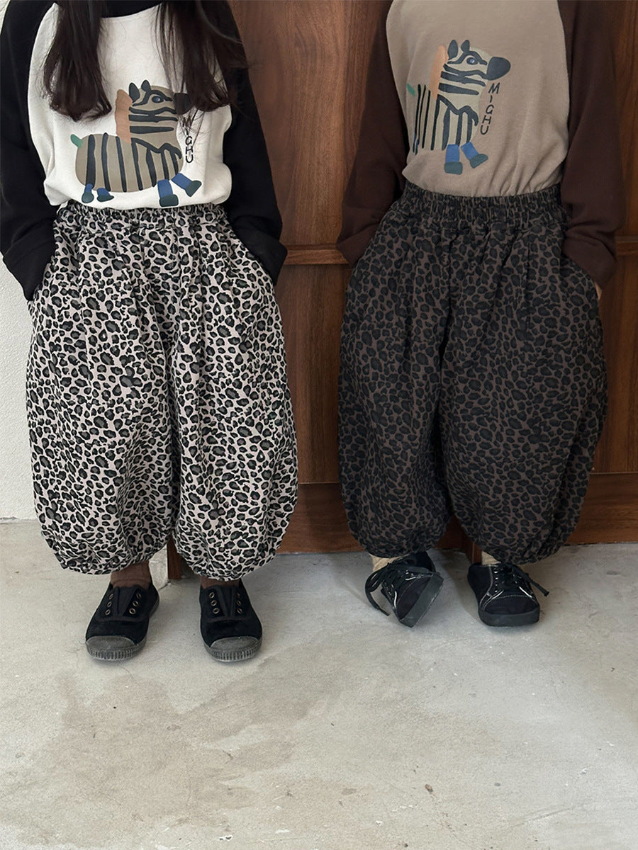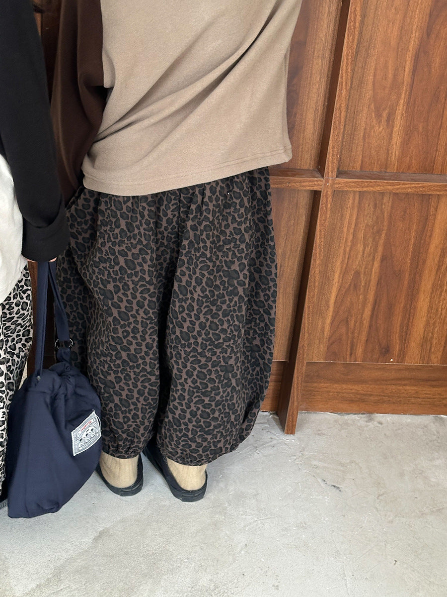 どこかレトロな雰囲気が漂う、個性的なヒョウ柄バルーンパンツ。