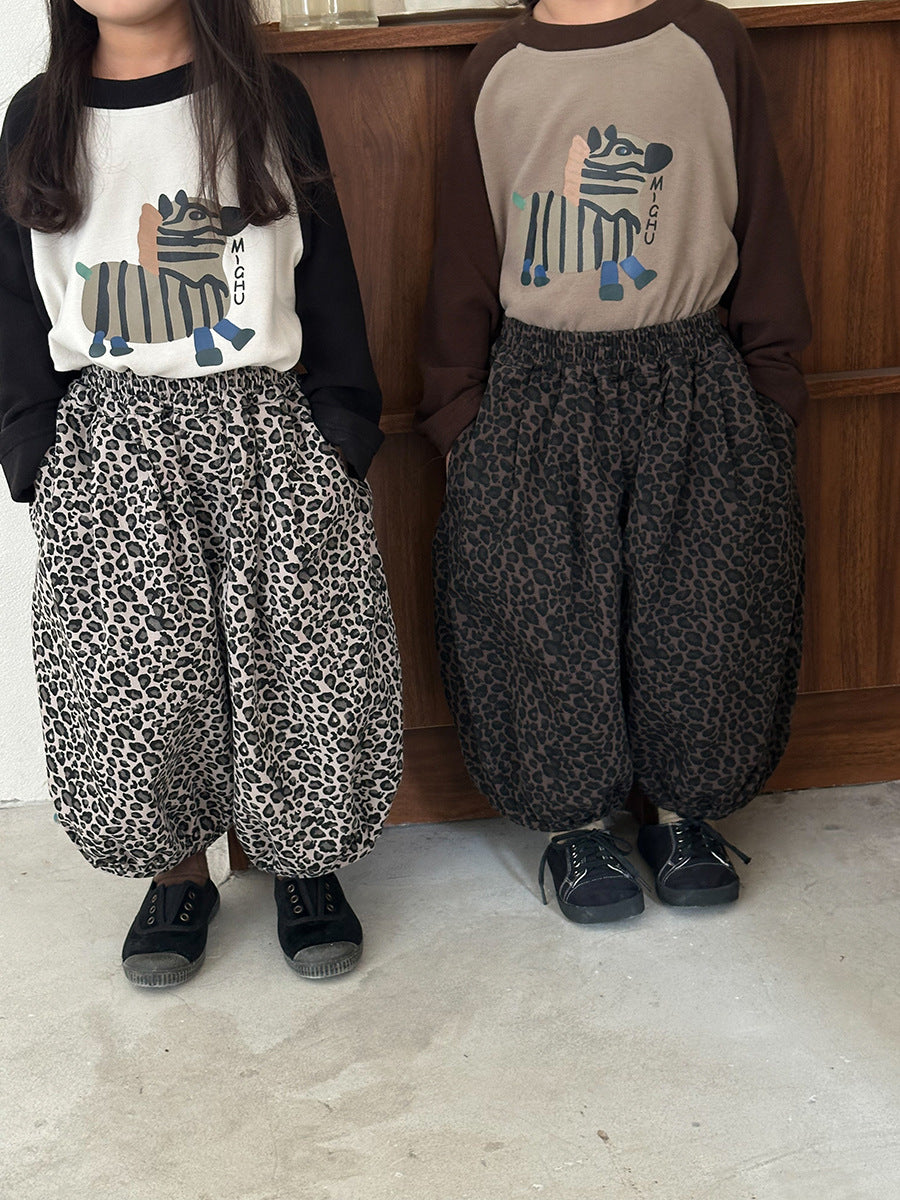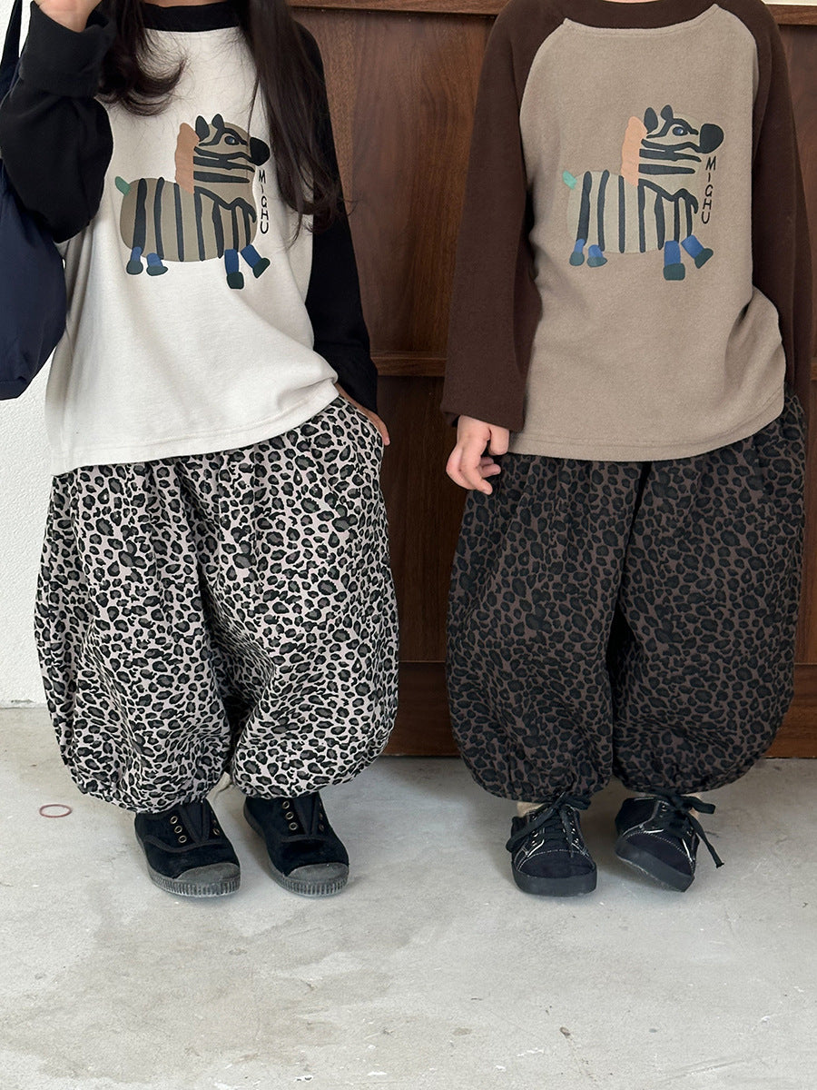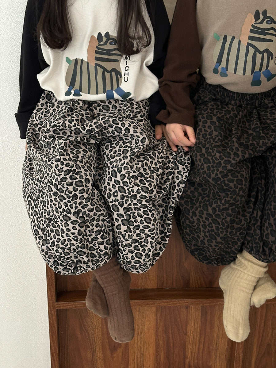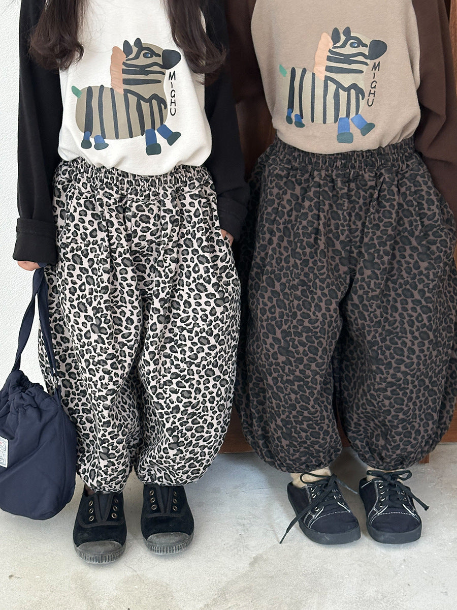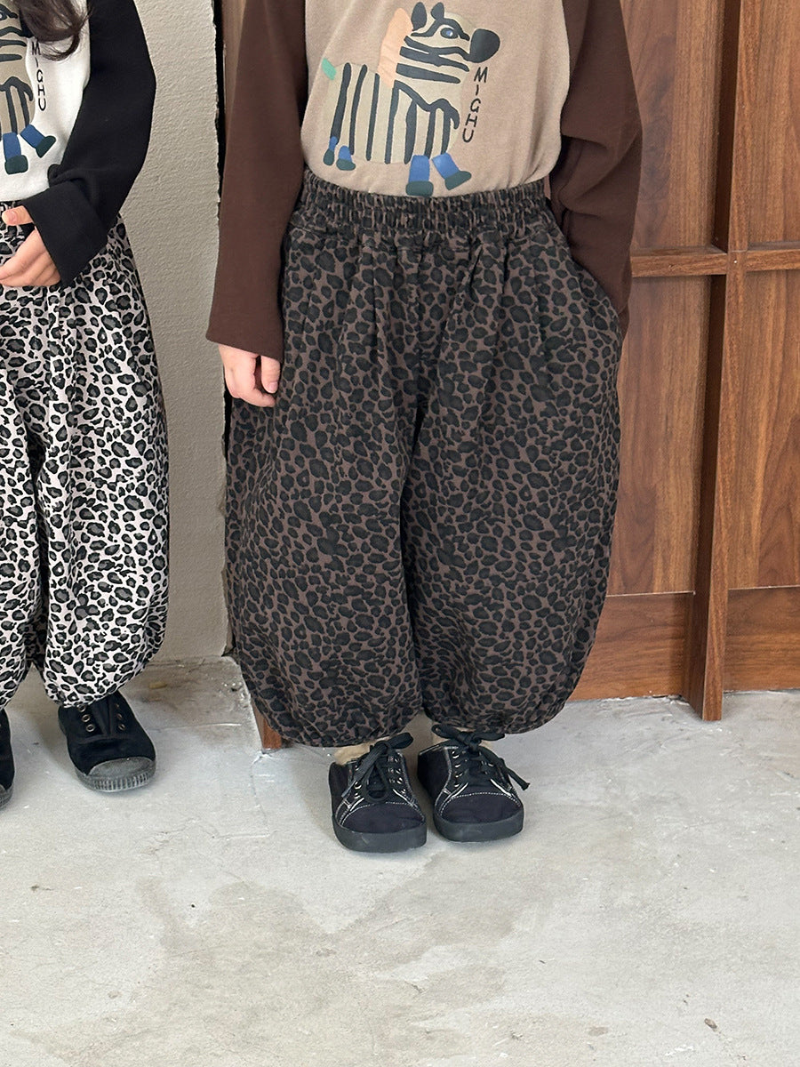 どこかレトロな雰囲気が漂う、個性的なヒョウ柄バルーンパンツ。