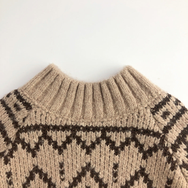 ざっくりとした柄編みがレトロな雰囲気でトレンド感たっぷり。