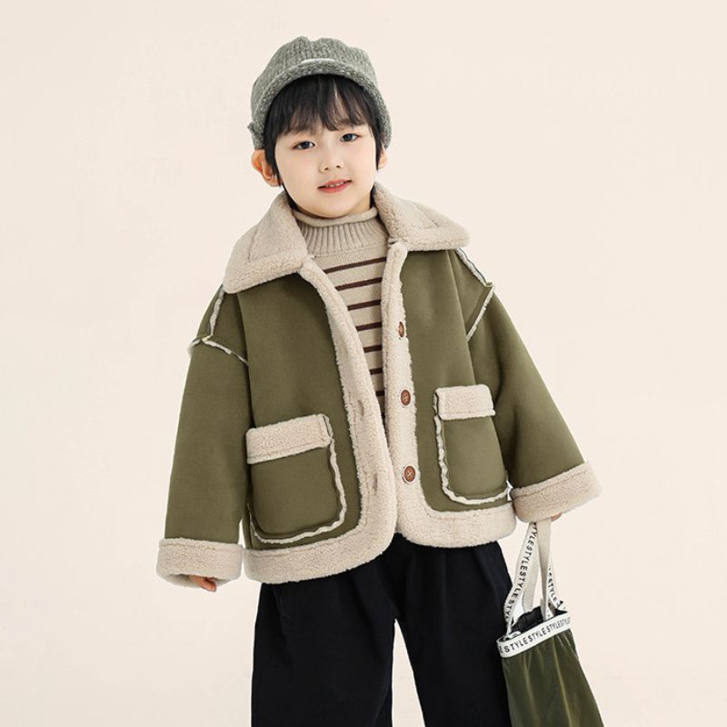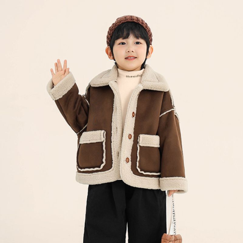 パッチワーク調のボアパイピングデザインが目を引くジャケットです。