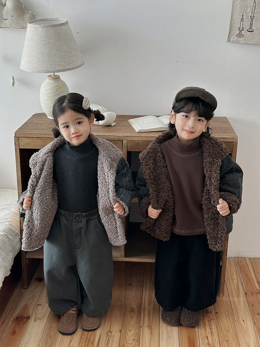 大胆に広がる大衿が、冬らしい可愛らしさを演出します。ボアフリースが端からあふれ出し、見た目にも温もりを感じさせるユニークなシルエットです。