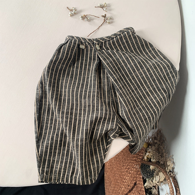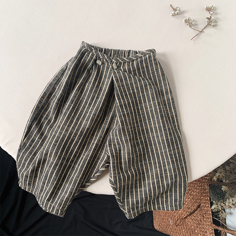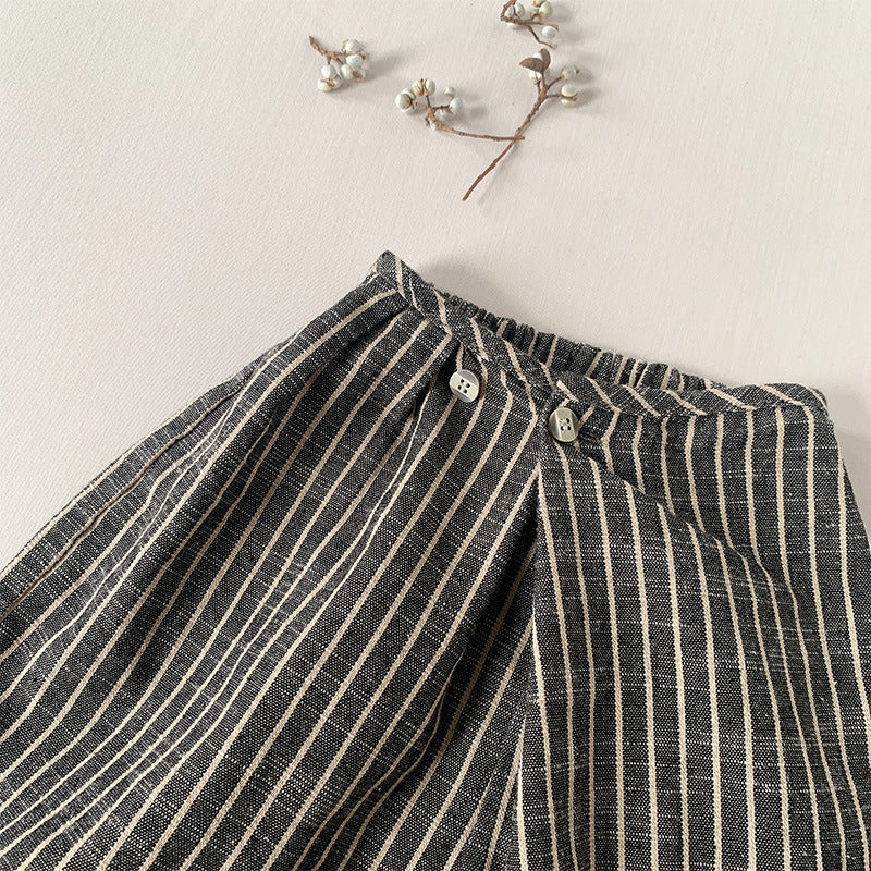 素朴な風合いとユニークなボタンデザインがかわいいカジュアルパンツです。