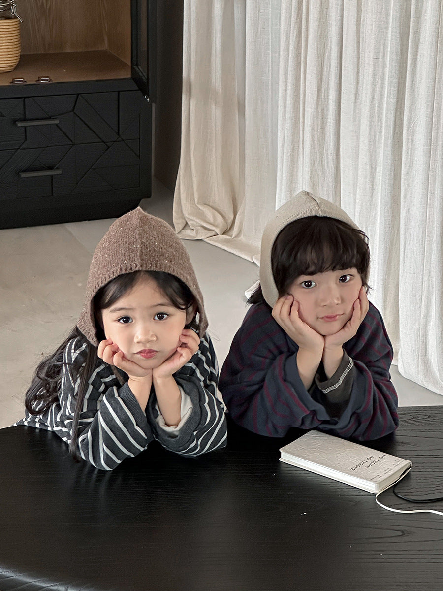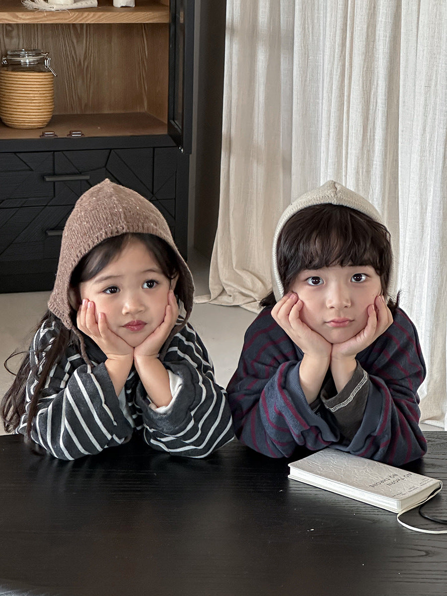 フード付きボーダー柄パーカ