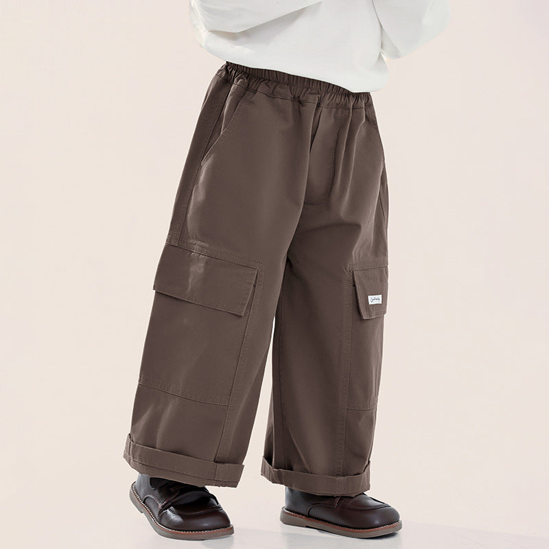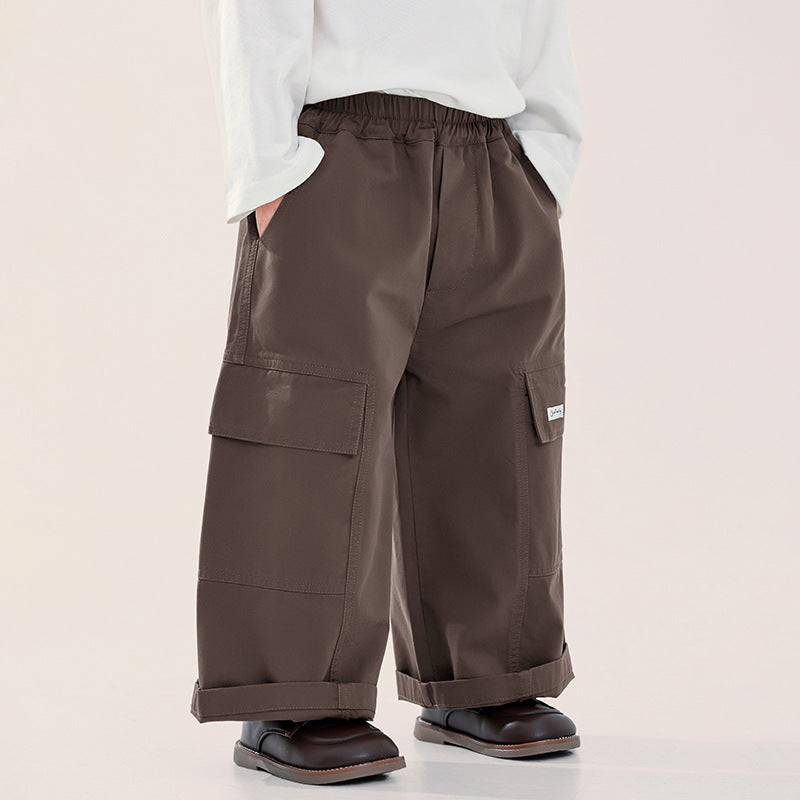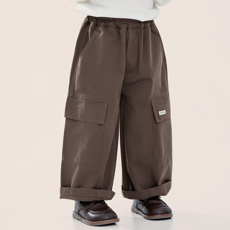 ポケットのタグがアクセントの、ストレートシルエットカーゴパンツ。