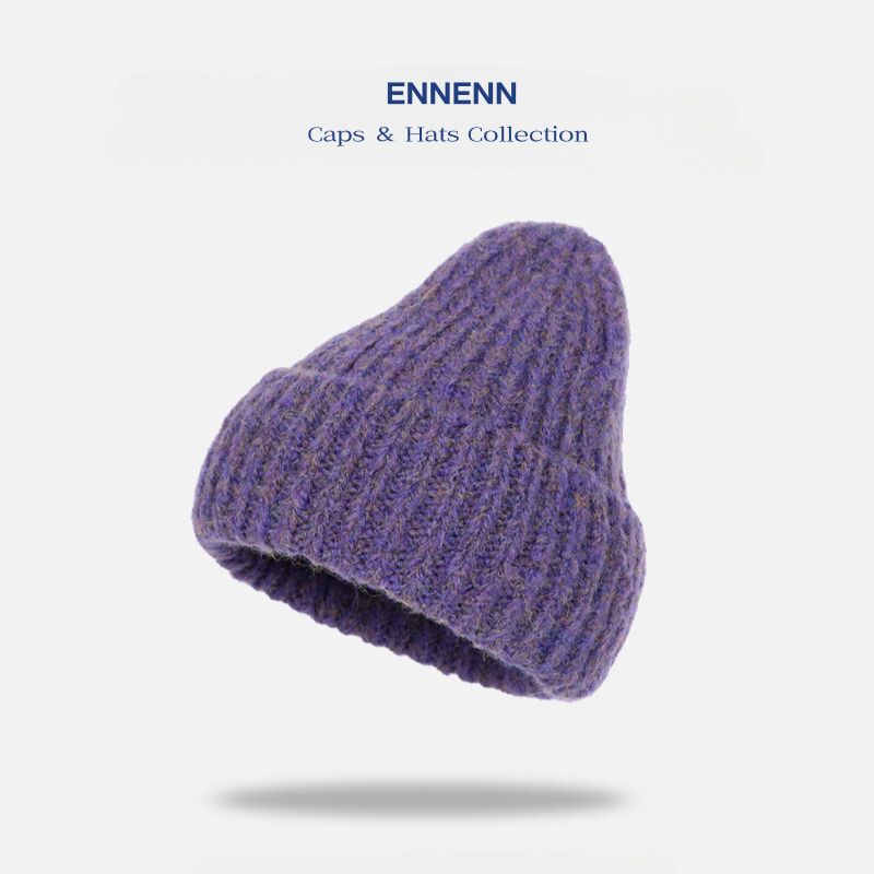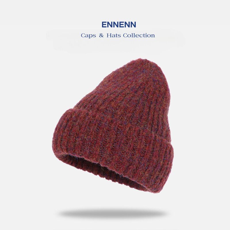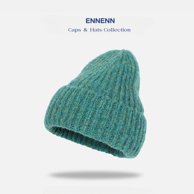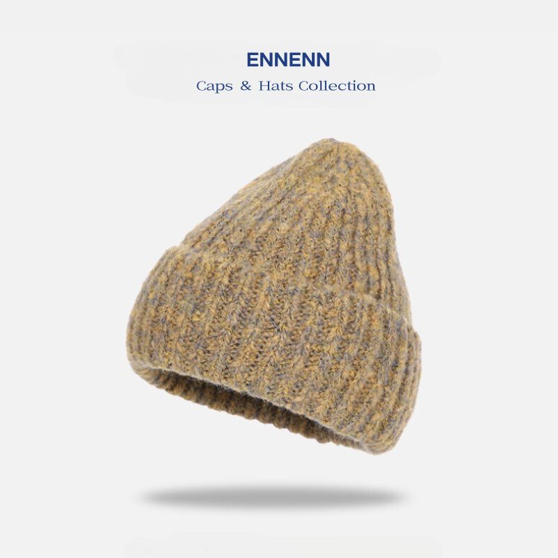 シンプルでありながら、ニュアンス感あるカラー使いが可愛いニット帽。