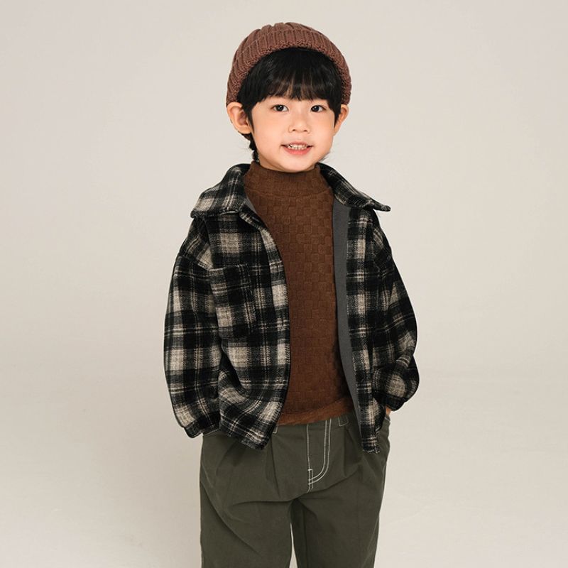 裏ボアチェック長袖シャツ