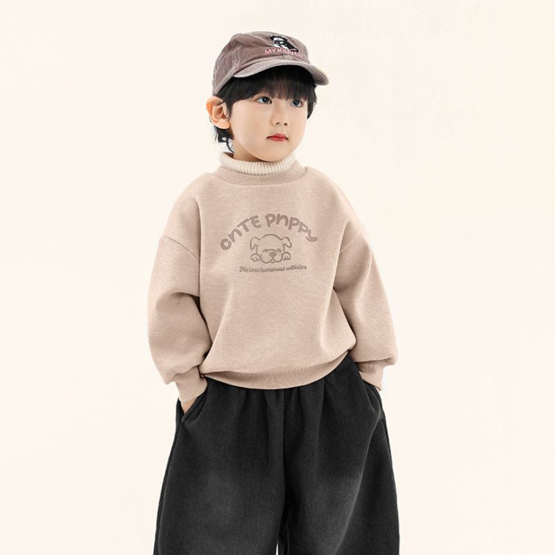 リブハイネックの切り替えがオシャレなプリントスウェット。